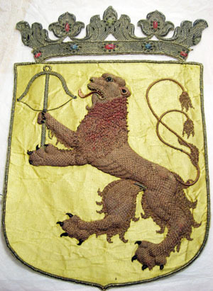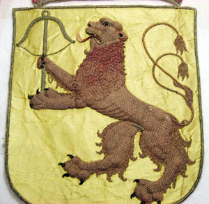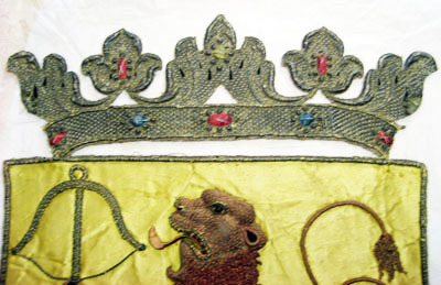Smålands vapen, broderat för hästtäcke buret vid Karl X Gustavs begravning den 4 november 1660.