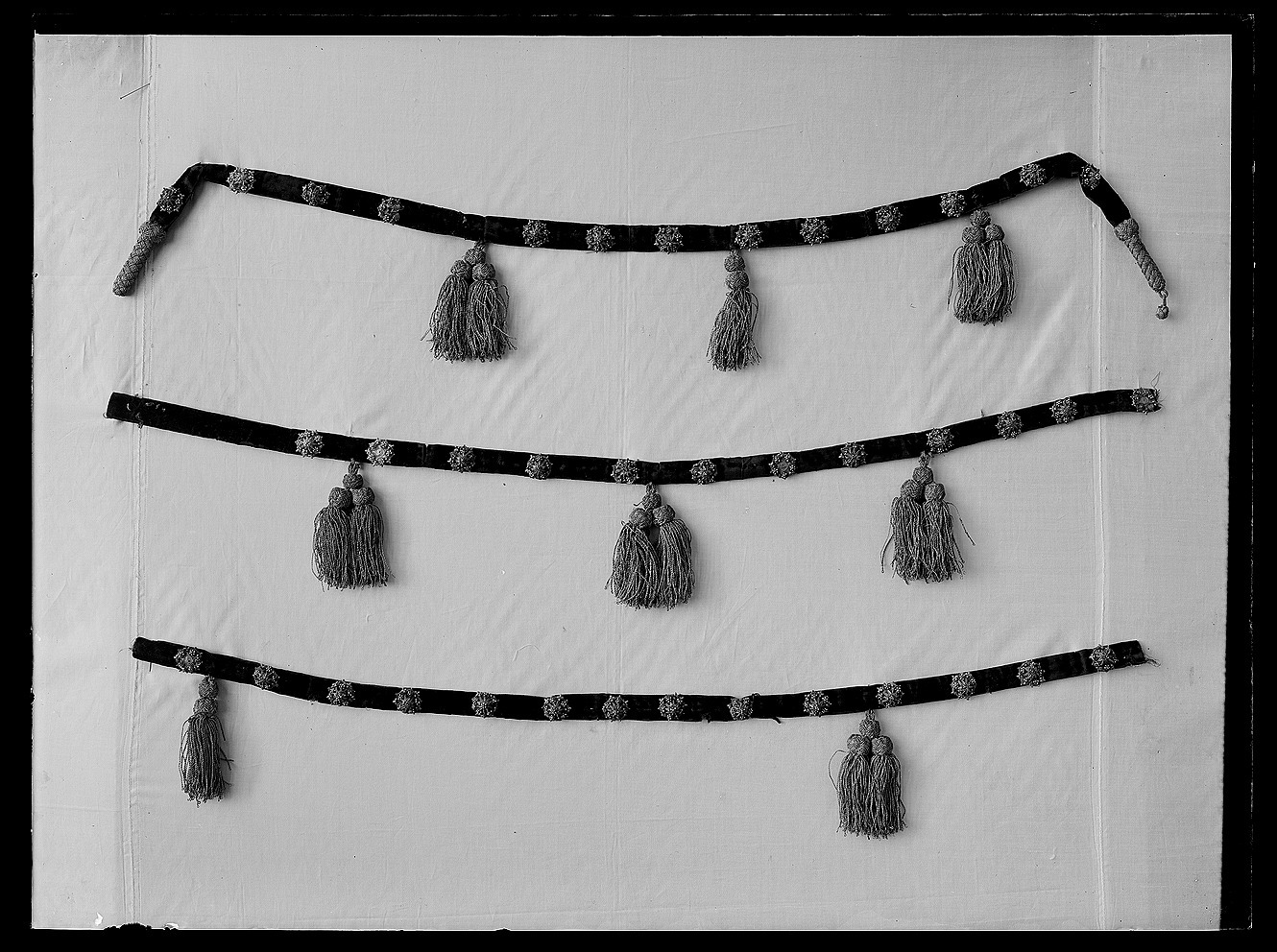 Hattband med guldknappar och tofsar.