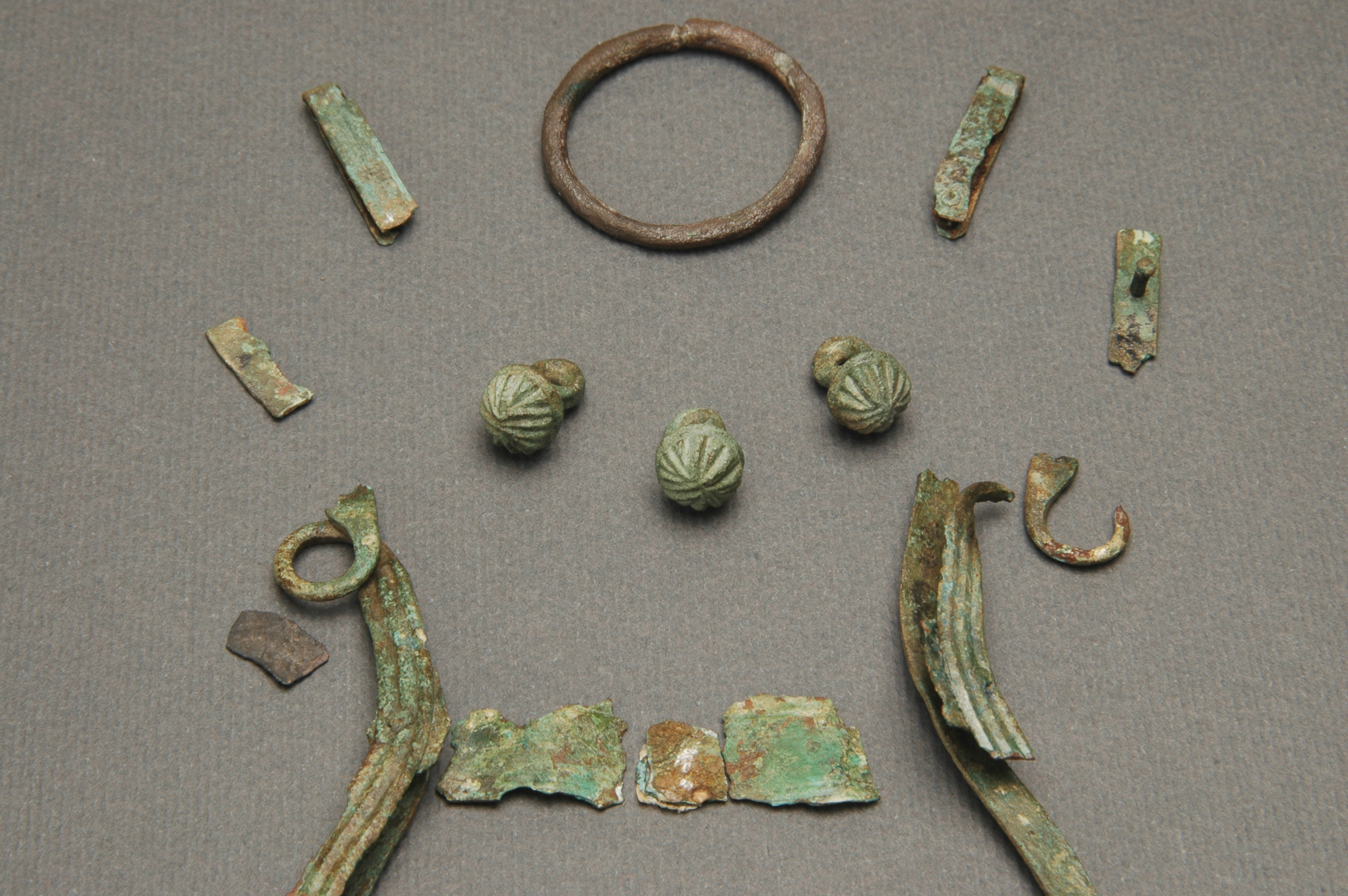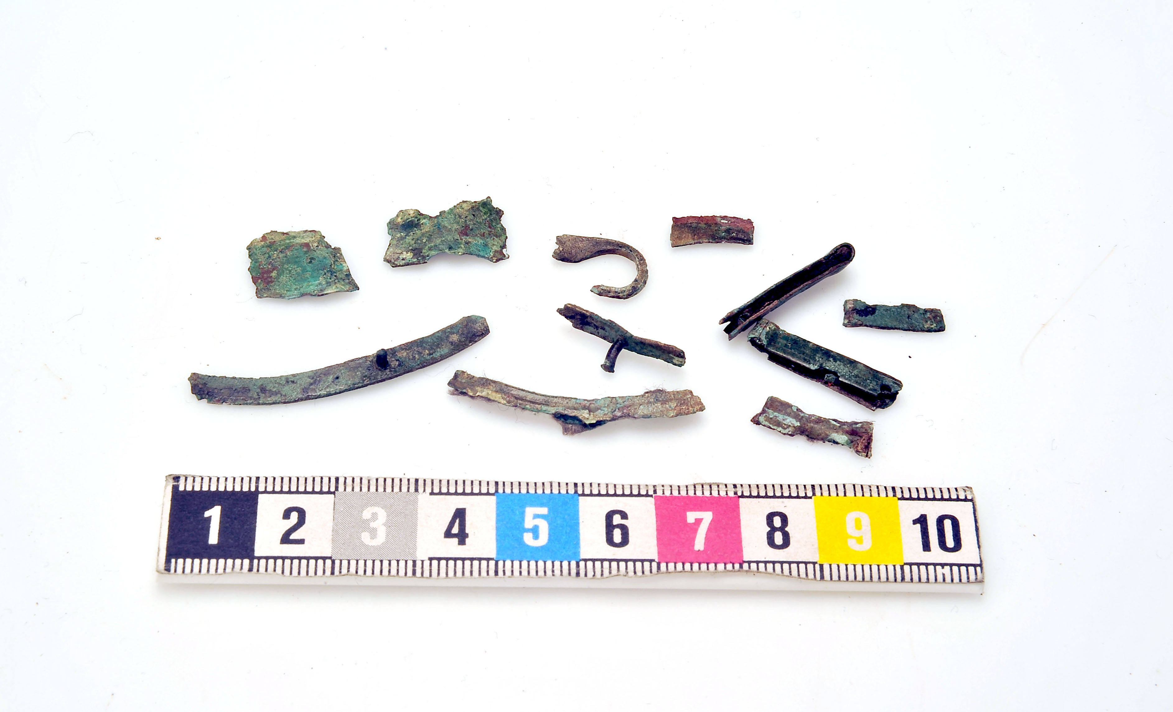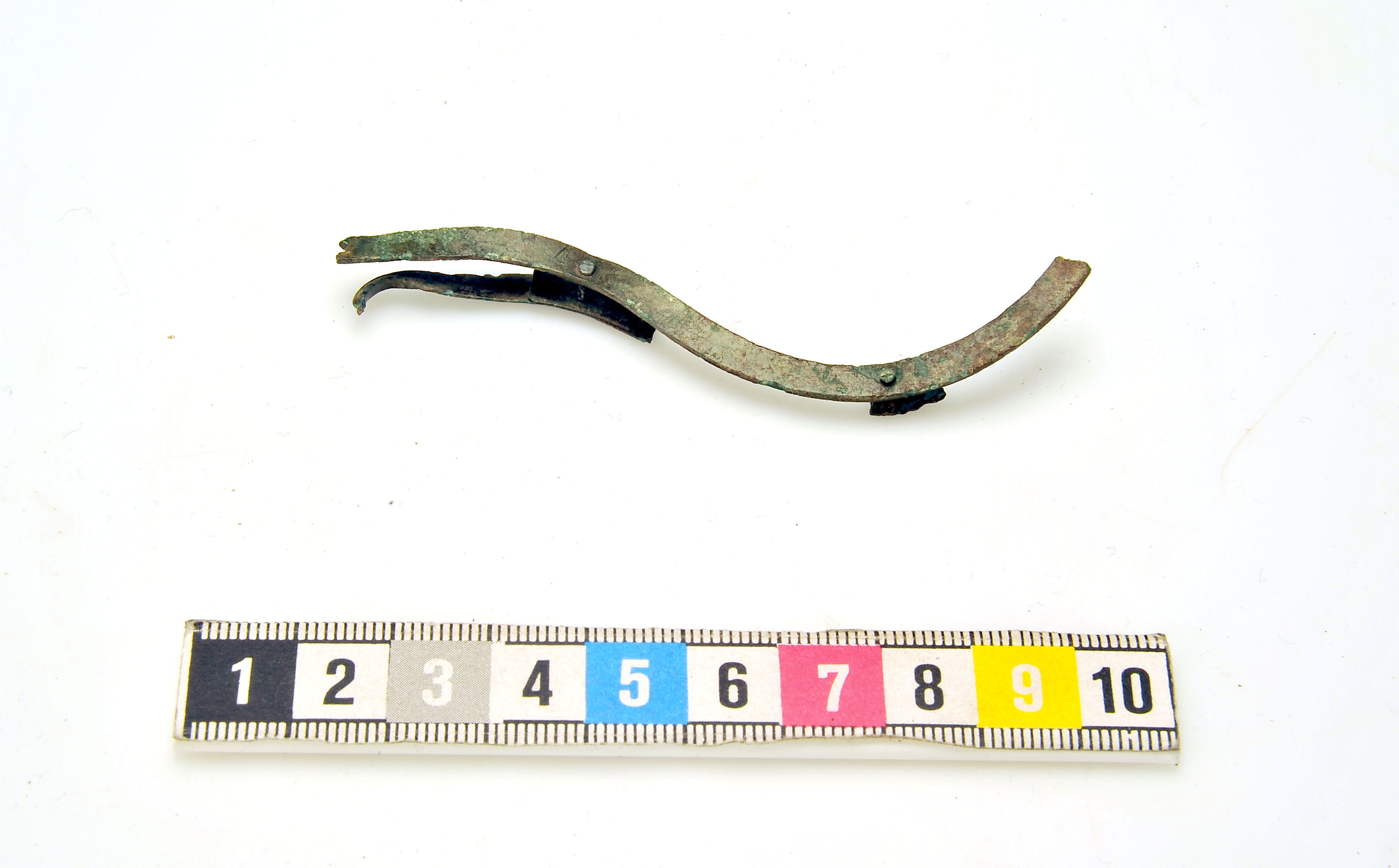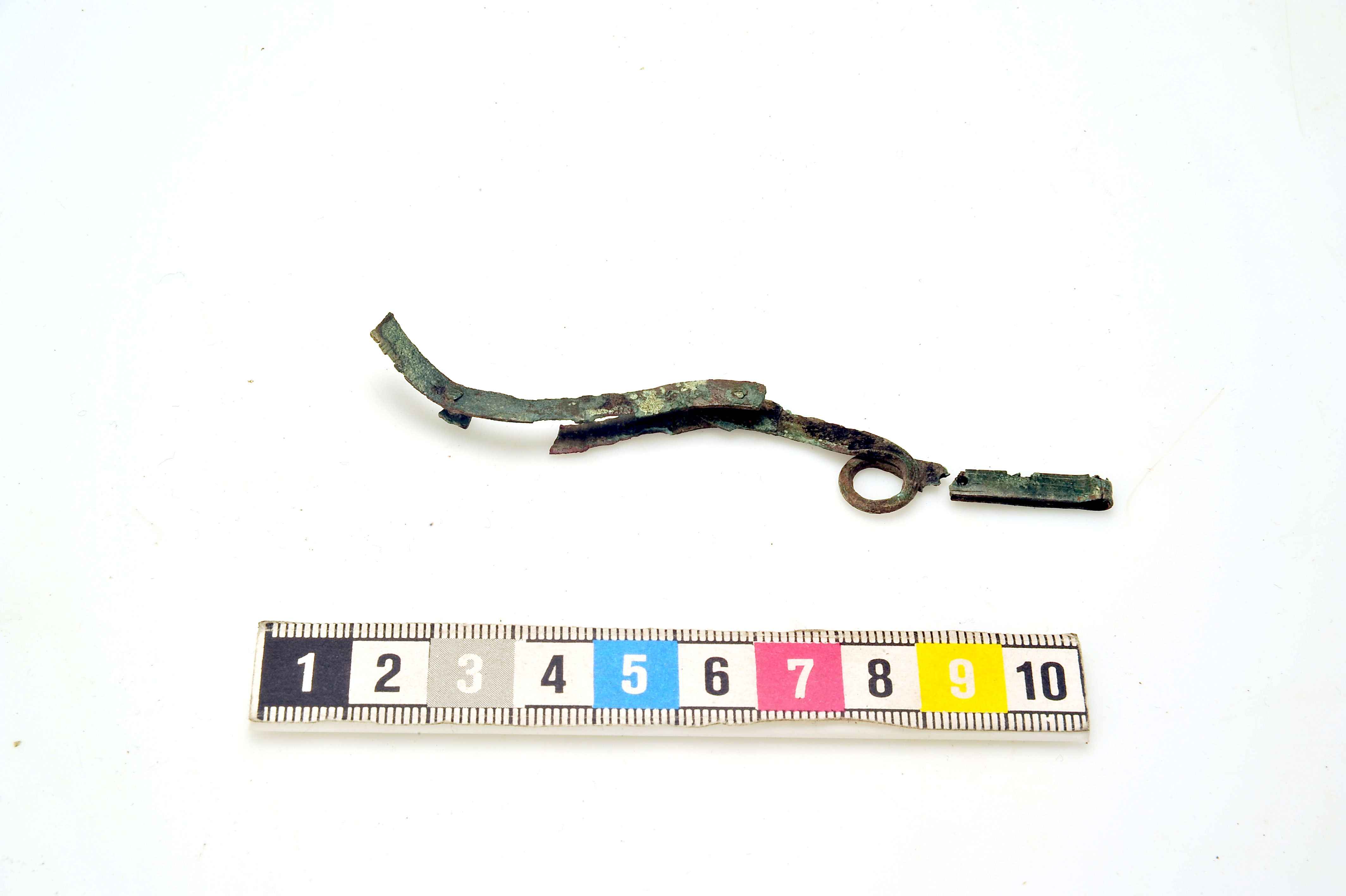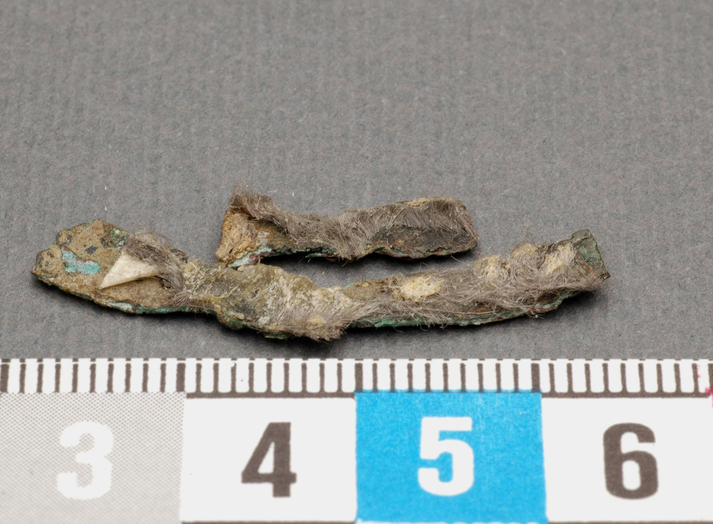 beslag till bältesväska. Själva väskan har sannolikt bestått av ekorrskinn då sådana pälshår kvarsitter i korrosionen.