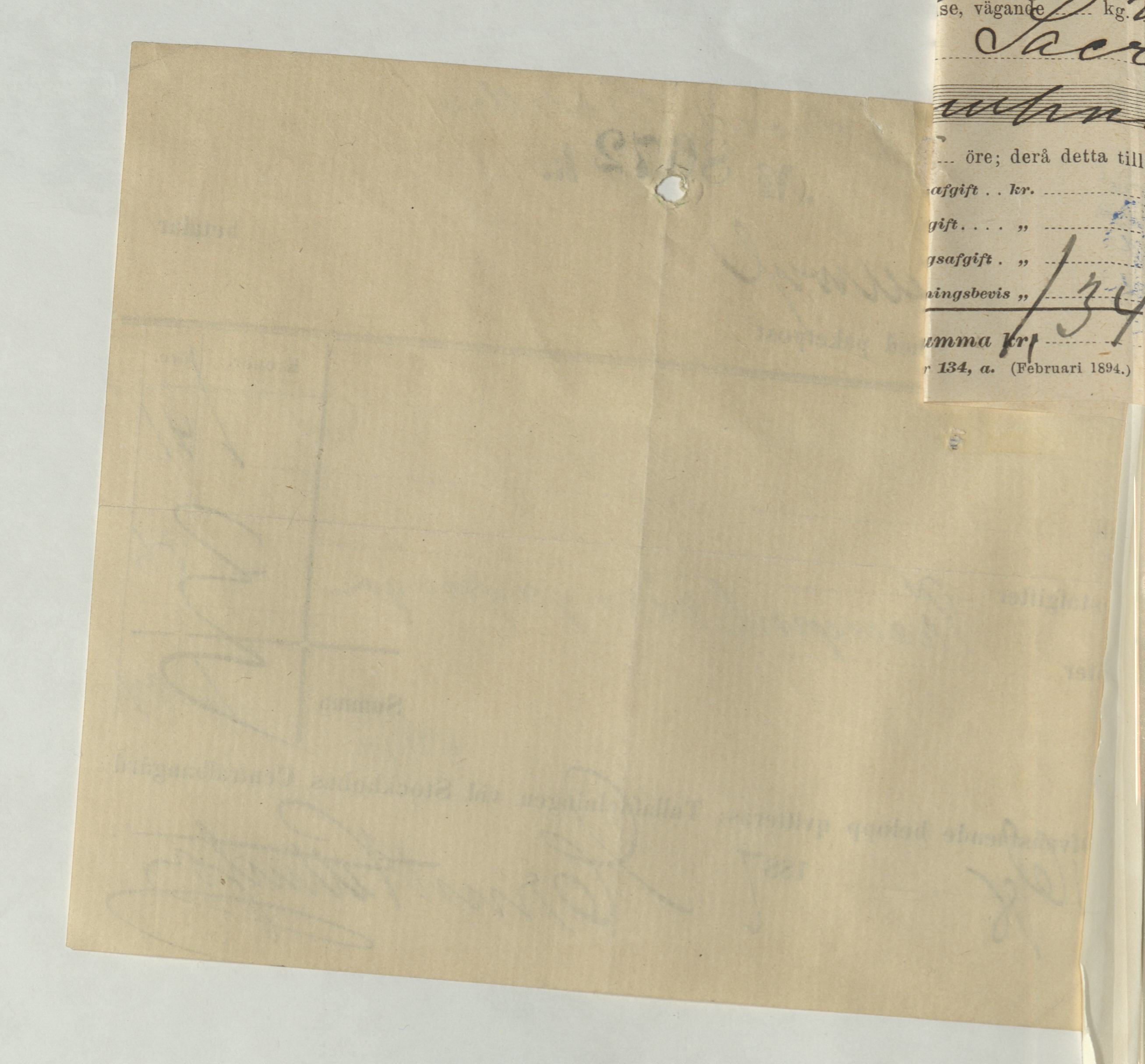 Kvitto för varor inkomna med postpaket till Léon Sacré, Manufactures de Dentelles, Bruxelles från Madame de la Hallwyl med en totalsumma på 1:94Kr. Stockholm 16 augusti 1887.