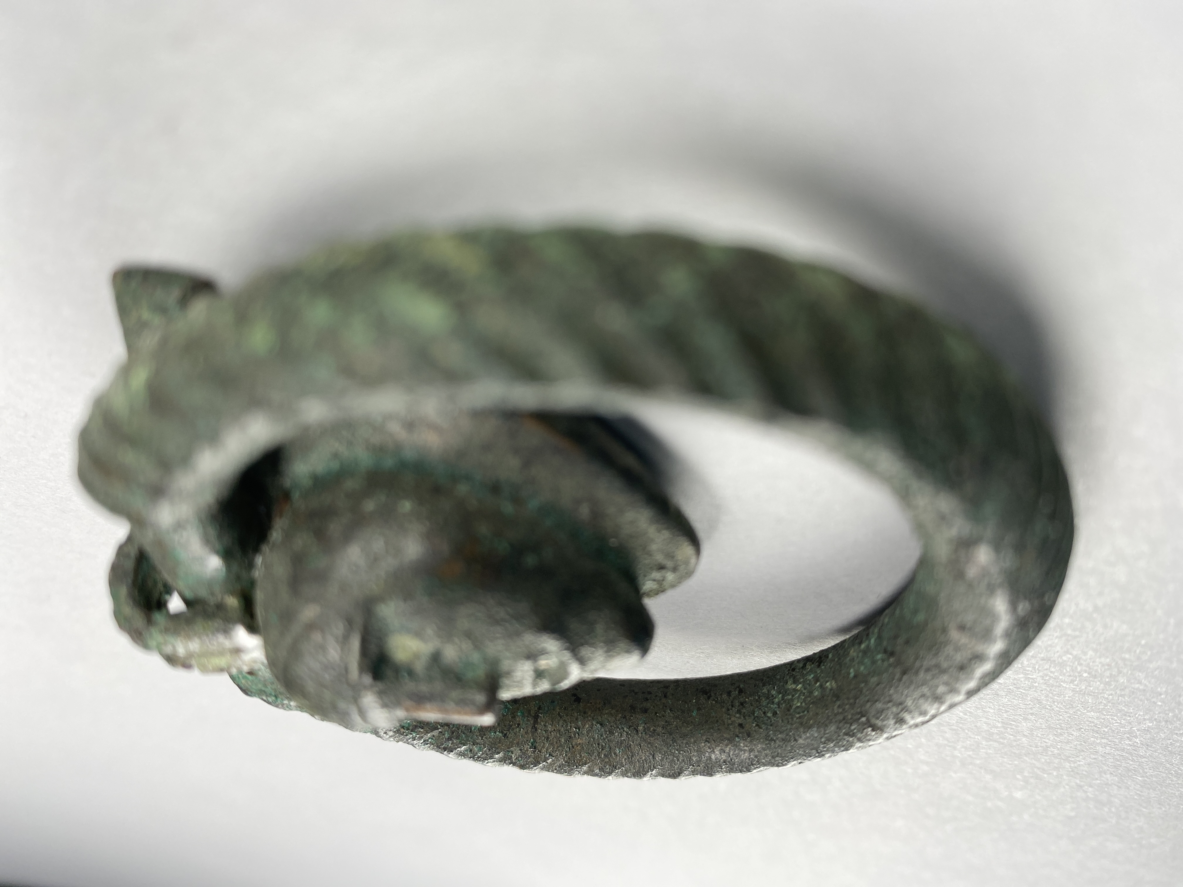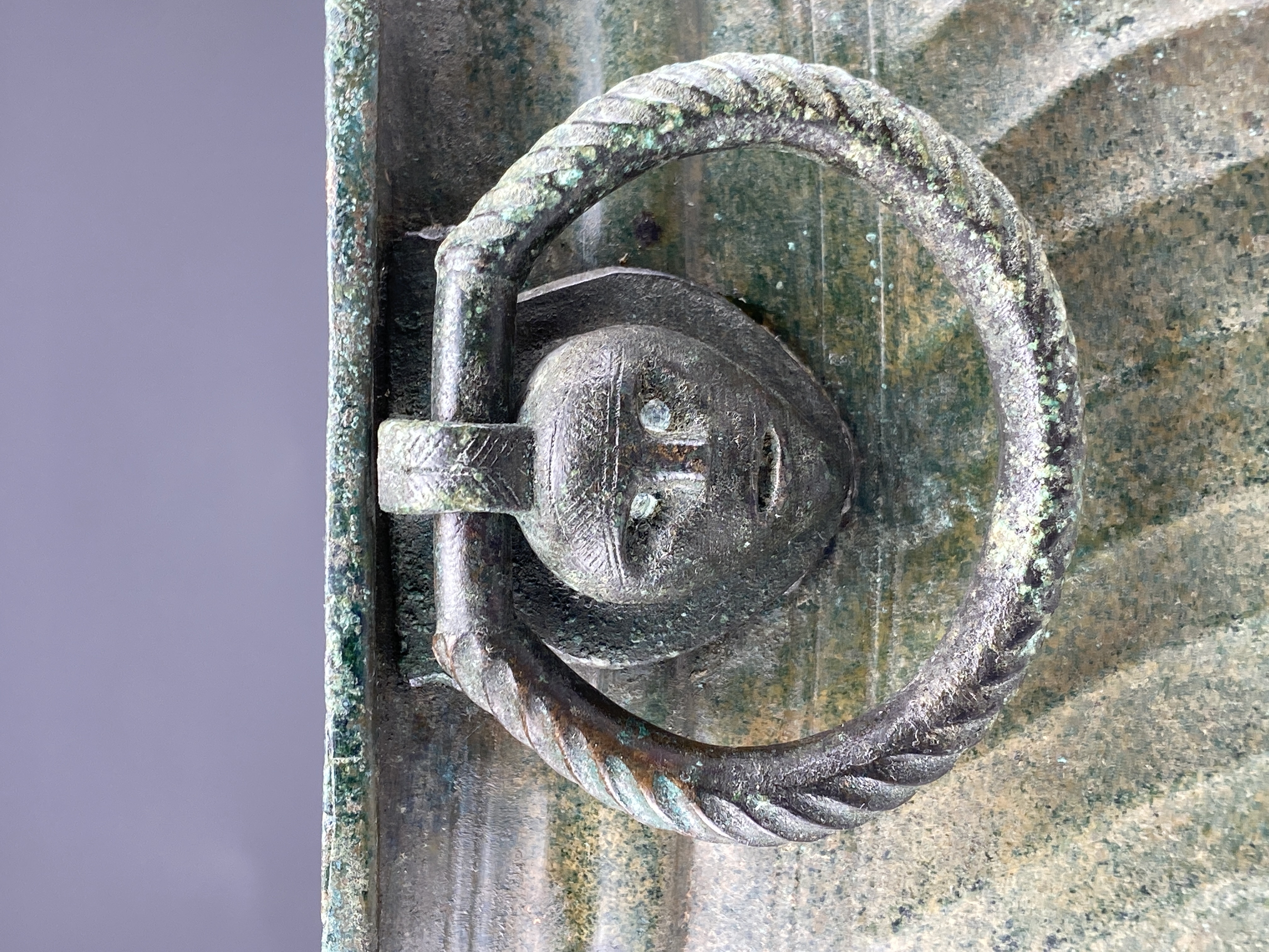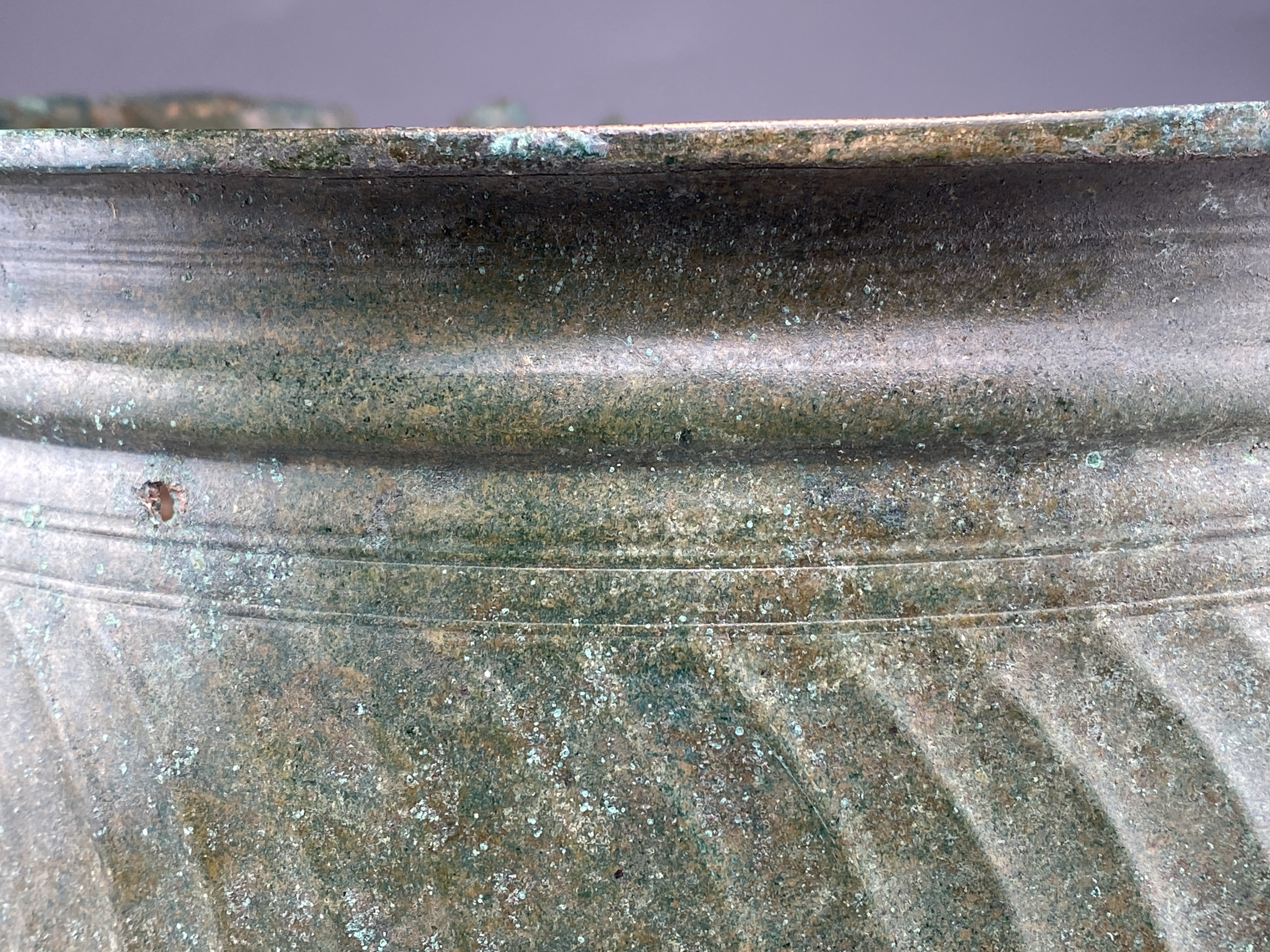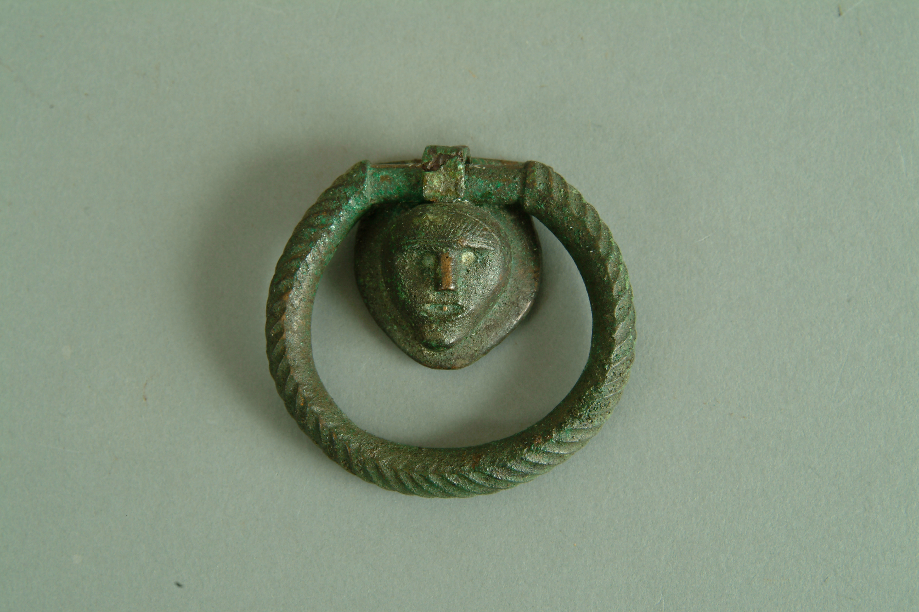 Kannelerat kärl av brons, del av dryckesservis. Buken dekorerad med rundade kannelurer. Under mynningen har det suttit två handtag, varav det ena sitter kvar in situ. Handtagens fästen är i form av ansikten sedda en face med en bärring. Mynningspartiet är dekorerad med vågräta ränder och en vulst. Mynningskanten är utvikt. Kärlet har en liten fot. På undersidan av botten finns dekor av koncentriska cirklar. Eggers typ E46. Dateringen ligger i äldre romersk järnålder: B2.
