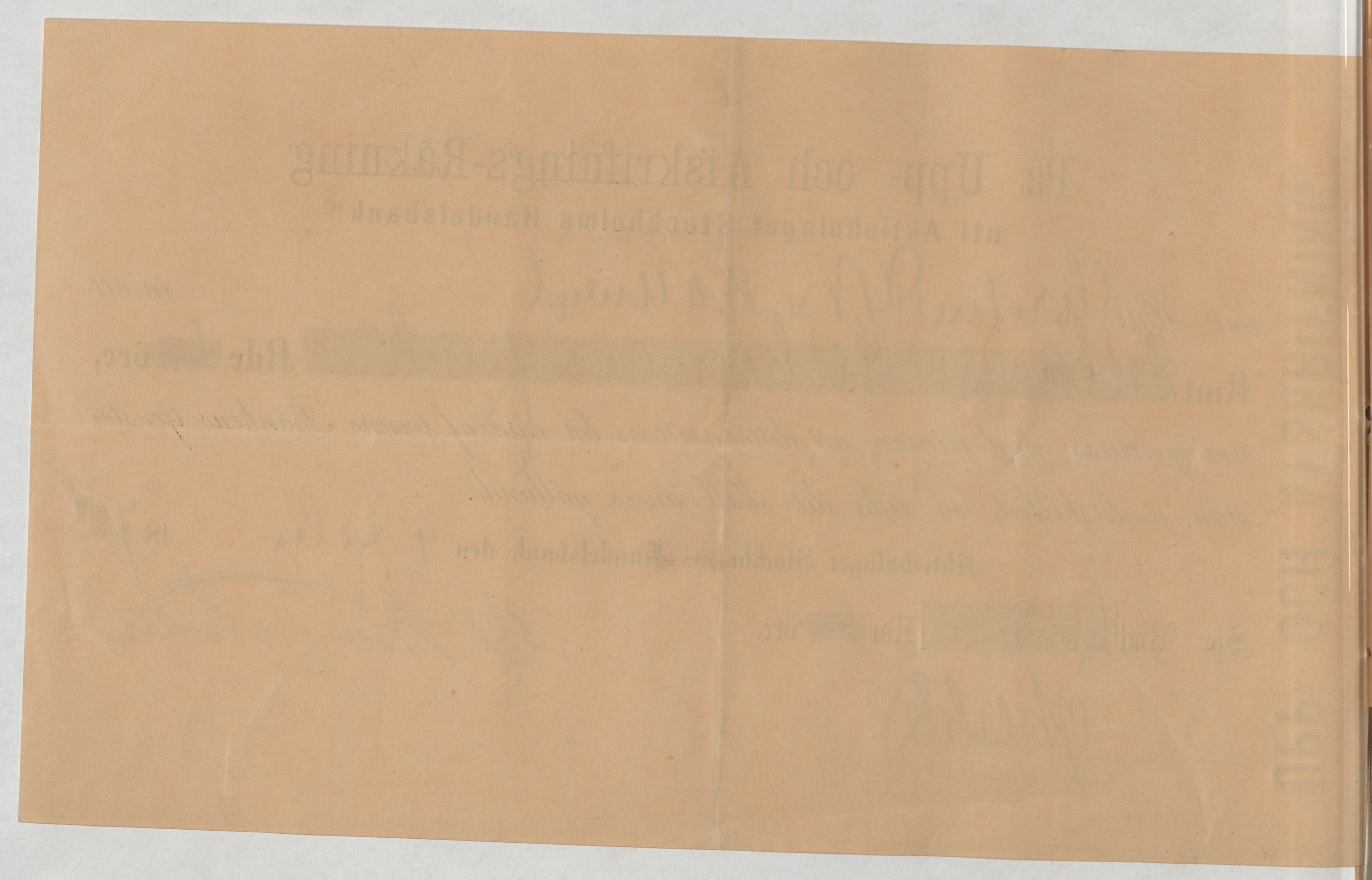 Kvitto från Aktiebolaget Stockholms Handelsbank rörande Upp- och Afskrifnings-Räkning