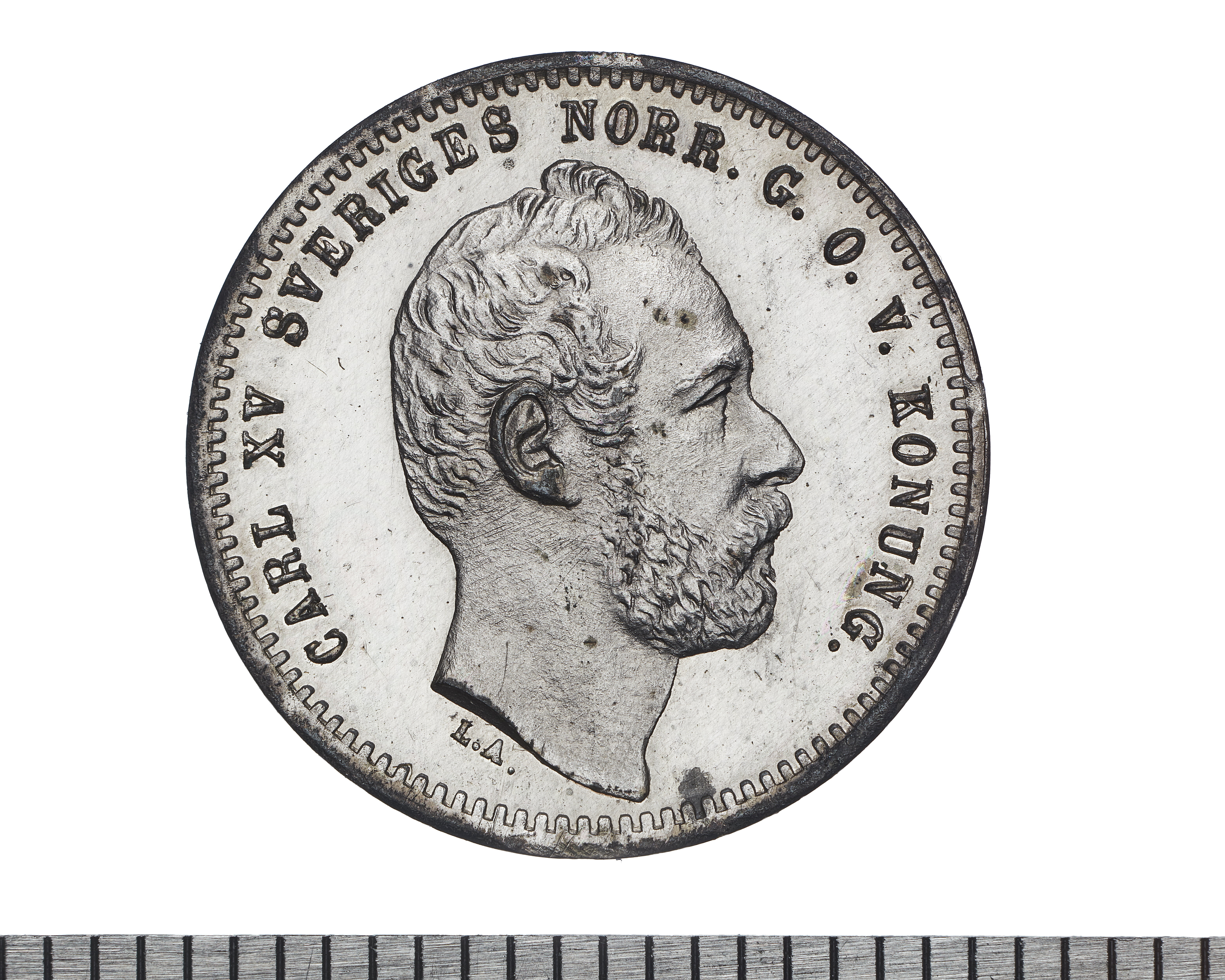 Upphov: Karl XV av Sverige och Norge. Media: Bonnevier, Helena. Ekonomiska museet - Kungliga myntkabinettet/SHM, (CC BY 4.0) Du får bearbeta och dela verket för alla ändamål, även kommersiella, så länge du anger upphovsperson och licensgivare.