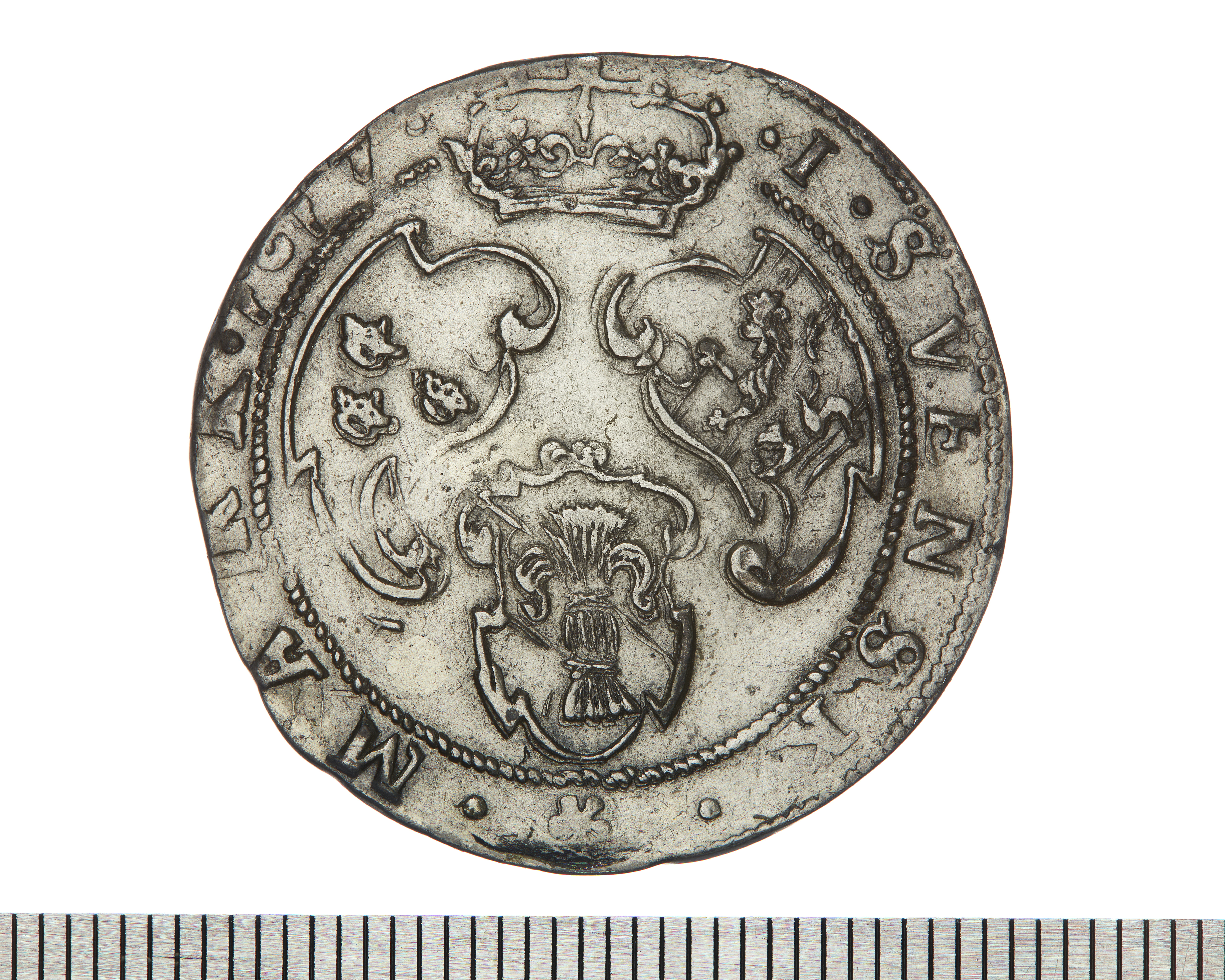Upphov: Gustav II Adolf av Sverige. Media: Bonnevier, Helena. Ekonomiska museet - Kungliga myntkabinettet/SHM, (CC BY 4.0) Du får bearbeta och dela verket för alla ändamål, även kommersiella, så länge du anger upphovsperson och licensgivare.