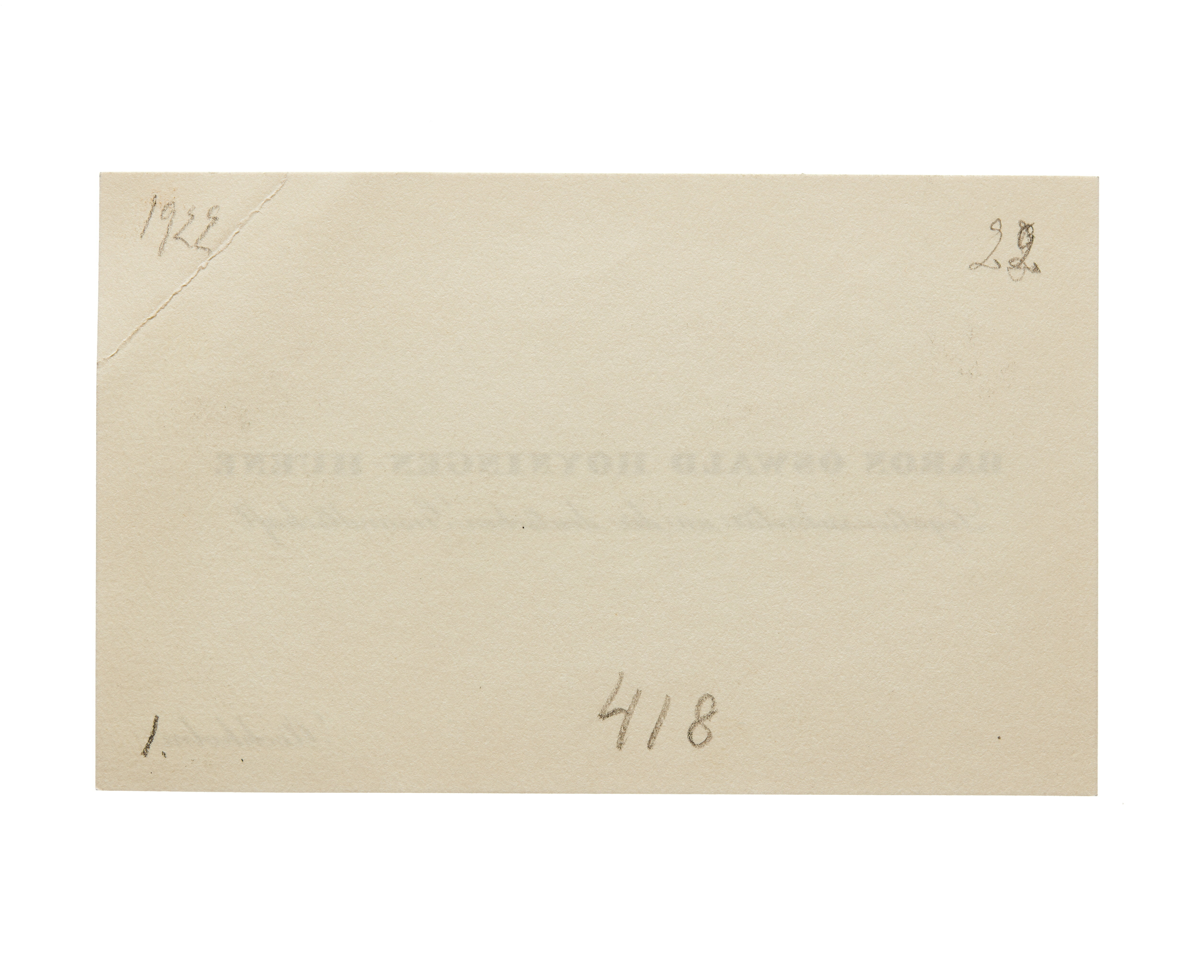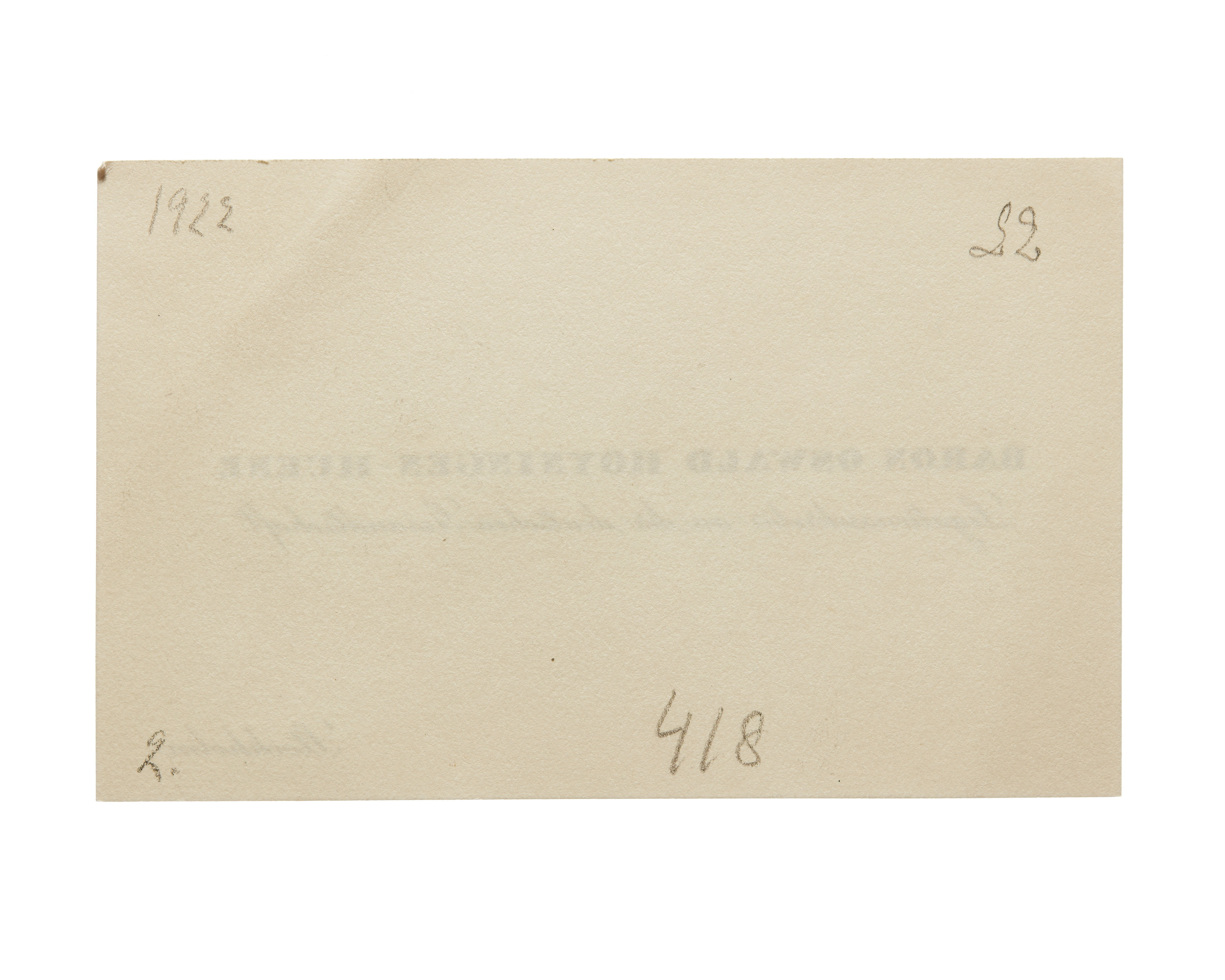 Tre visitkort från Baron Oswald Hoyningen-Huene, Legationssekretär an deutschen Gesandtschaft. Första kortet daterat 1922, vikt i övre högra hörnet. Adress (nedre högra hörnrt) Stockholm. Andra kortet daterat 1922, vikt i övre högra hörnet. Tredje kortet daterat 1922, vikt i övre högra hörnet. Handskrift "p.p.c.".