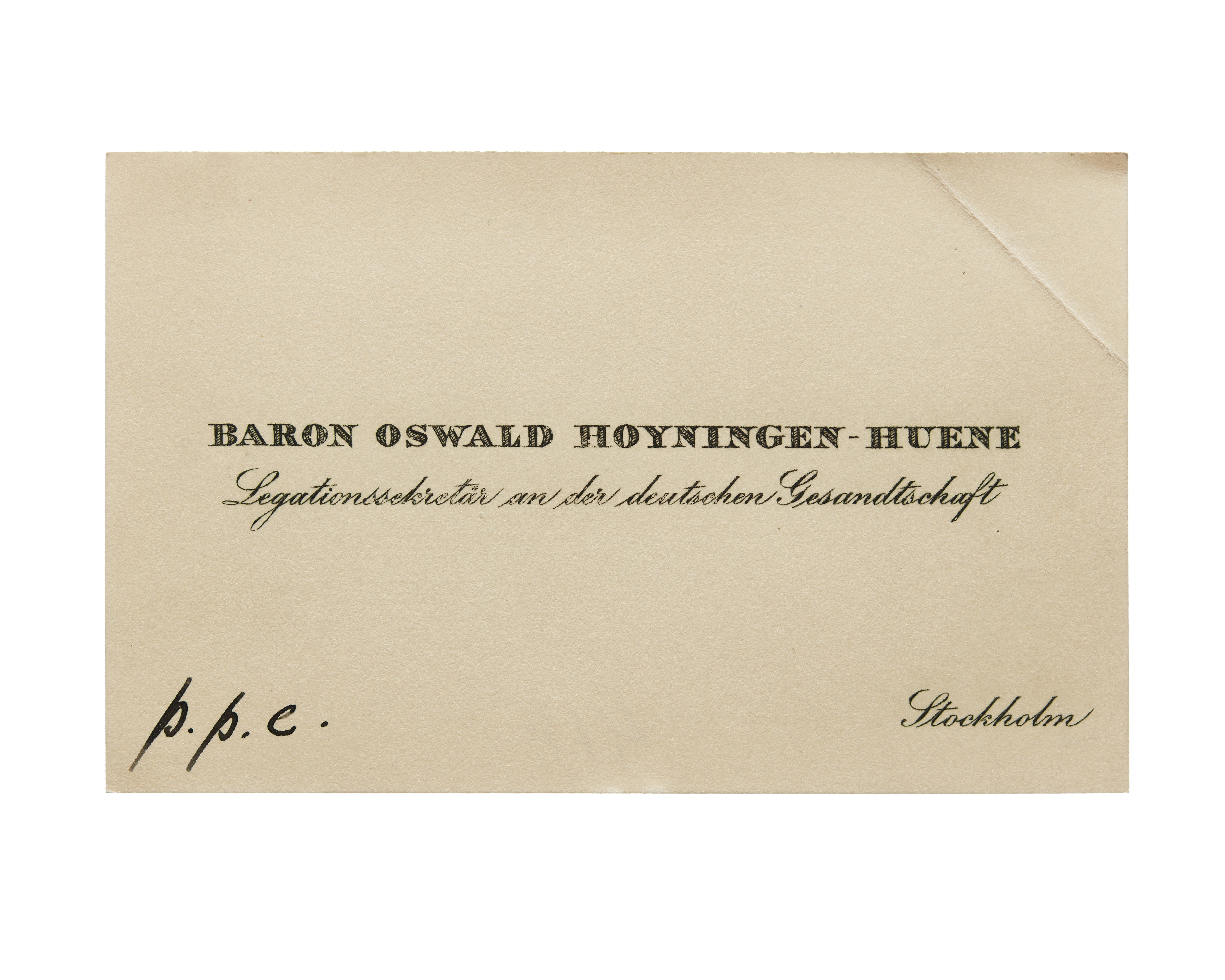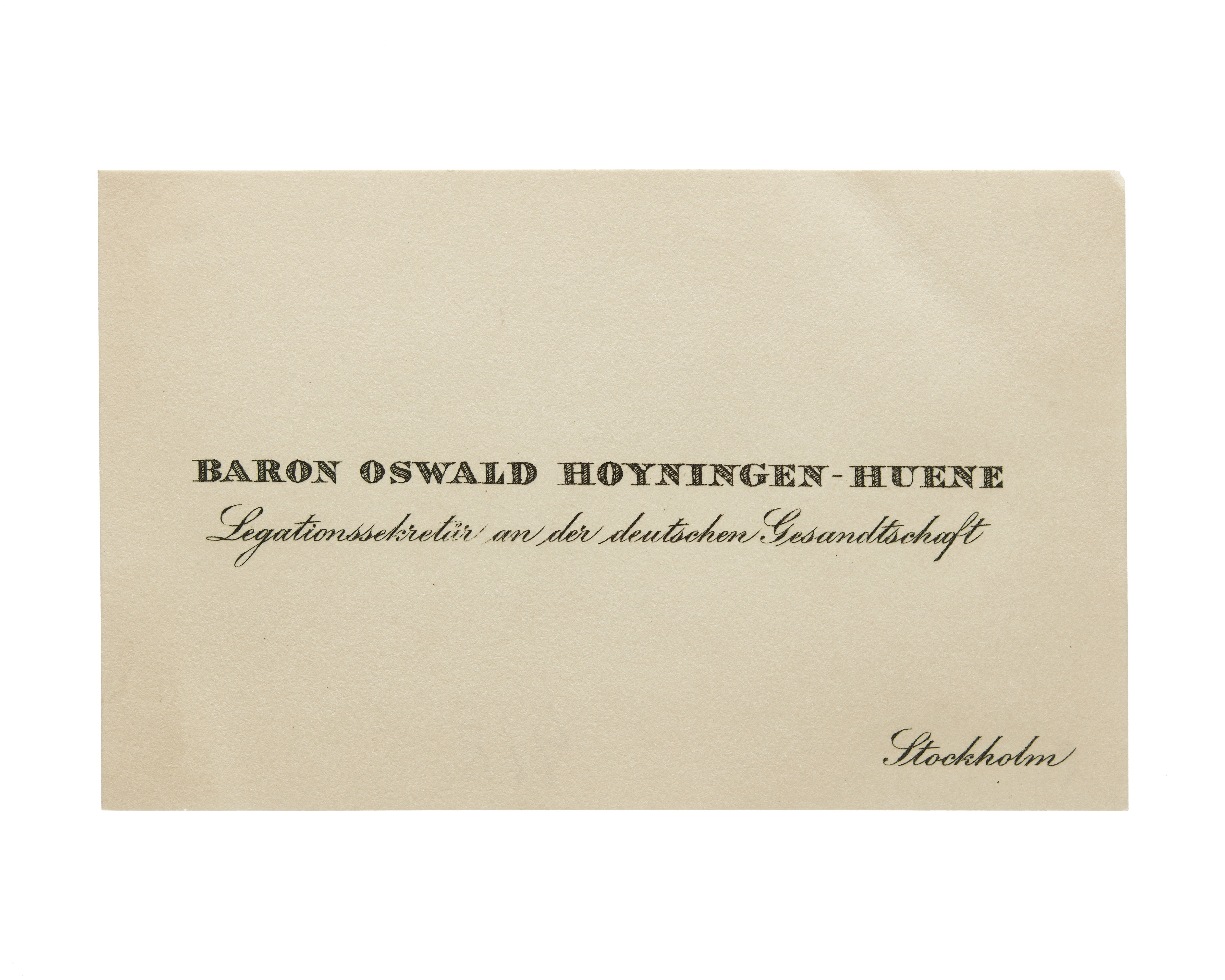 Visitkort från Baron Oswald Hoyningen-Huene, Legationssekretär an deutschen Gesandtschaft.