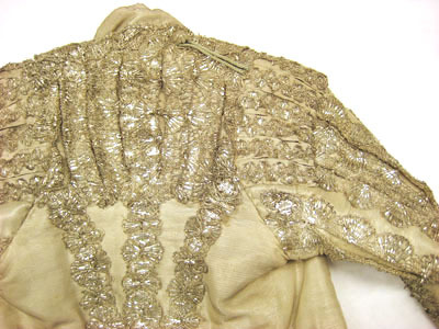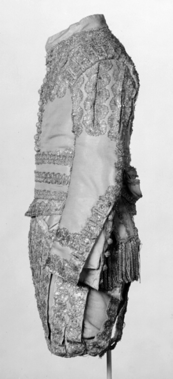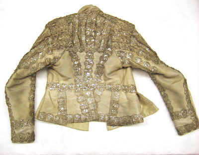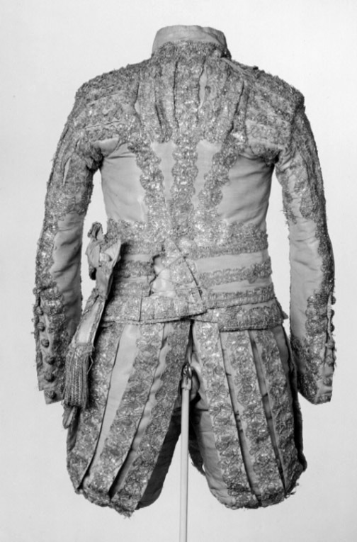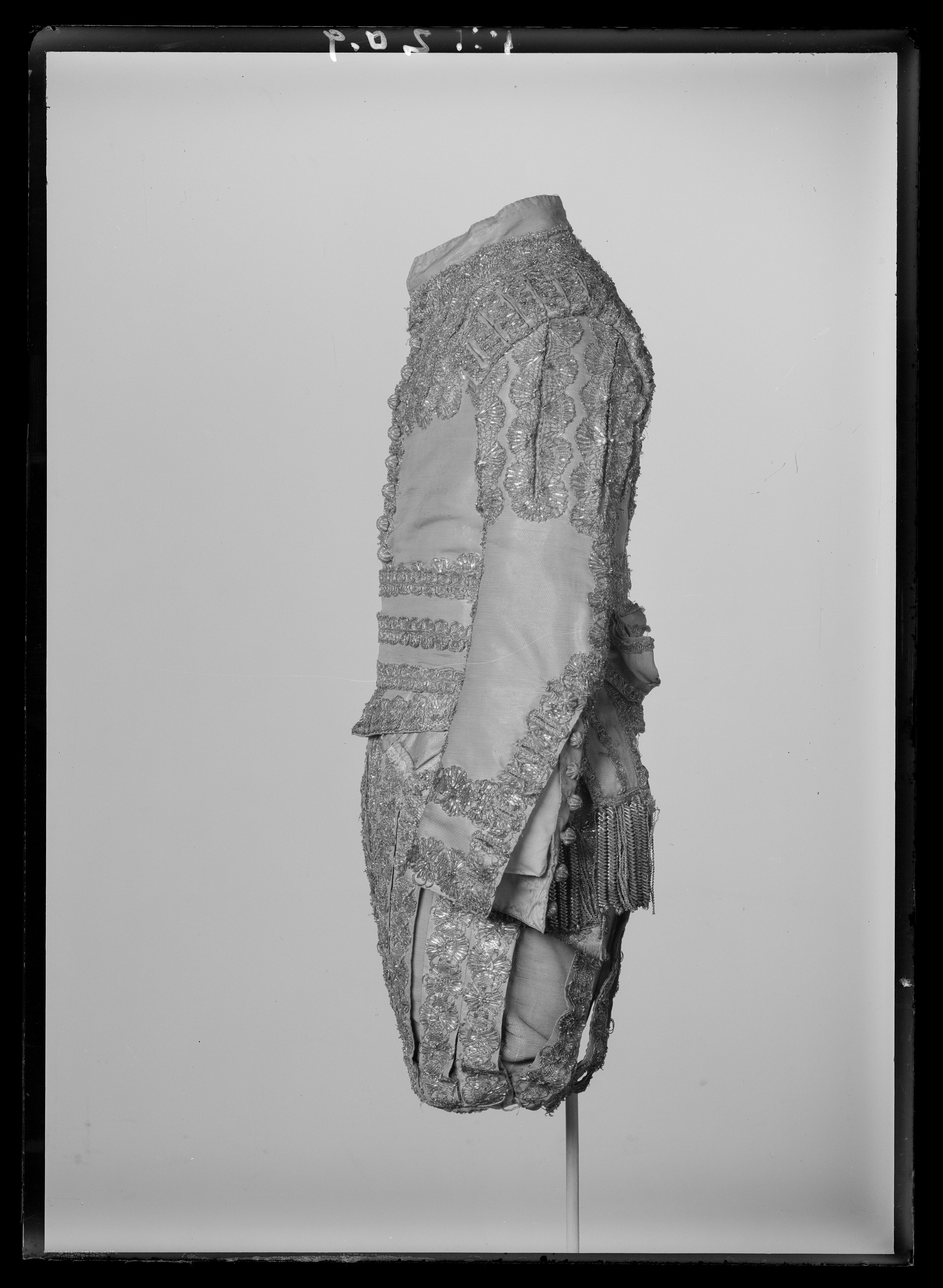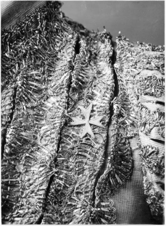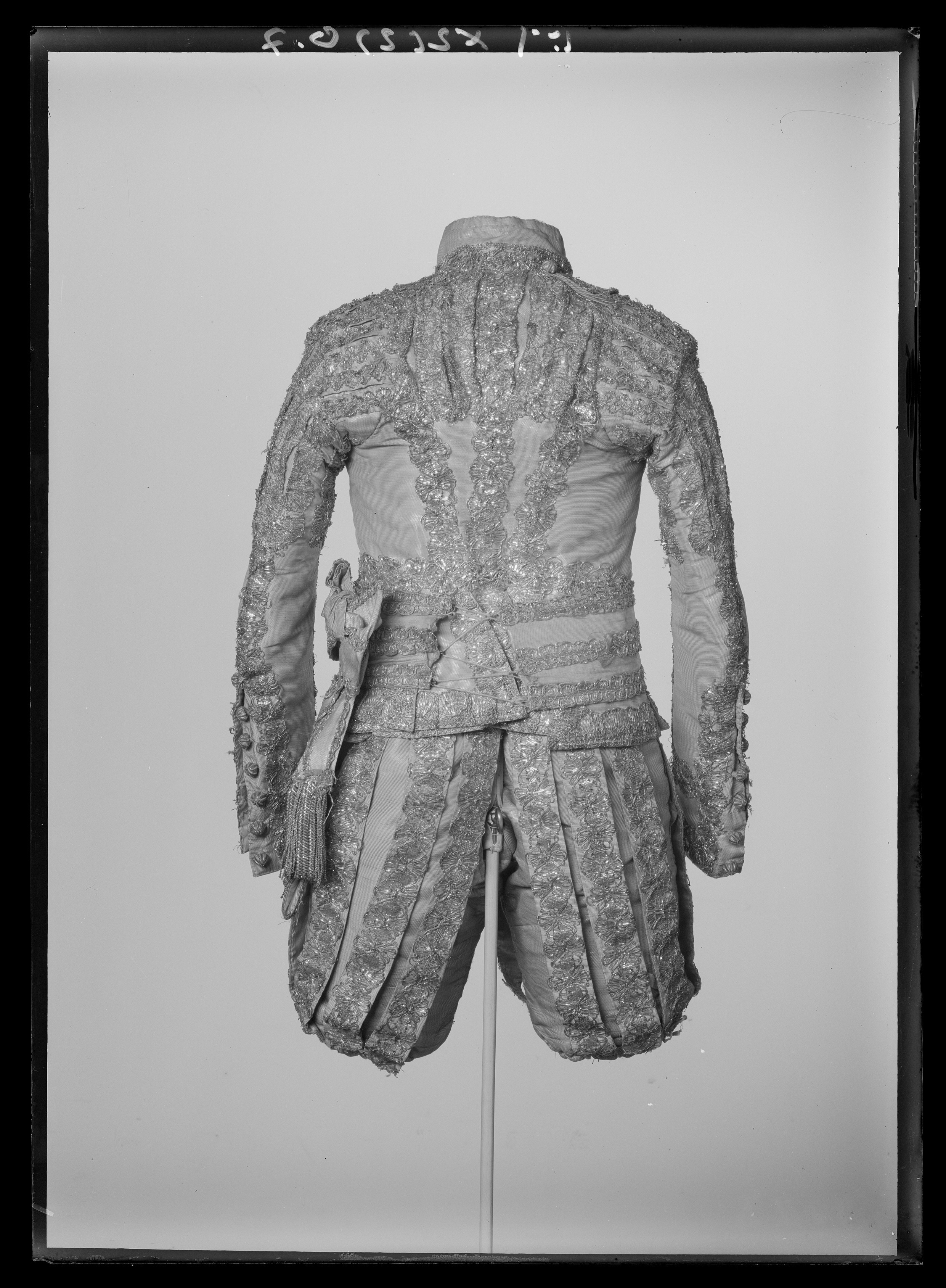Jackan är sydd i ripsvävt silvertyg och har en silverspets runt hela jackans nedre kant, 27 mm bred. Samma silverspets, 30 mm bred, är även fastsydd på jackans midja. På jackans axlar fram och bak är tre lodräta slitsar dekorerade med silverspetsar (100 mm). Slitsarna med silverspetsar löper även över ärmarna på båda sidor. På höger axel är ett Johanniterkors (20 x 20 mm) sytt i linne och en knapp för ordensband. Halskragen är en sk ståkrage och 22 mm hög. Jackan knäpps mitt fram med nio stycken knappar och de nio knapphålen är 20 mm breda. Även från armbågen och och ner till ärmens slut löper en 155 mm lång knäppning med sju stycken knappar beklädda med silver. Nertill från midjan är är åtta trapetsformade skörtkappor.