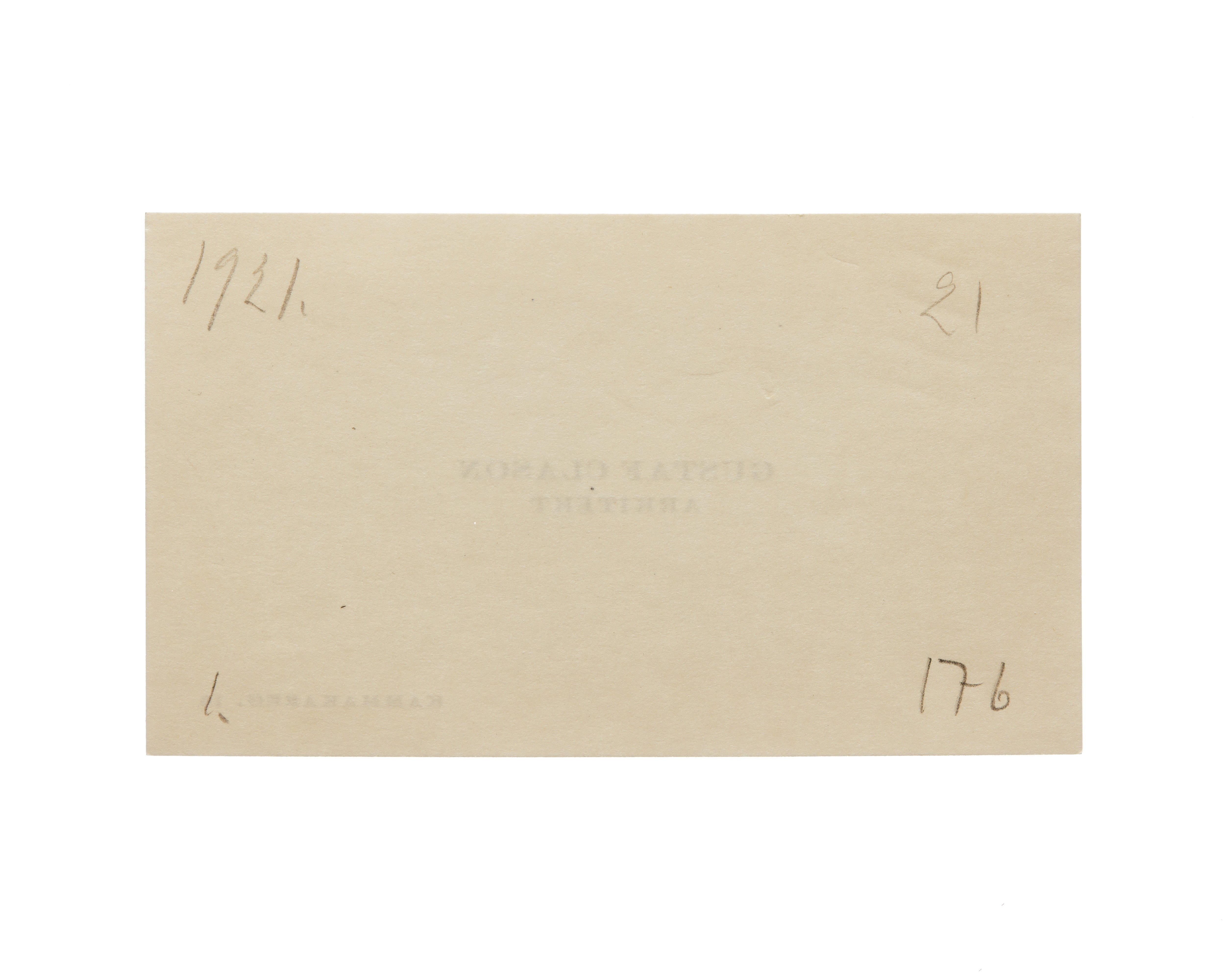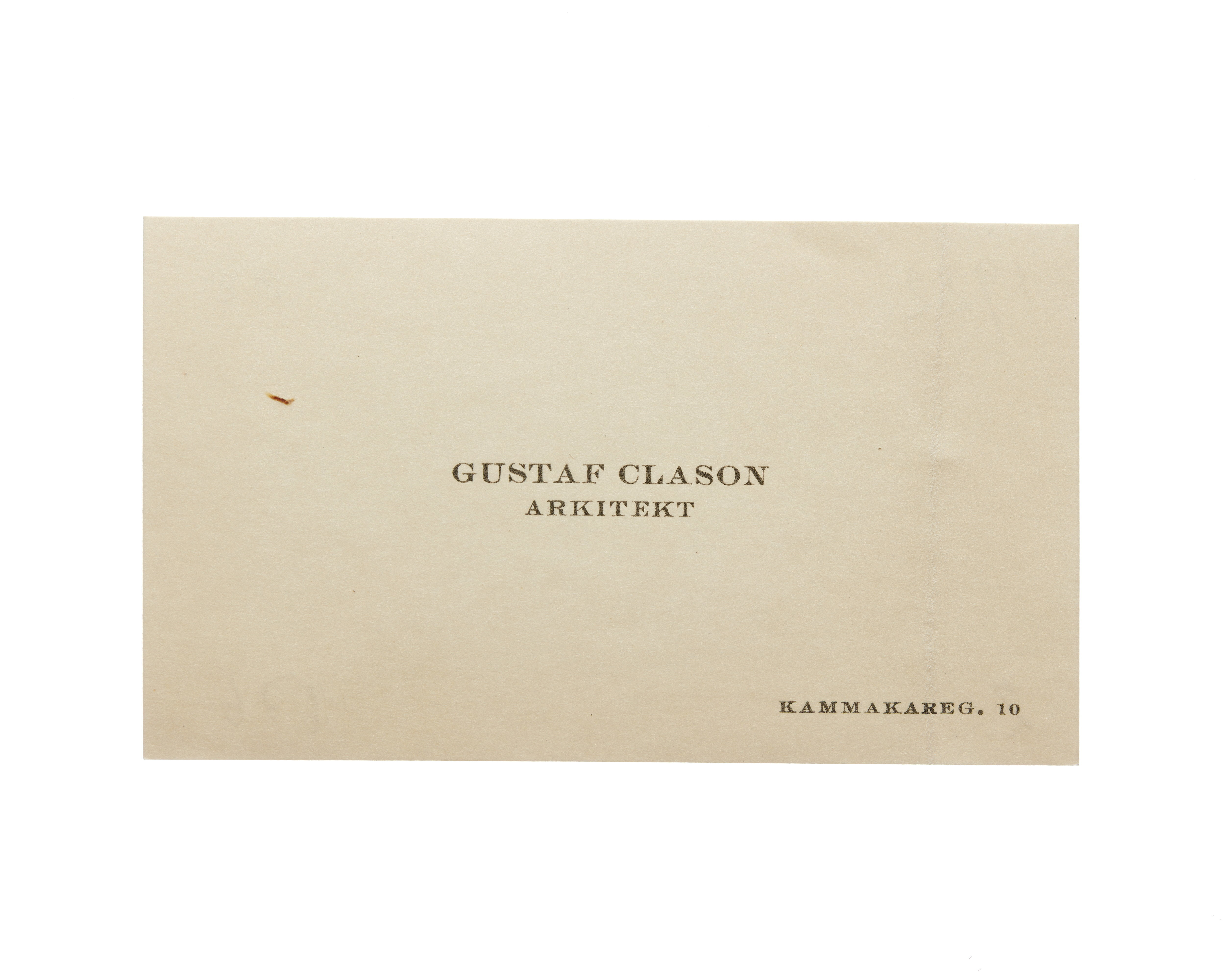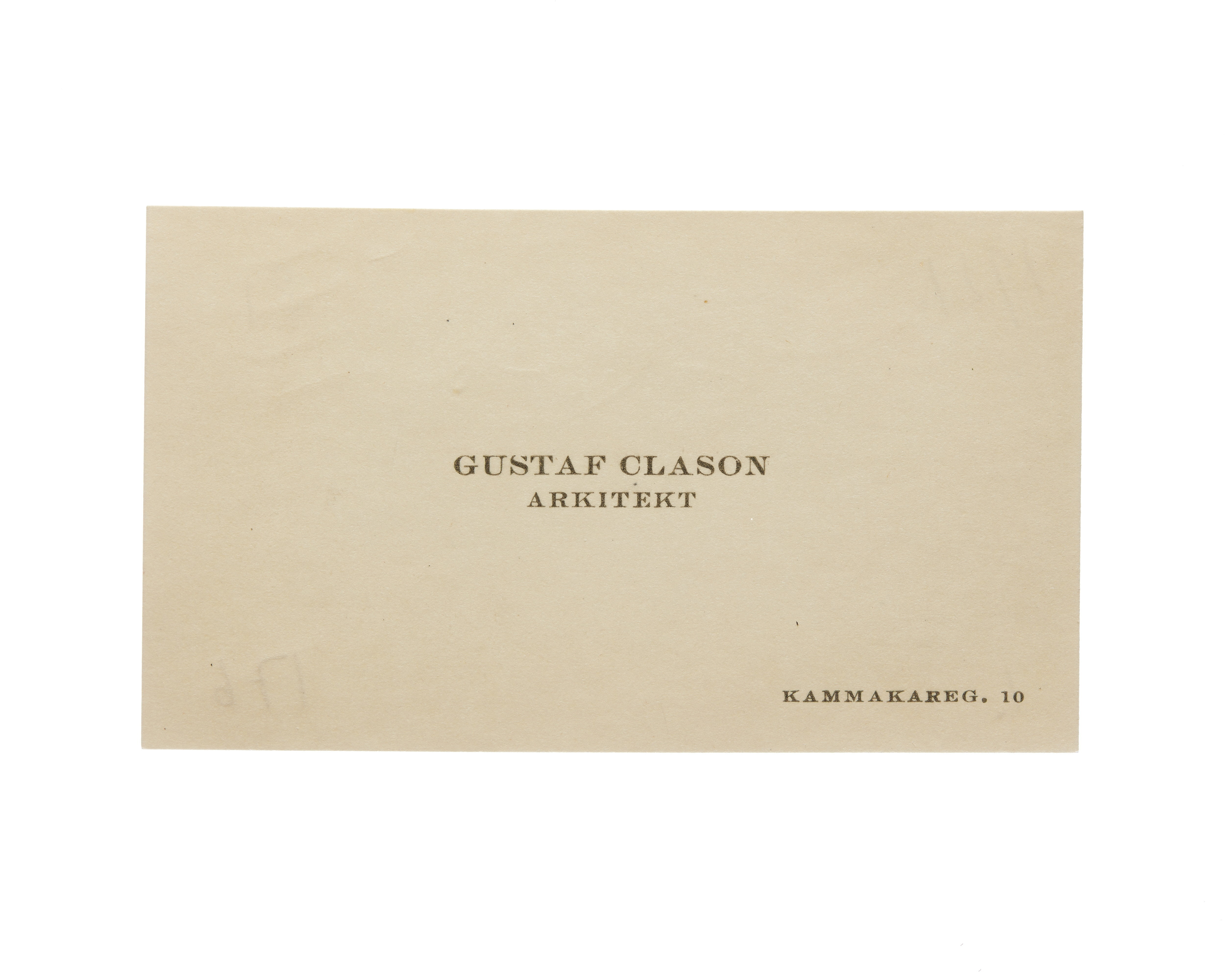 Visitkort från Gustaf Clason, Arkitekt.