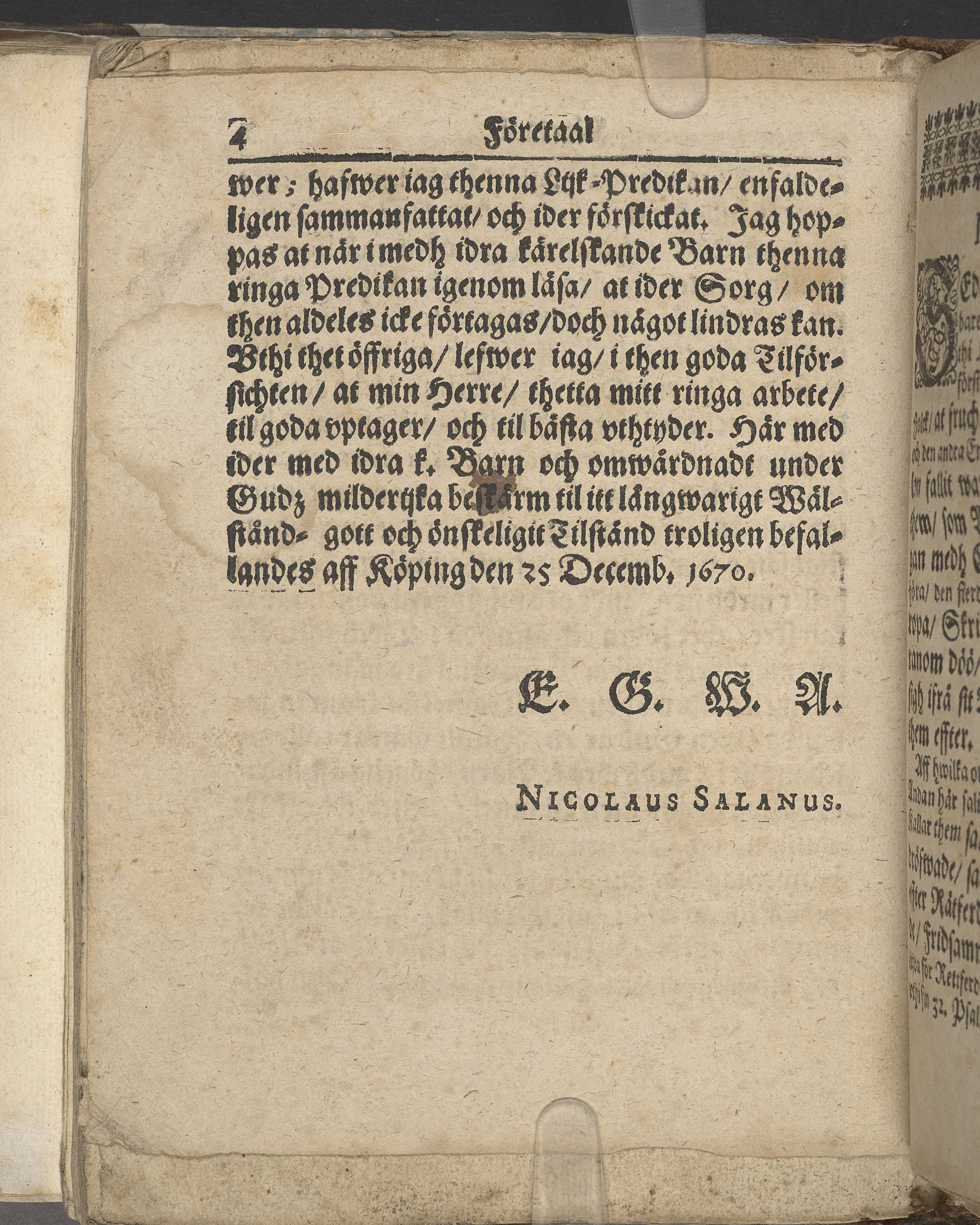 En christelig lijk-predikan öffwer ... Hust. Christina Jons Dotter ... vthi Köpingz kyrckio, den 24 febr. åhr 1670. Hållen aff Nicolao Jonæ Salano ... Wästeråhs, tryckt hoos Boëthium Hagen ... 1671.