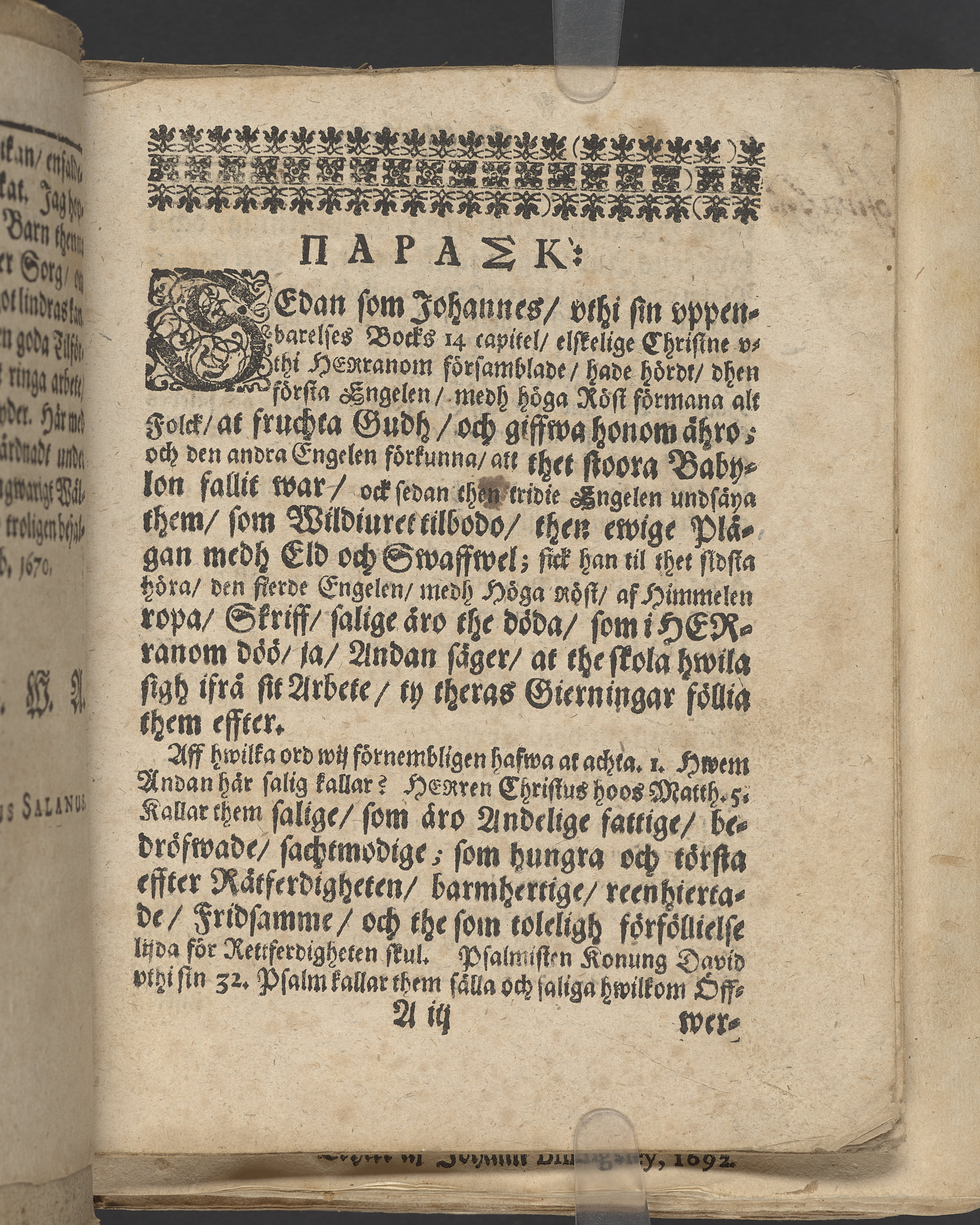 1671; 1700 (bandets tillverkning); 1671 (tryckår) |