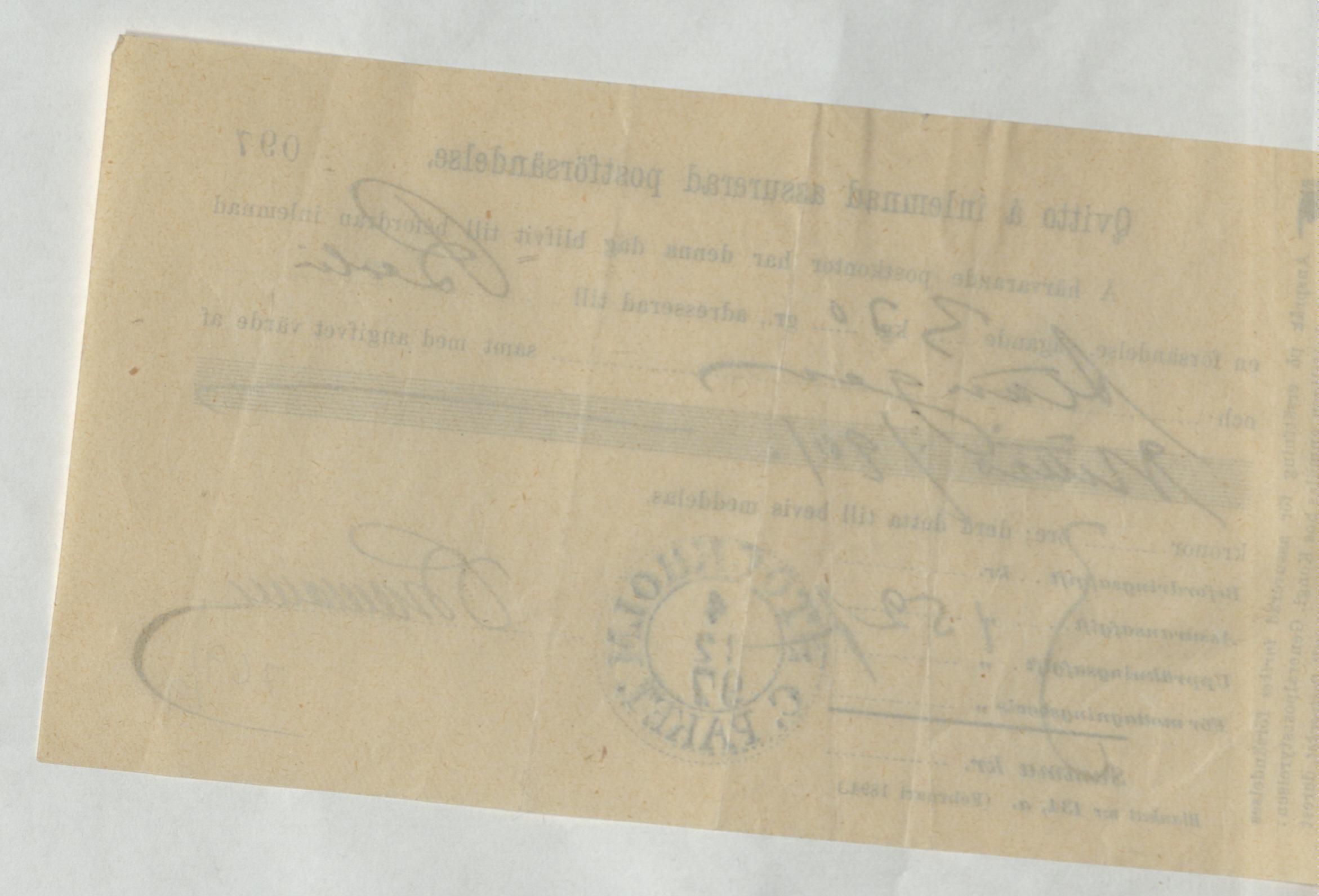 Kvitto på inlämnad assurerad postförsändelse.