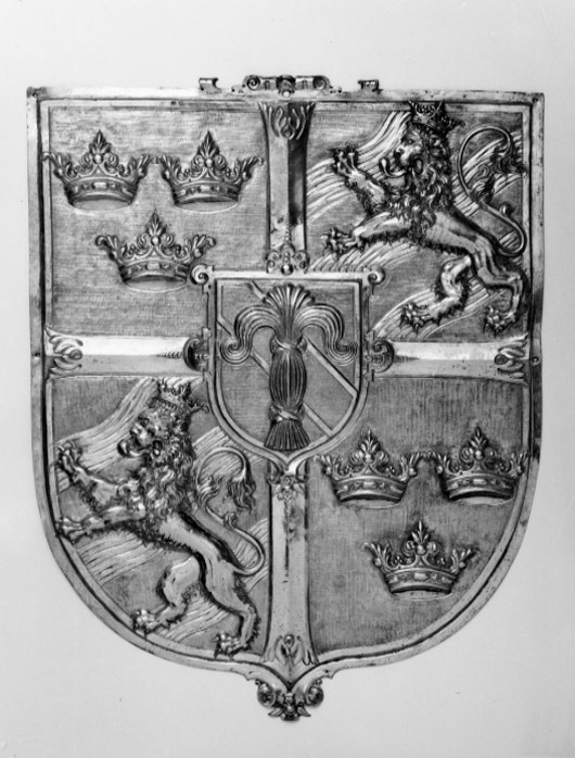 Vapensköld med svenskt riksvapen, Vasa-dynastien, 1500-talets mitt.