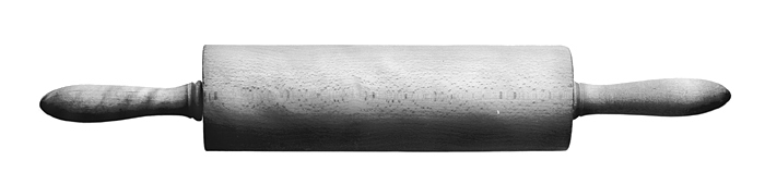 BRÖDKAVEL Av rödbok, svarvad. Bestående av en cylindrisk rulle, rörlig på en genom denna gående pinne, i vars både ändar ett spolformigt handtag av björk. Längd: 48,5 cm. Rulle, längd: 25,5 cm.; diameter: 7,4 cm. Handtag, längd: 11,5 cm.