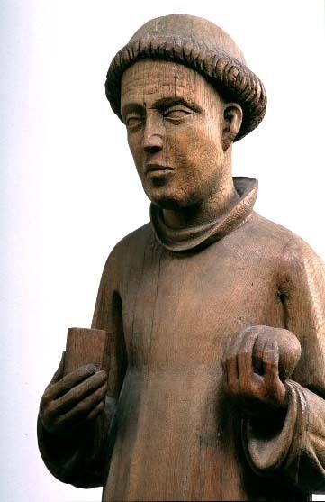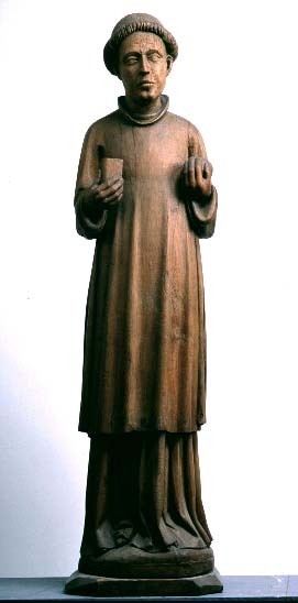 Kondition: ovanligt god, en lätt sprickbildning är omsorgsfullt spacklad. Färg: all färg avlägsnad varefter bilden brunbetsats.