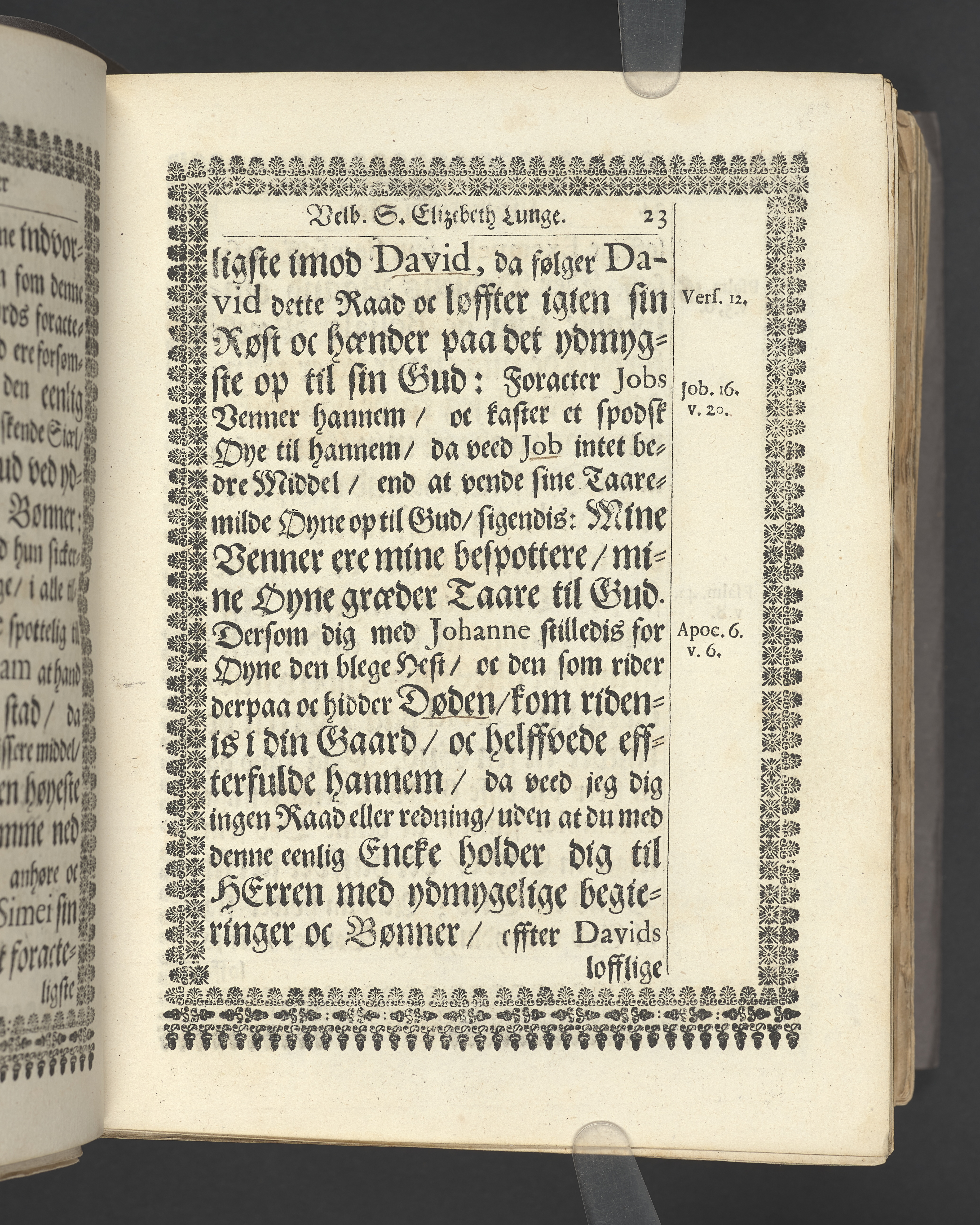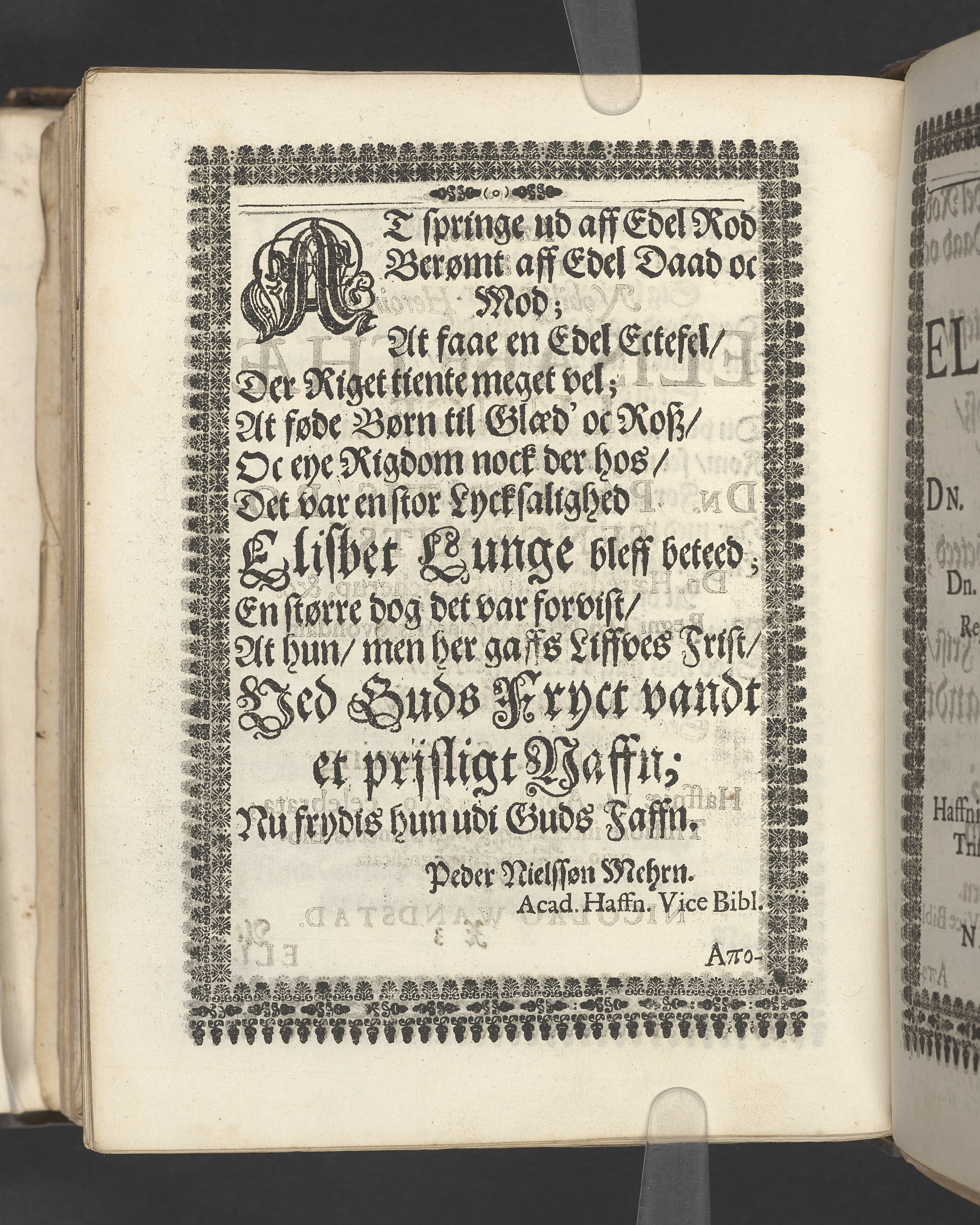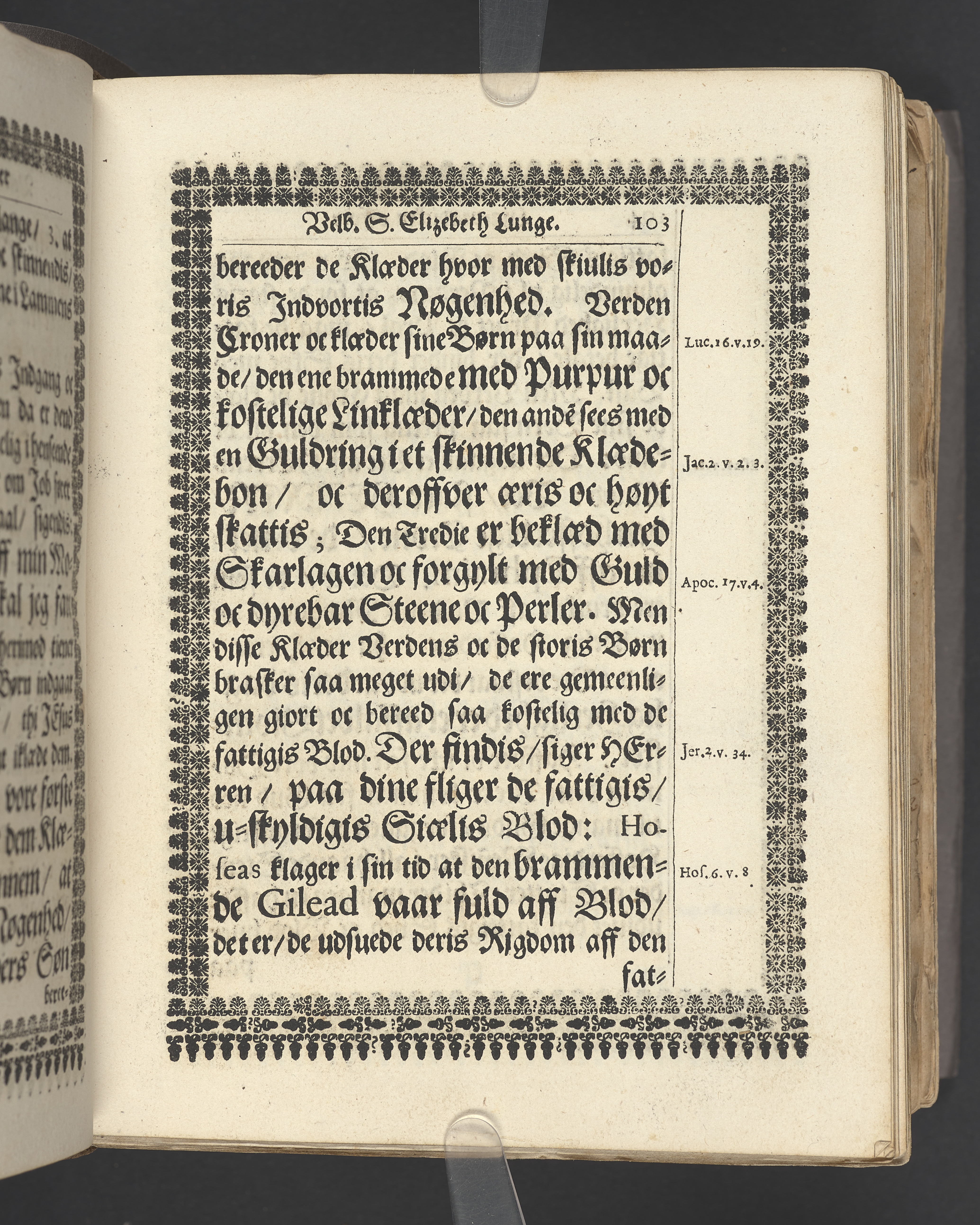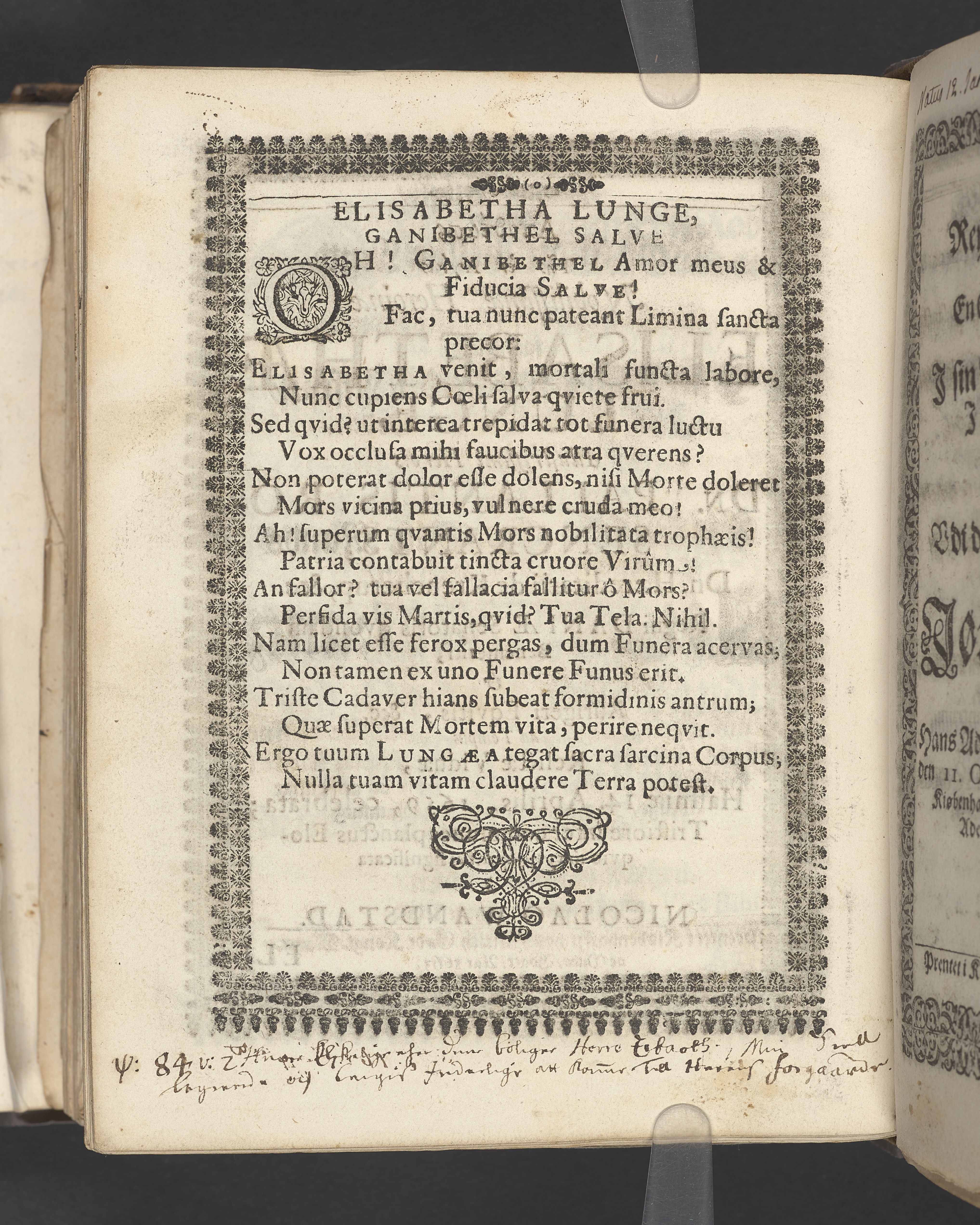 Guds Tempel, vdi hvilcket ere Guds Stoel, Guds Lam, oc Guds Børns herlig oc høytidelig Forsamling. Andragen ... der erlig oc velbiurdig Frue, nu salig frue, Elizebeth Lunge, salig Her Palle Rosenkrantzis til Krenckerup, hendis Liges Begengelse bleff die 14 Aprilis 1659 udi St. Nicolai kircke i Kiøbenhaffn hederligen holdet ... Forklaret aff Johanne Enwaldi Brochmand ... Kiøbenhaffn, tryckt af Hendrick Göde ... 1661.