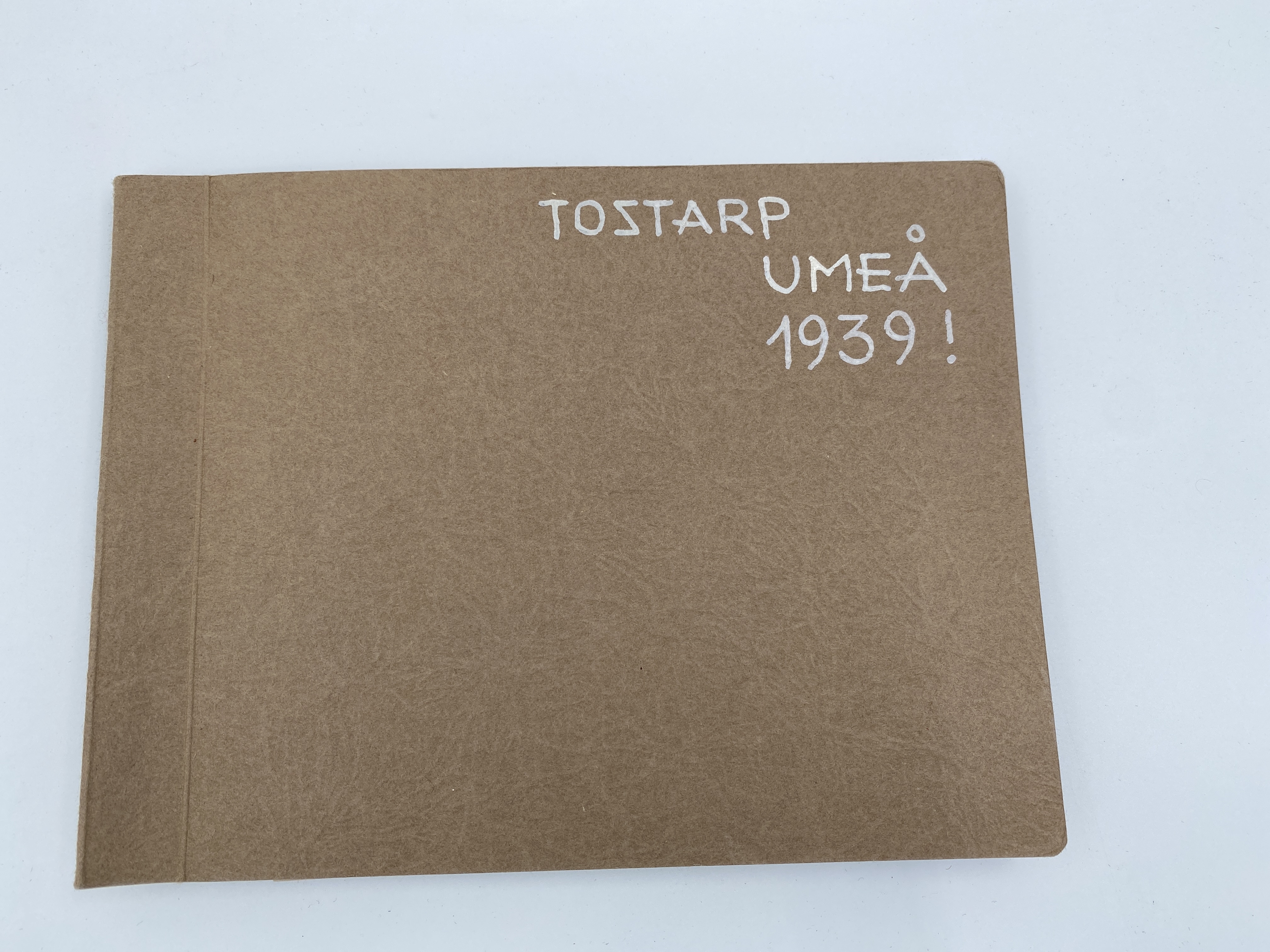 Fotoalbum som tillhört Auguste Sommer. Albumet har pärmar i kartong och bruna sidor. På framsidan står "Tostarp Umeå 1939". Det första fotografiet i albumet är ett julkort föreställande familjen Moen, med hälsningen till Fröken Auguste Sommer om en god jul.