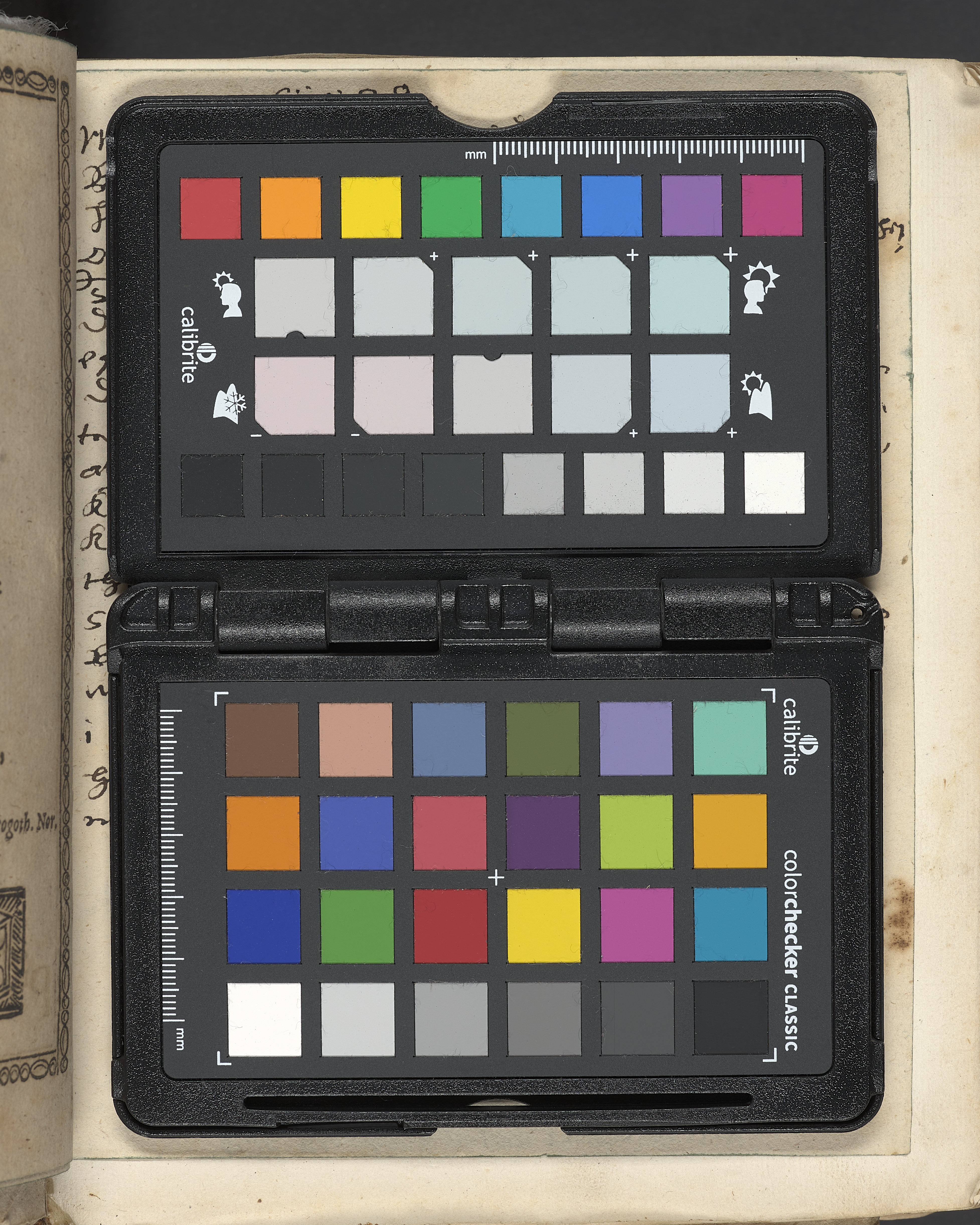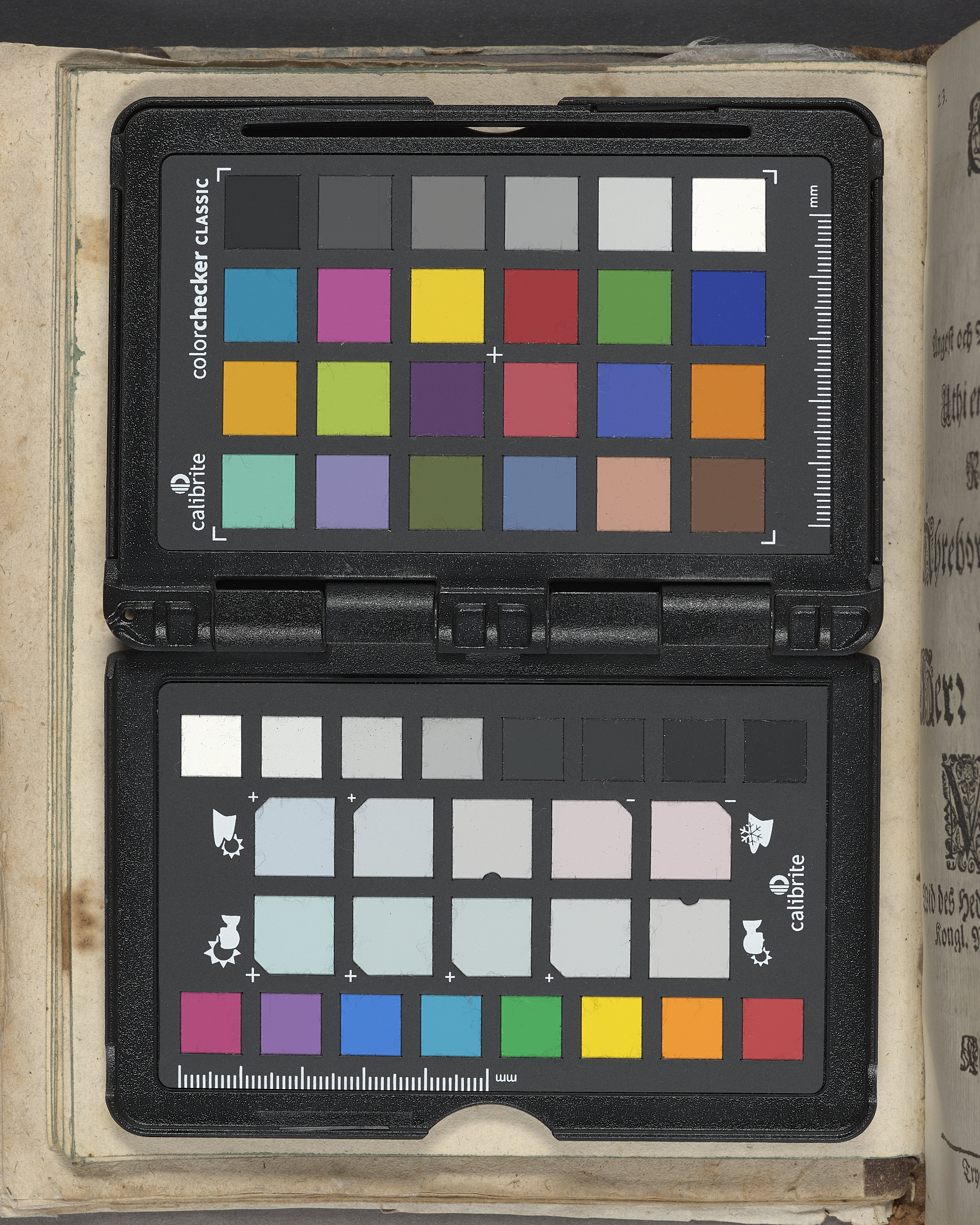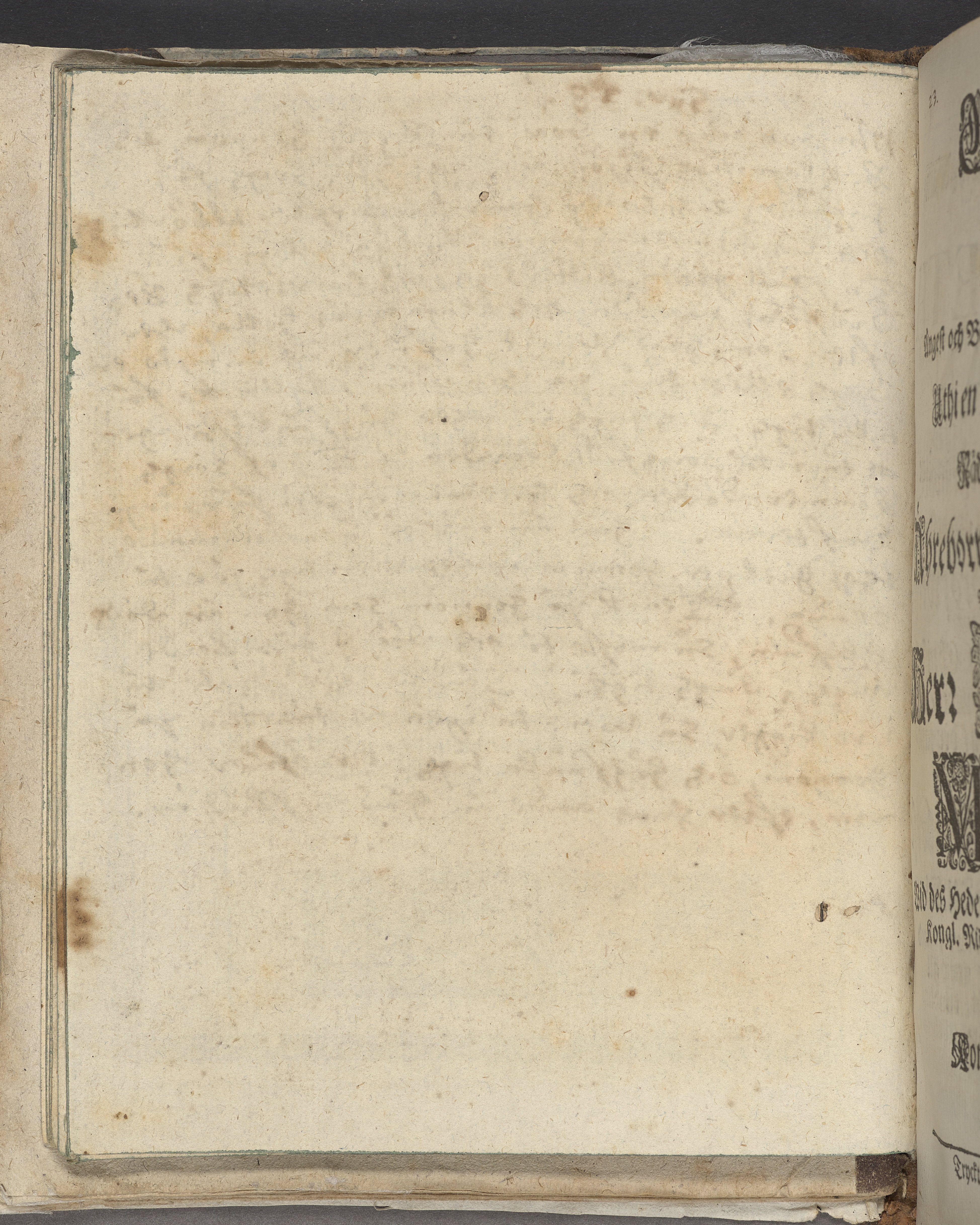 Band m. pärmar av marmorerat pappeBand m. pärmar av marmorerat papper, rygg och hörn av kalvskinn. Pärmfyllnad: papp. Inlagan består av enskilda lunthäftade skrifter som tillsammans häftats på tre bind, fast rygg. Variationer i papperskvalitet och storlek. 23 skrifter samlade i en volym. r, rygg och hörn av kalvskinn. Pärmfyllnad: papp.