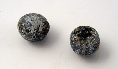 Rundkulor av bly med ena sidan tillplattad.