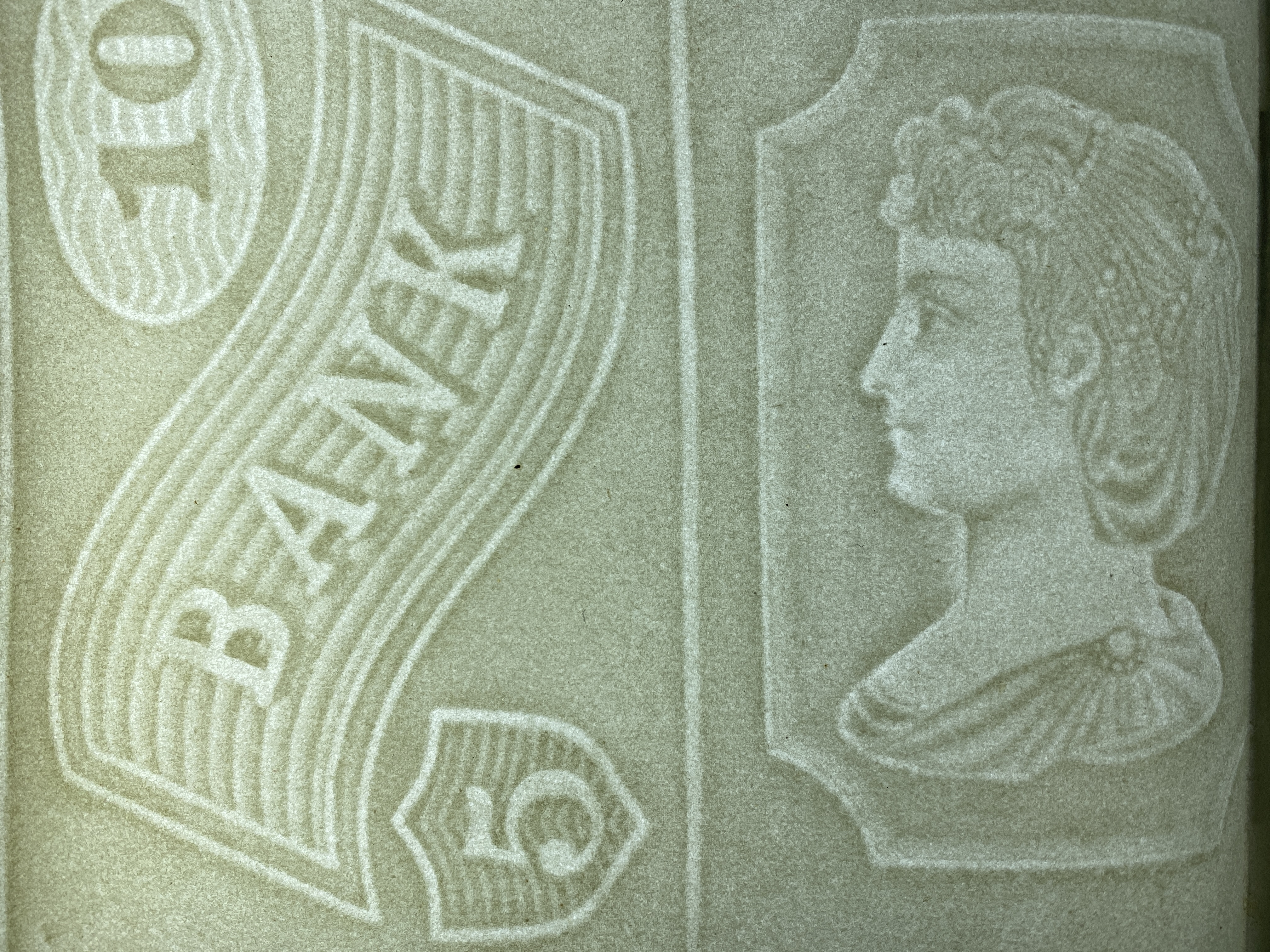 Ett tunt, avlångt ark handgjort papper med vattenstämpel. Vikt. Motiv: text "5 /10" samt ett kvinnoporträtt. Antal ark: 1 (2 motiv/delar).