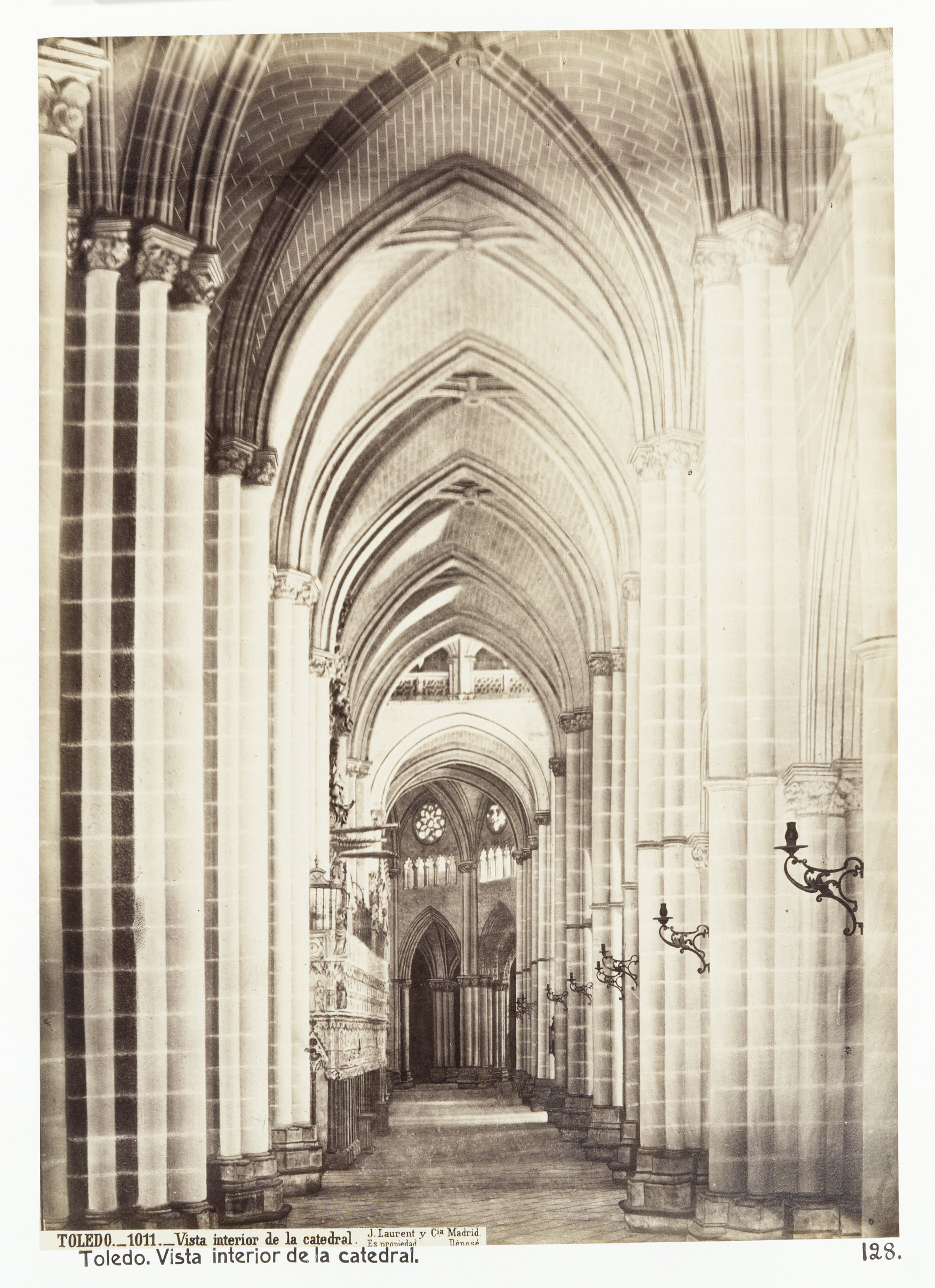Katedralen i Toledo, interiör. Foto från resa genom Spanien, Portugal och Marocko, 18 mars-5 juni 1895. Fotografierna LXVI:J.01.-169. är inköpta av Wilhelmina von Hallwyl, f. Kempe i Barcelona, Tarragona, Valencia, Córdoba, Sevilla, Granada, Málaga, Tanger, Ronda, Madrid, Toledo, Lissabon, Salamanca och Burgos. Med på resan var maken Walther von Hallwyl, modern Johanna Kempe, f. Wallis samt fröken Ida Uhse. Uppgifterna kommer från fröken Ida Uhses reseanteckningar.