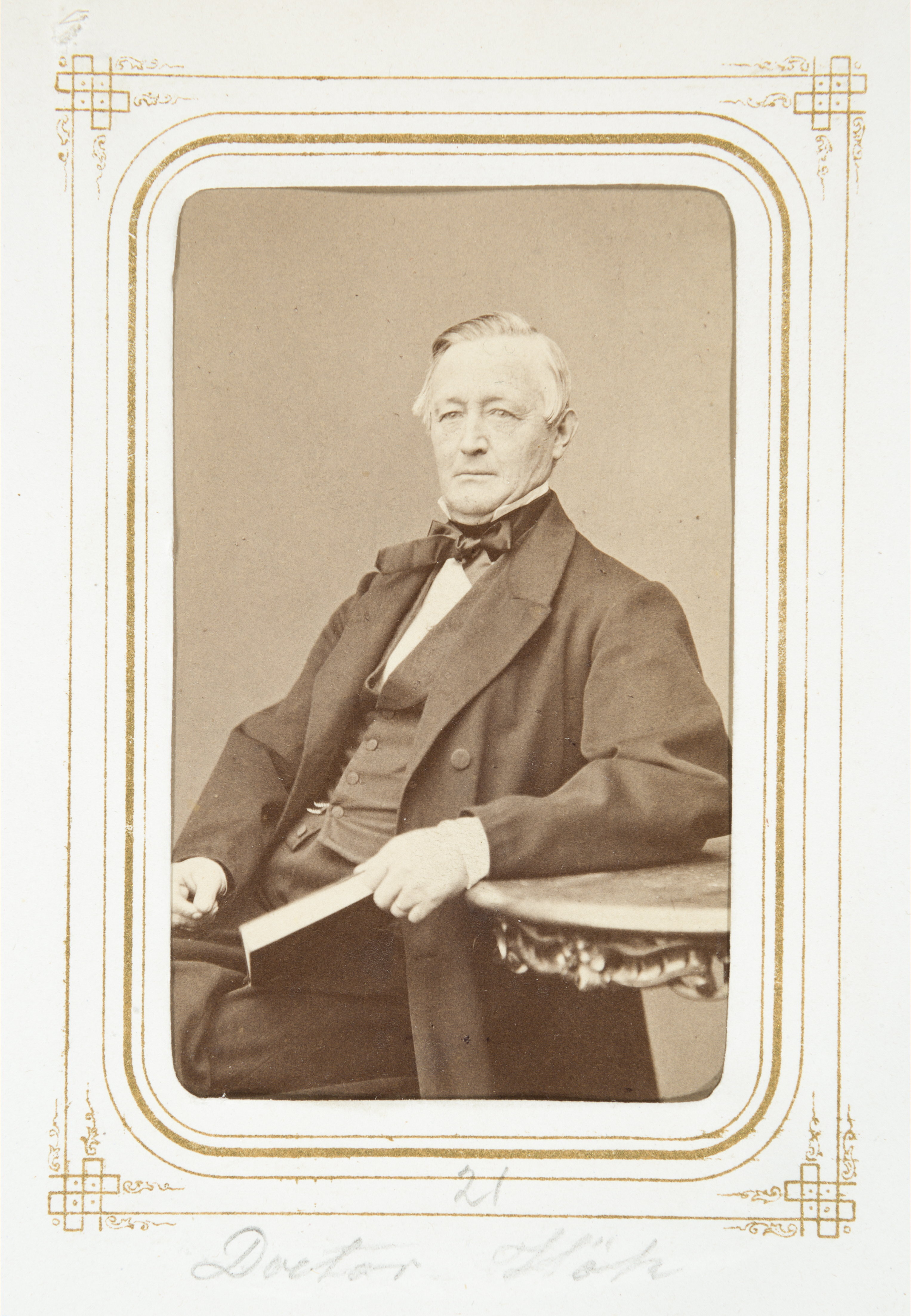 Biografi. Fotografiporträtt. 101 porträtt i album. Doktor THEODOR HÖK. Erhållet av Johanna Kempe, f. Wallis på 1860-talet. 26,5x20,7x4 cm.