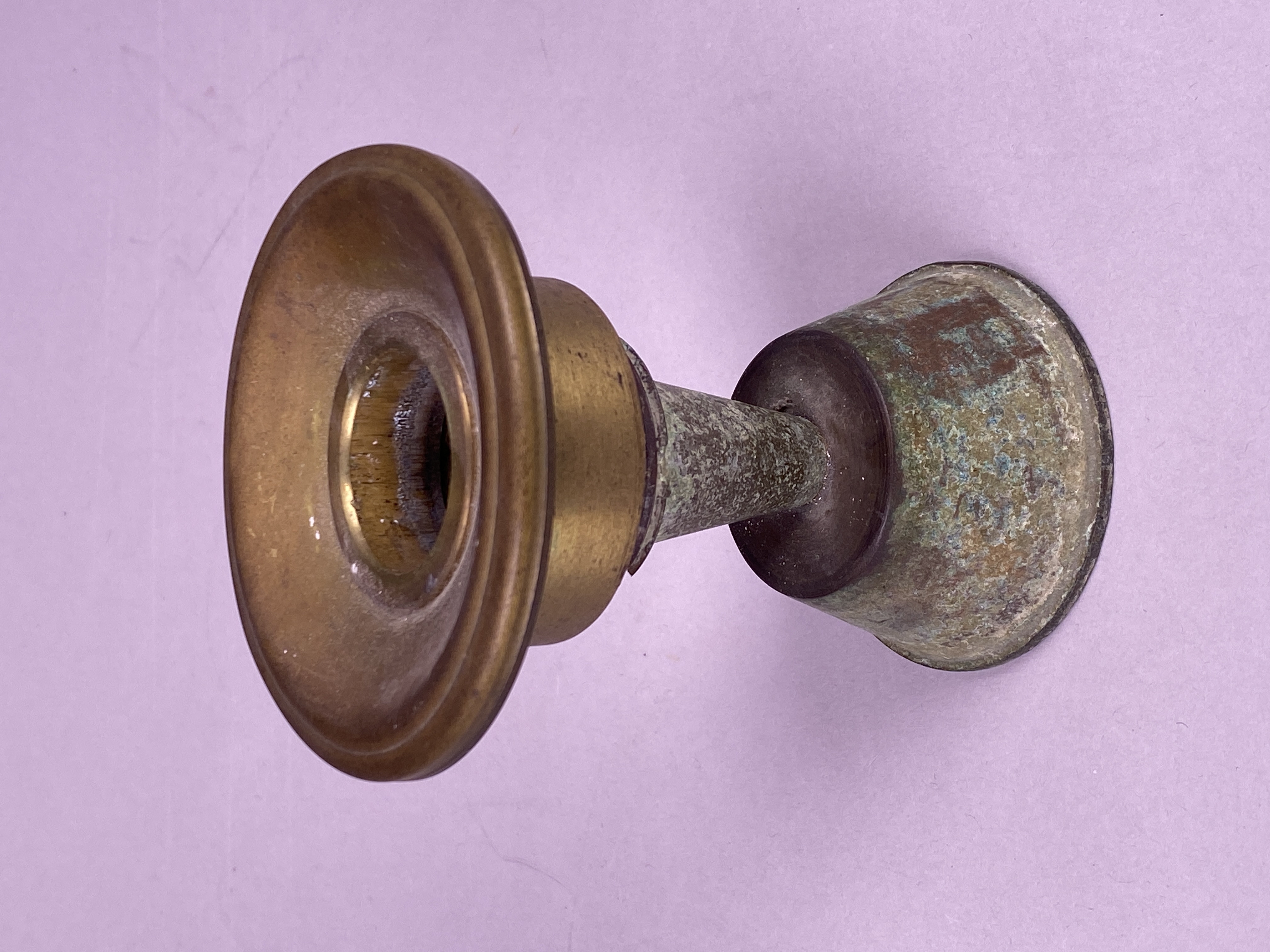 En gammal ljusstake med lock från Tumba Bruk.