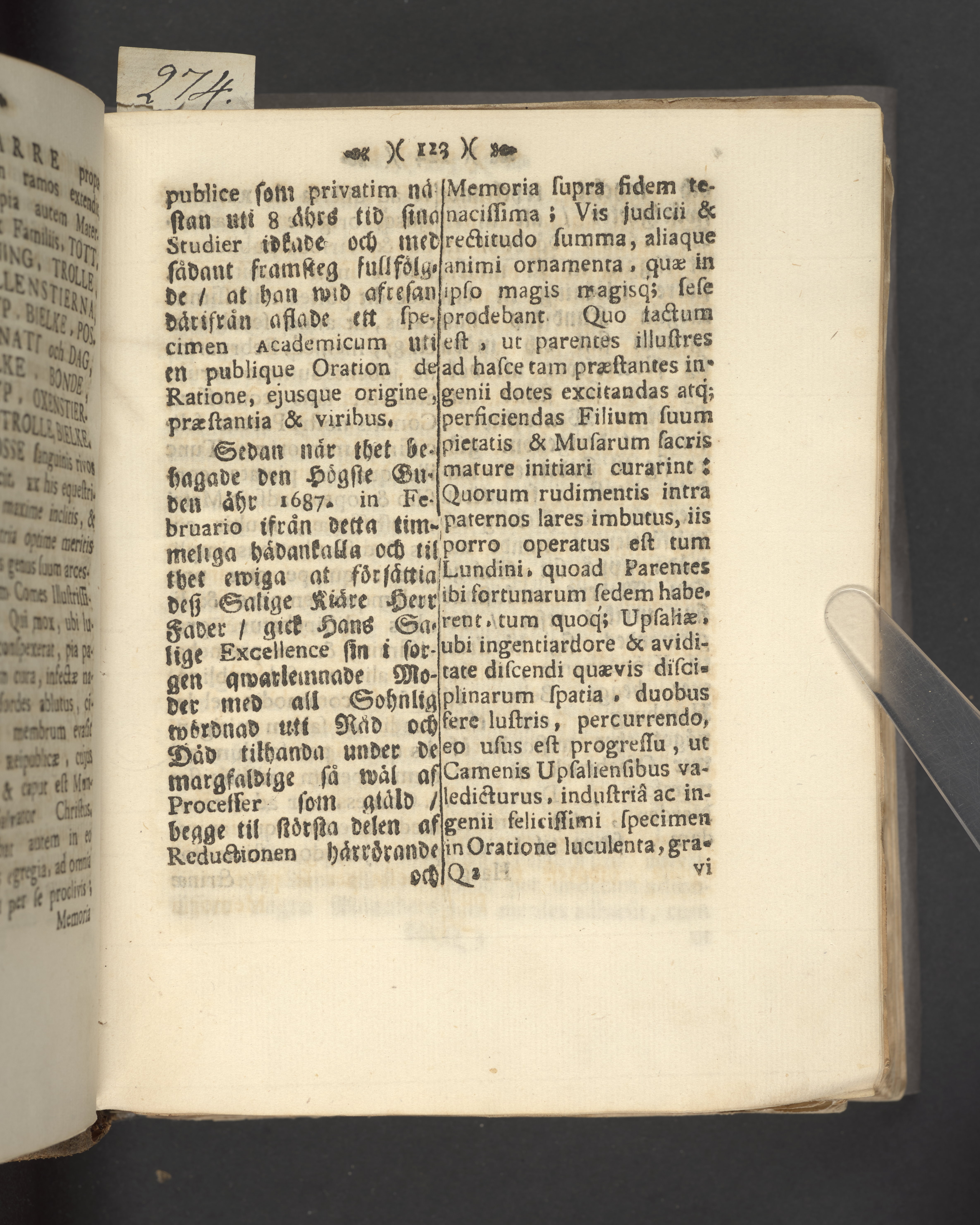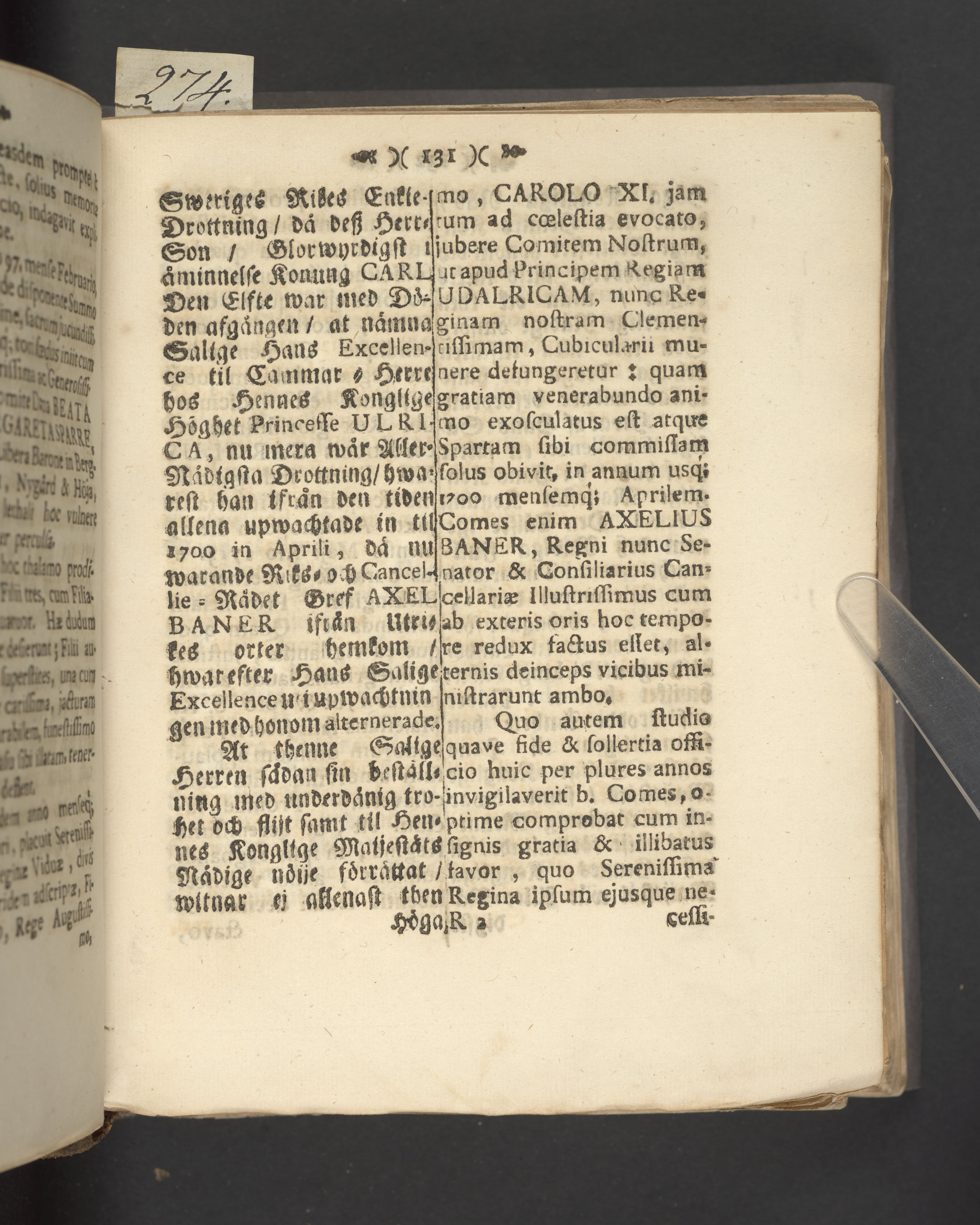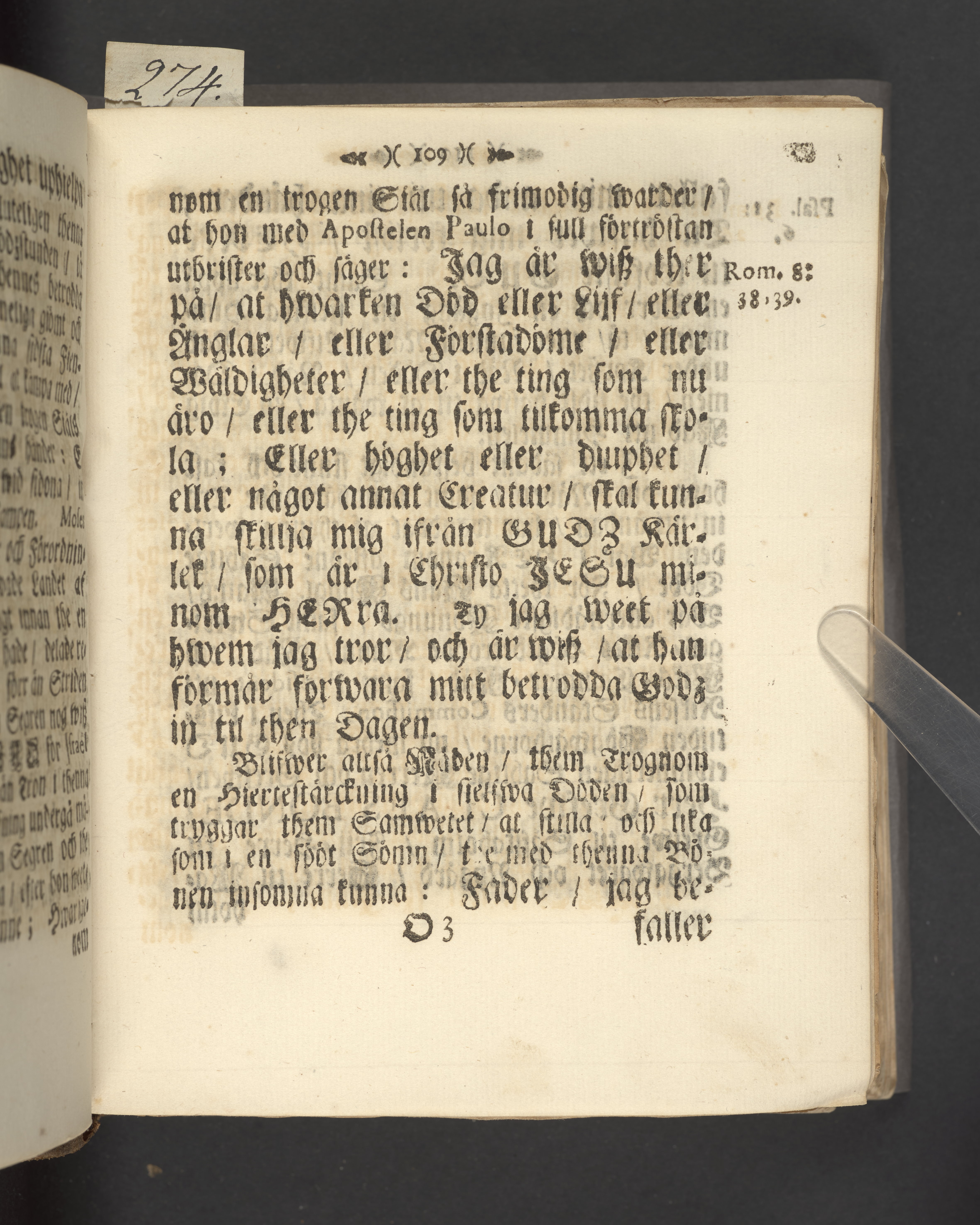 Högst upp på titelsidan anteckning i bläck med uppgifter om födelse- och dödsdatum för den avlidna.