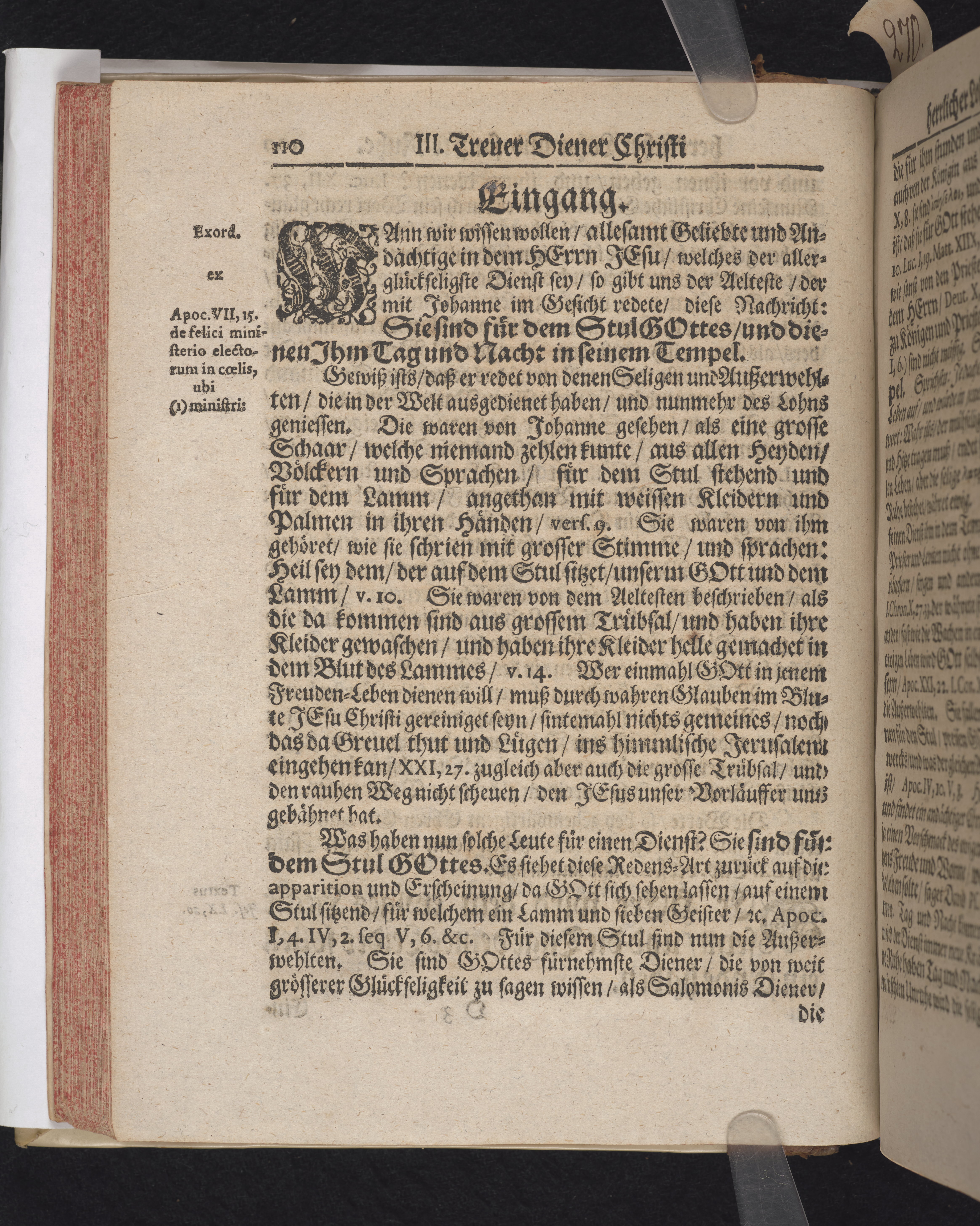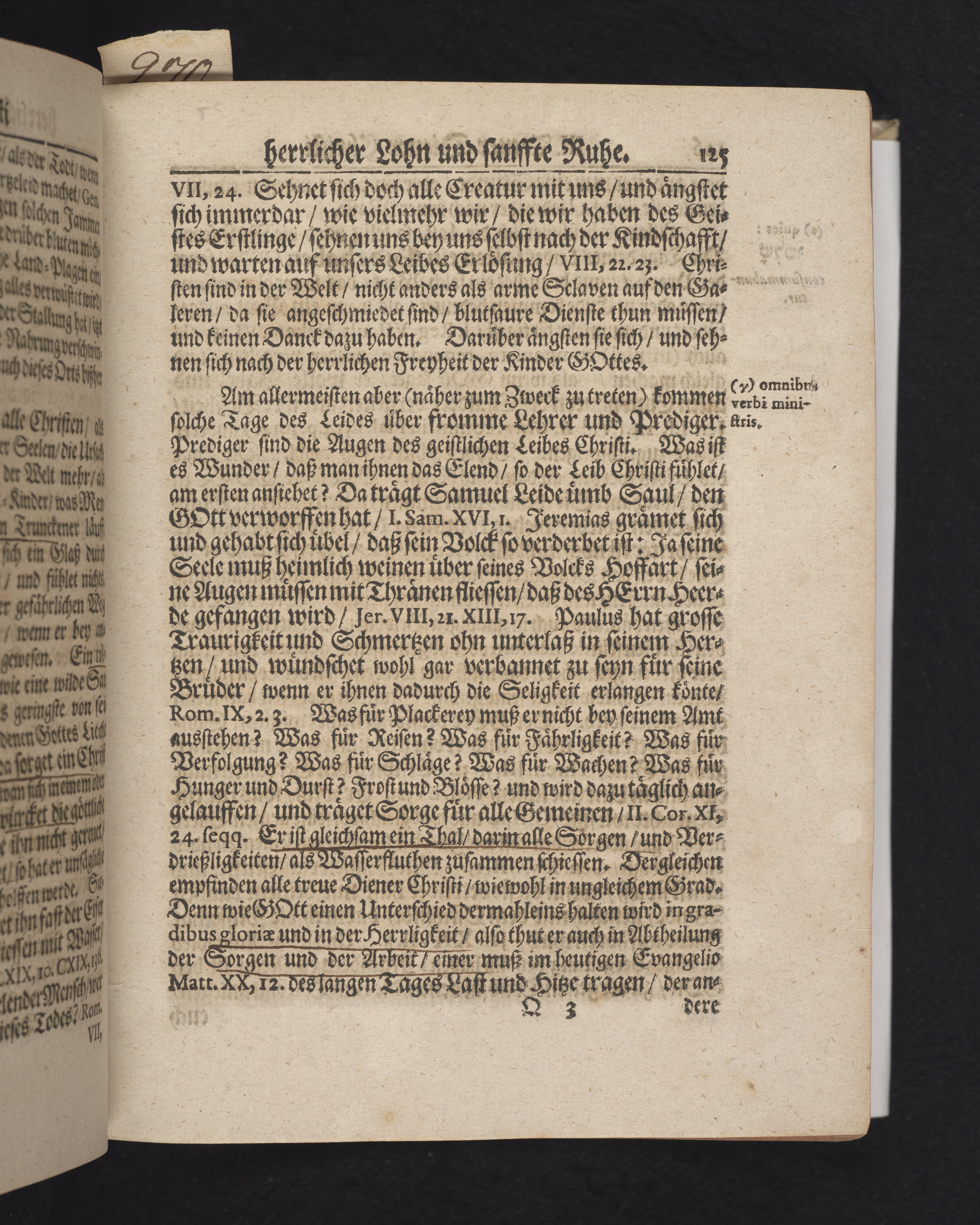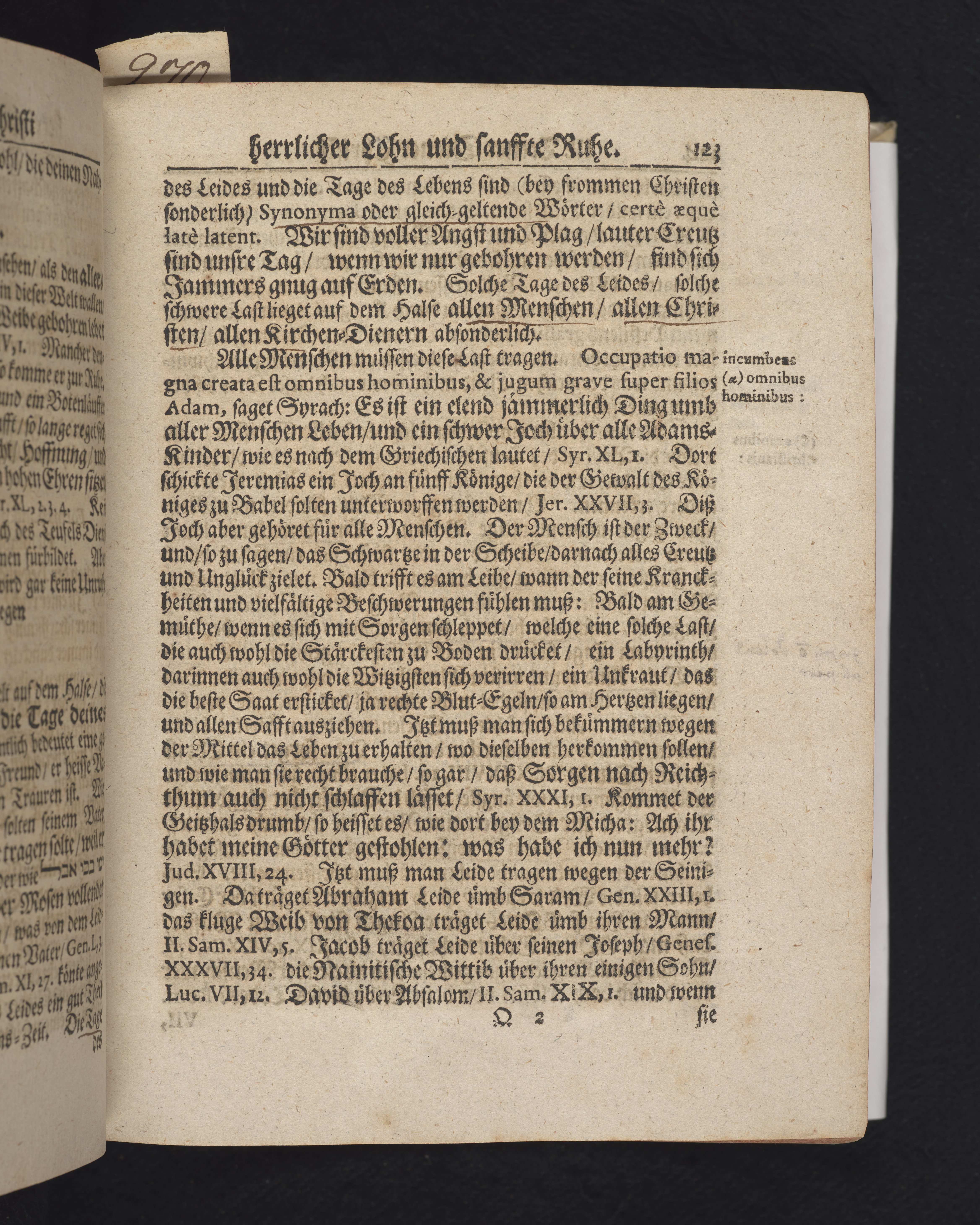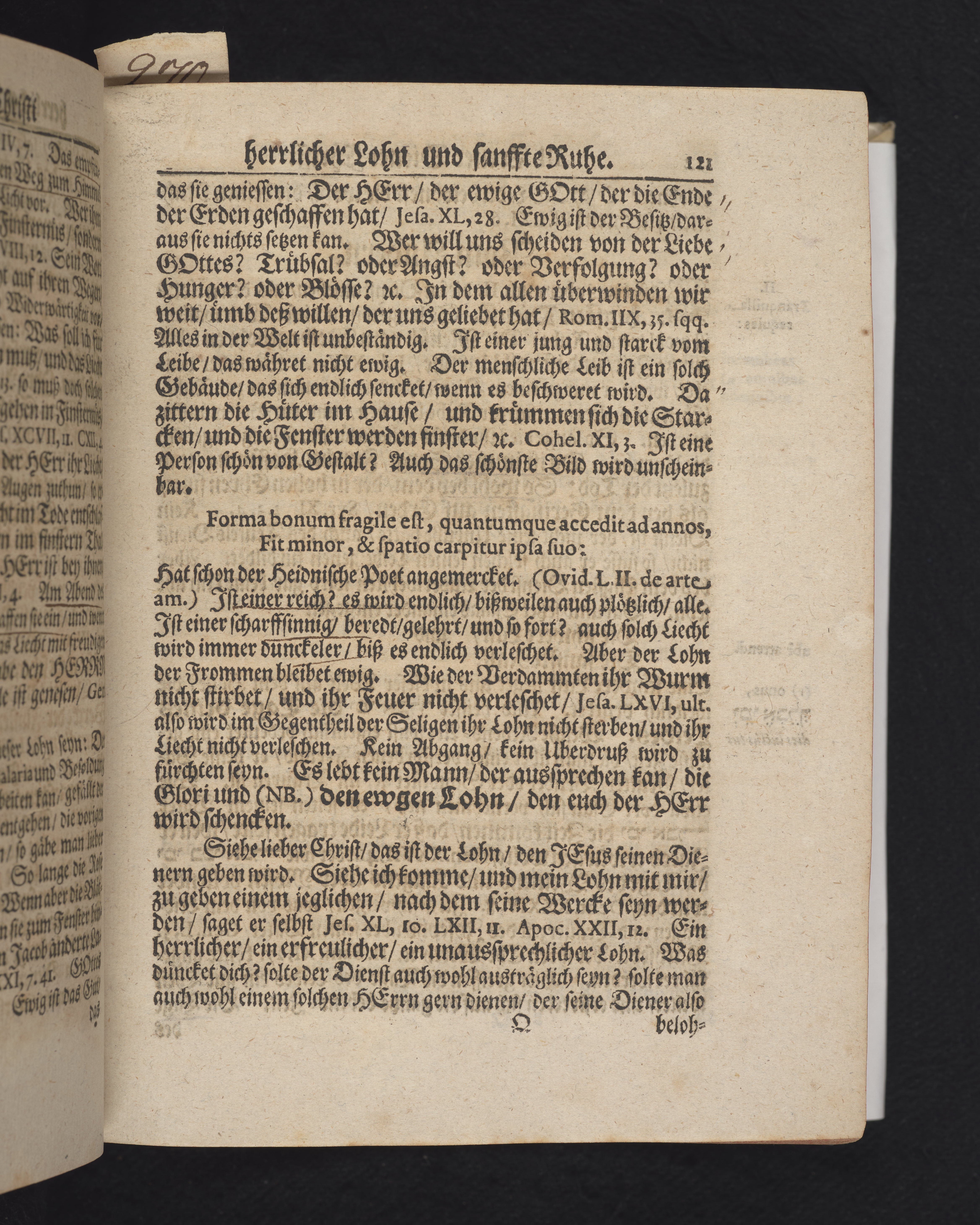 Ingår i en utgiven samling med 28 likpredikningar av Samuel Benedikt Carpzov: Grünende Gebeine, oder Leich-Predigten... Tryckt innehållsförteckning och register. Handskriven innehållsförteckning över de 28 likpredikningarna med bläck på främre försättsbladet (recto och verso).