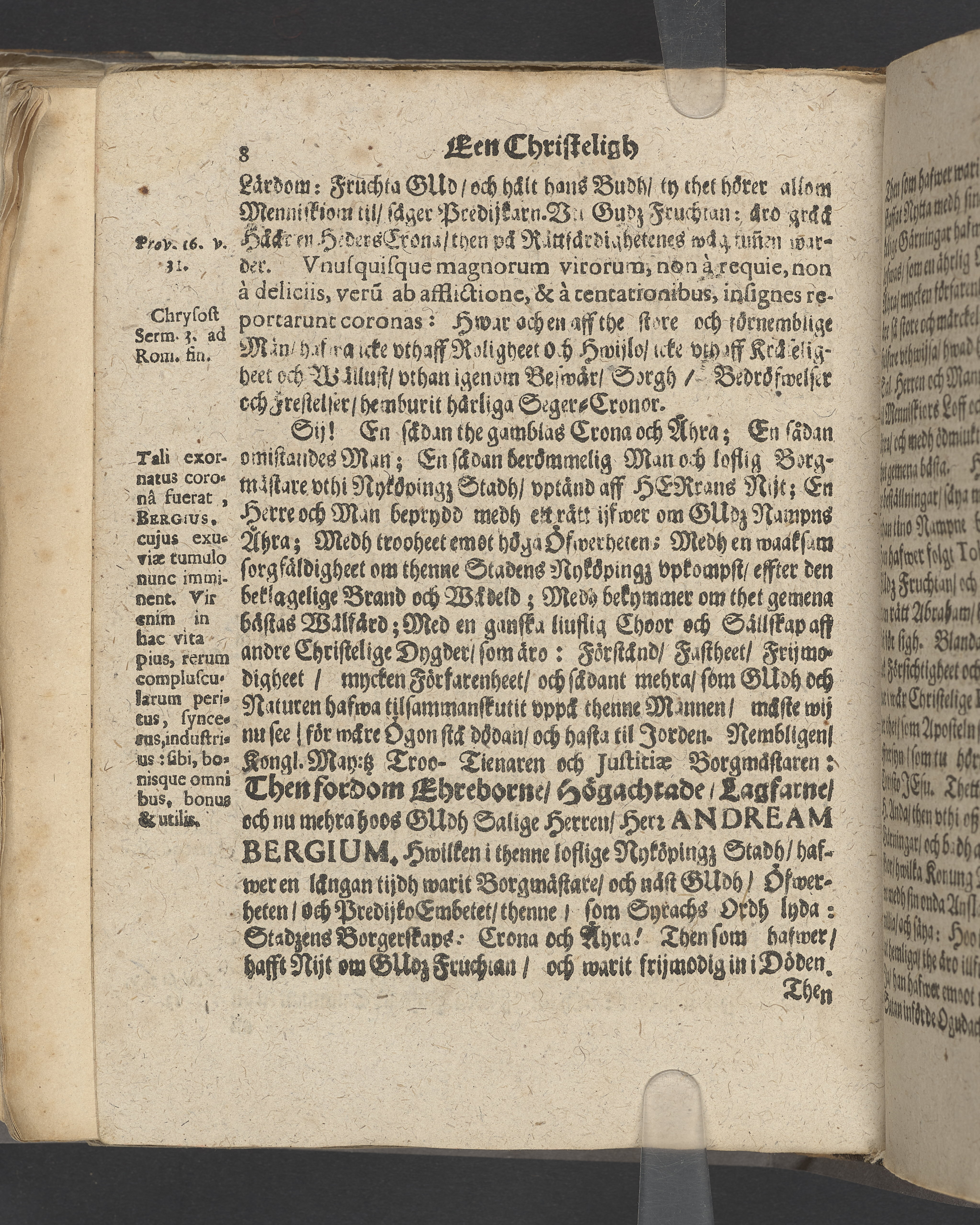 Patriarchens Jacobs litzla och onda elendes tijdh ... vthi en christelig lijk-sermon, öfwer ... Hr. Andreas Bergius, tå hans sahl. lekamen ... i St. Nicolai kyrckia, den 15 Junii, åhr 1679. bleff införd och begrafwen ... föreställt aff Olao E. Rosendalio ... Tryckt hoos Niclas Wankijff kongl. booktr.
