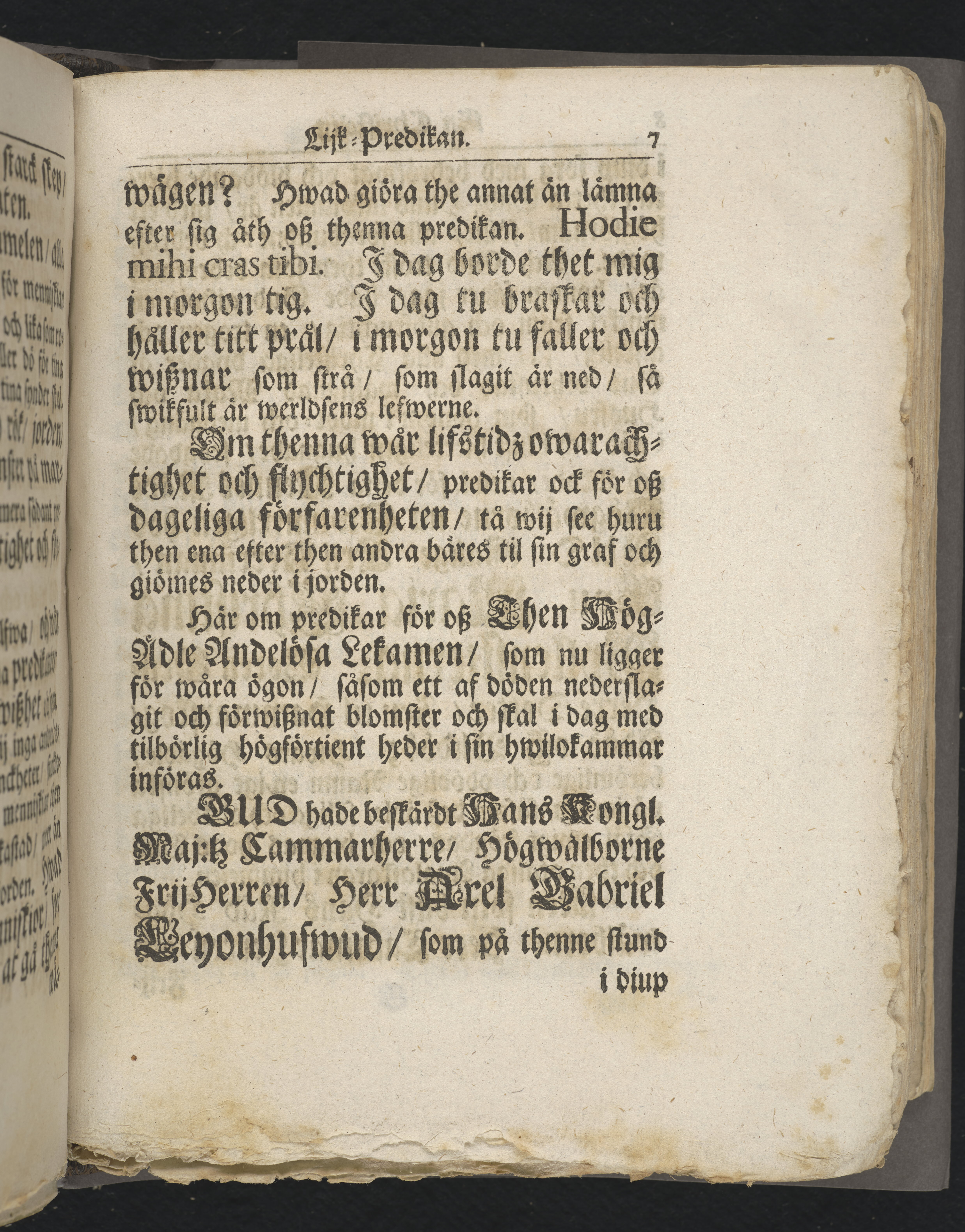 Att Herren kiänner sina, är af Guds faste och ståndande grund med desz insegel betrachtat uti närwarande christelige lijk-predikan, öfwer kongl. may:tz tro man, och cammar herrens ... Axel Gabriel Leijonhufwud ... i lifwet högtälskade, efter döden högt-saliga huus-fru ... Maria Christina Gyllenstierna ... Då desz högädla lekamen med högförtiänt heder infördes uti sin och sina fäders graf, i Dalby kyrckia, år 1709. den 10. september, uti en hög- och förnäm församlings närwaro. Hållen af Olao Holmer ... Upsala, hos Joh. Henr. Werner kongl. may:ts boktr. 1712.