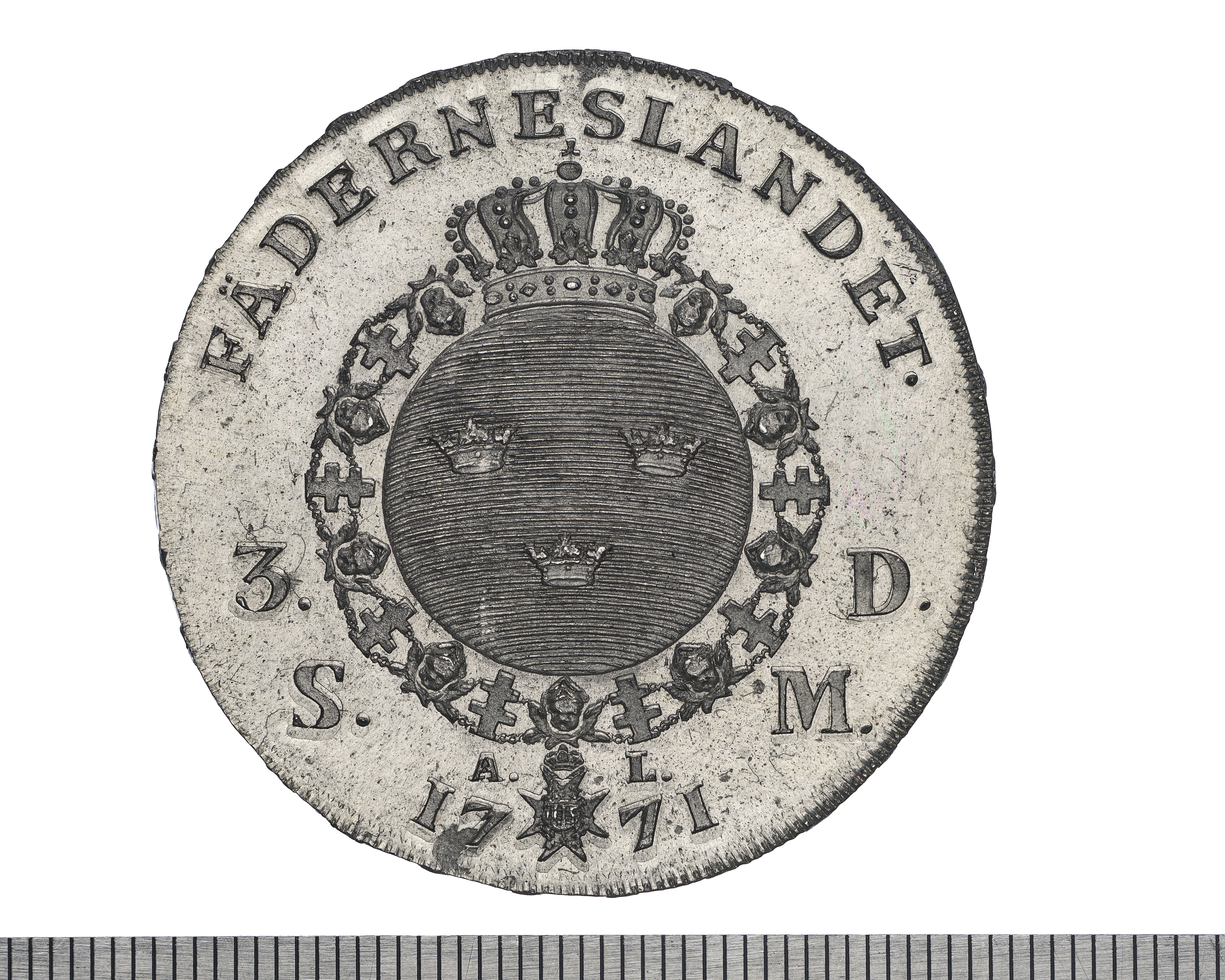 Upphov: Gustav III av Sverige. Media: Bonnevier, Helena. Ekonomiska museet - Kungliga myntkabinettet/SHM, (CC BY 4.0) Du får bearbeta och dela verket för alla ändamål, även kommersiella, så länge du anger upphovsperson och licensgivare.