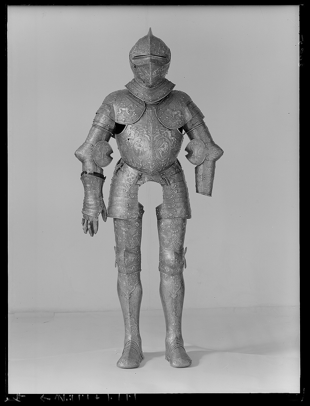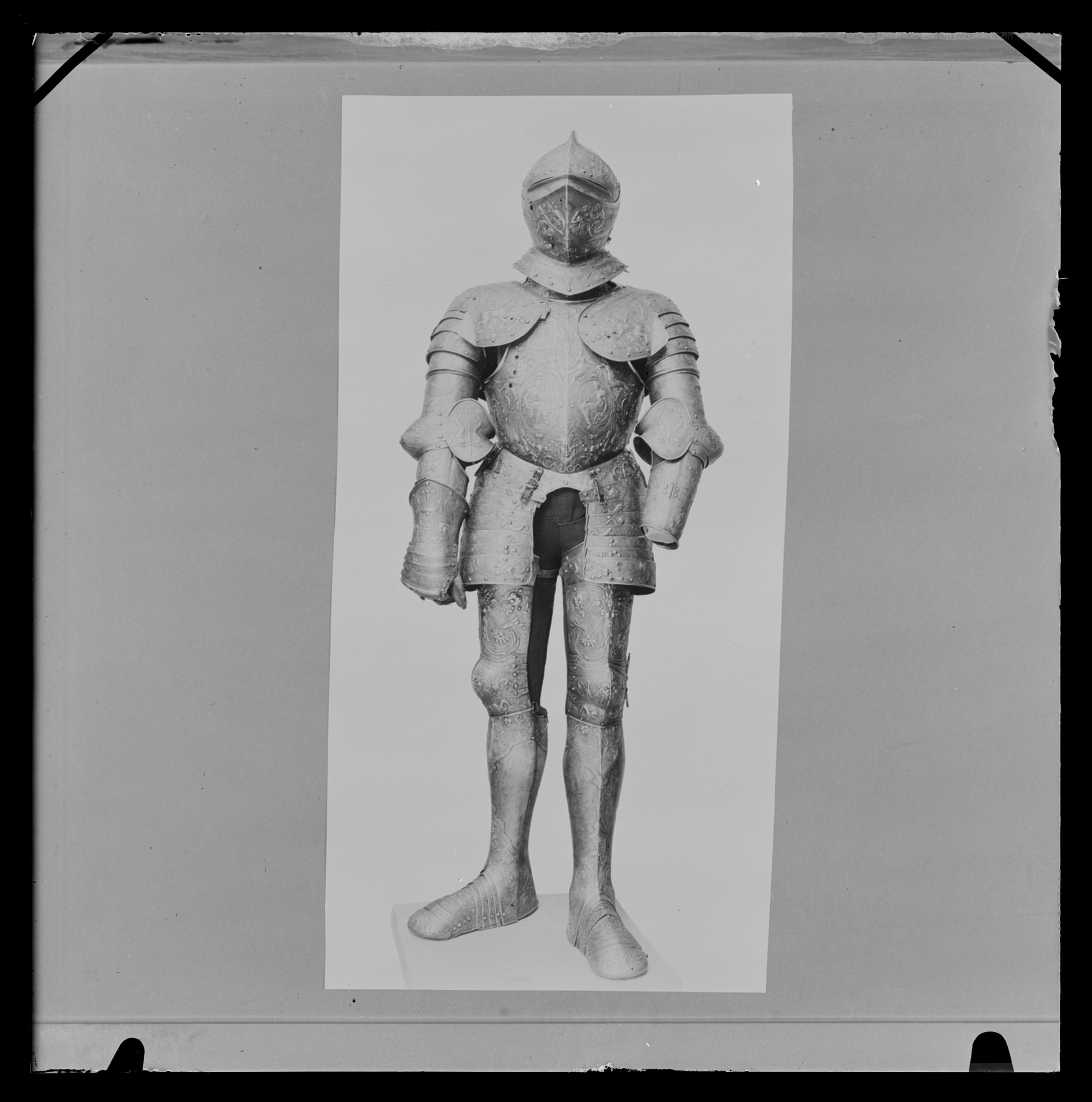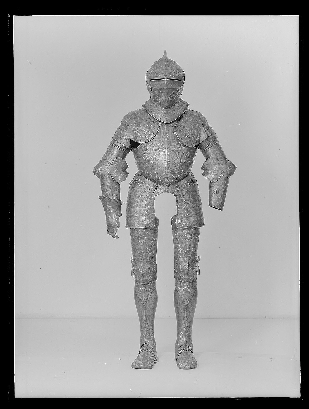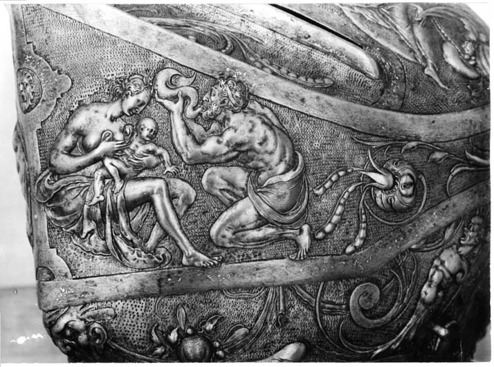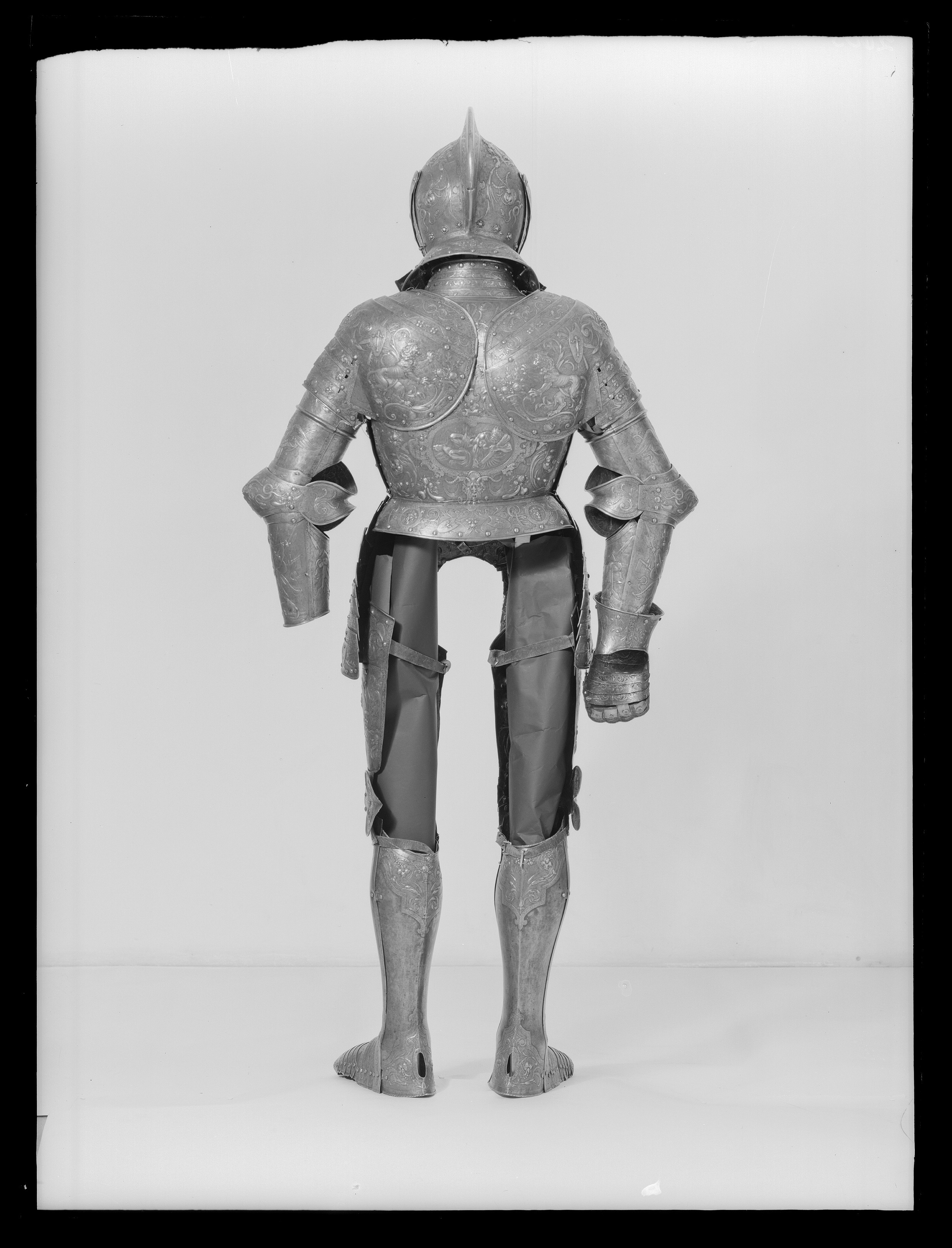 Visirhjälm av driven och punsad stålplåt, tillhörig Erik XIV:s paradrustning.