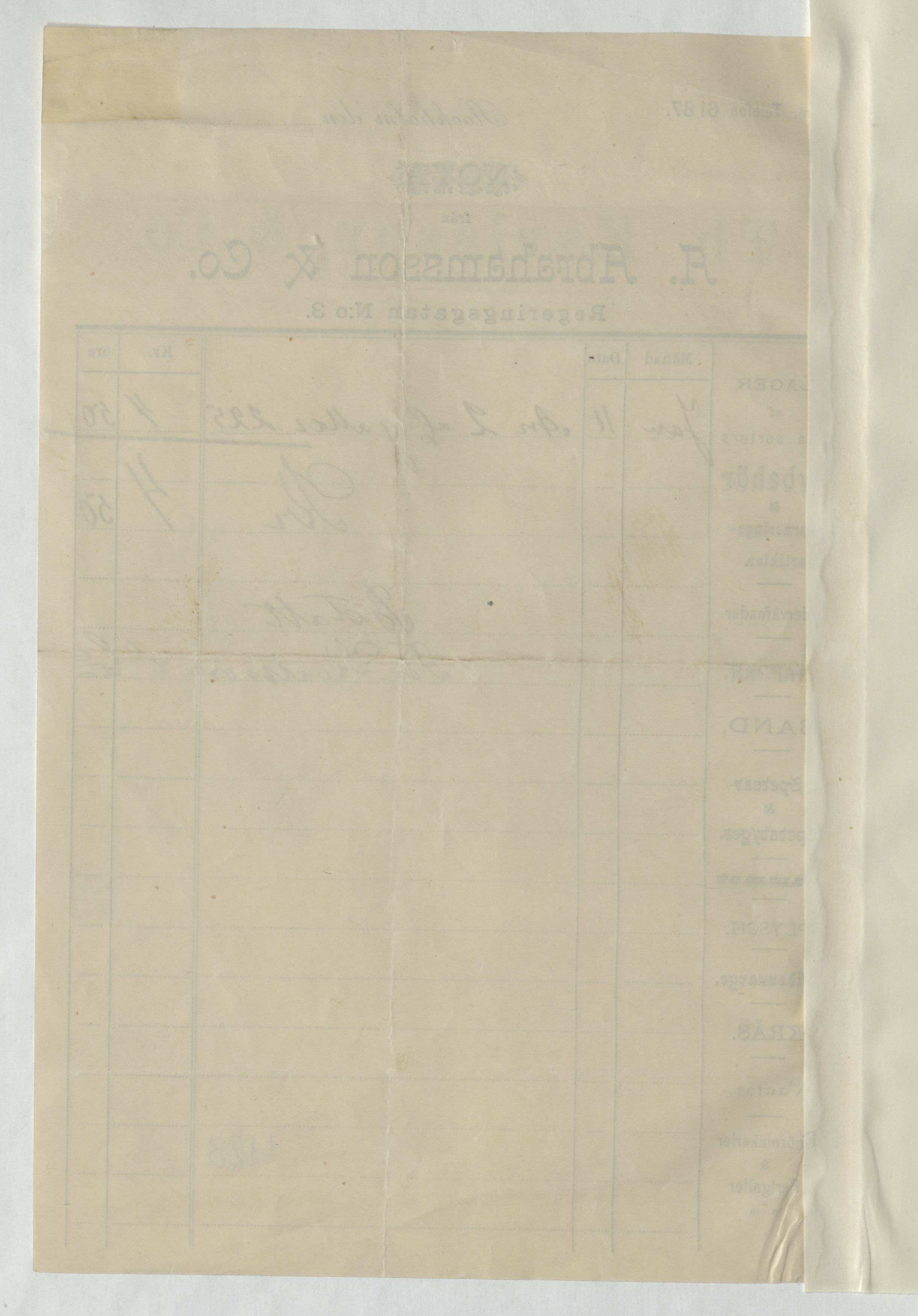 Kvitto från Th. Karlsson & Co.