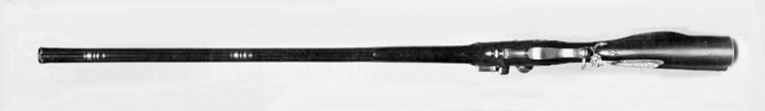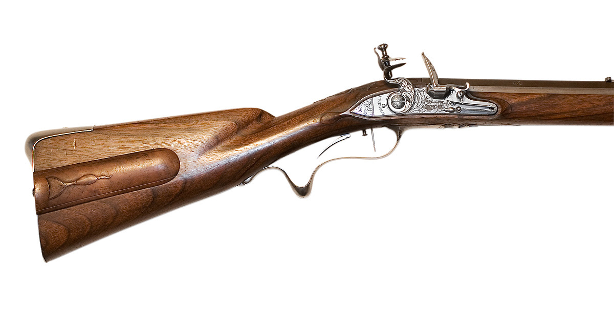 Flintlåsstudsare med pipa av Samuel Riddersporre, Norrköping ca 1700, lås och stock av Anders Wåhlberg, Stockholm ca 1770.