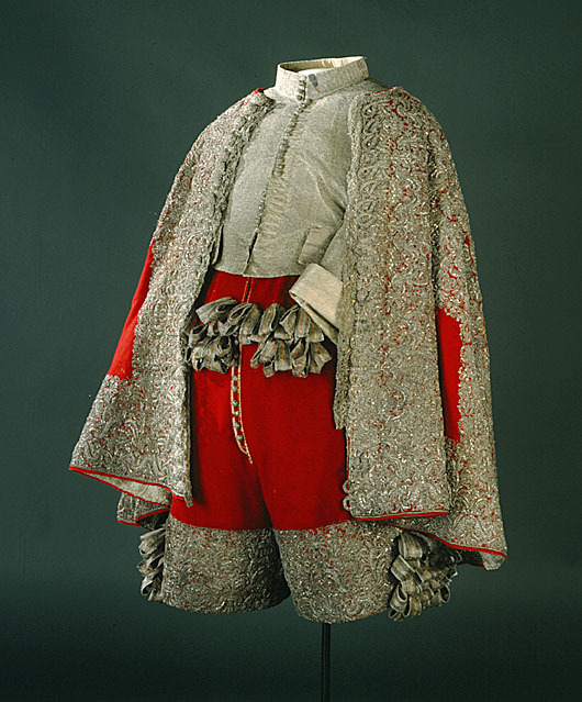 Kasack av scharlakansrött kläde, använd av Karl X Gustav vid kröningen 6 juni 1654.