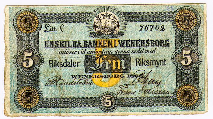 Enskilda Banken i Wenersborg - Fem riksdaler riksmynt