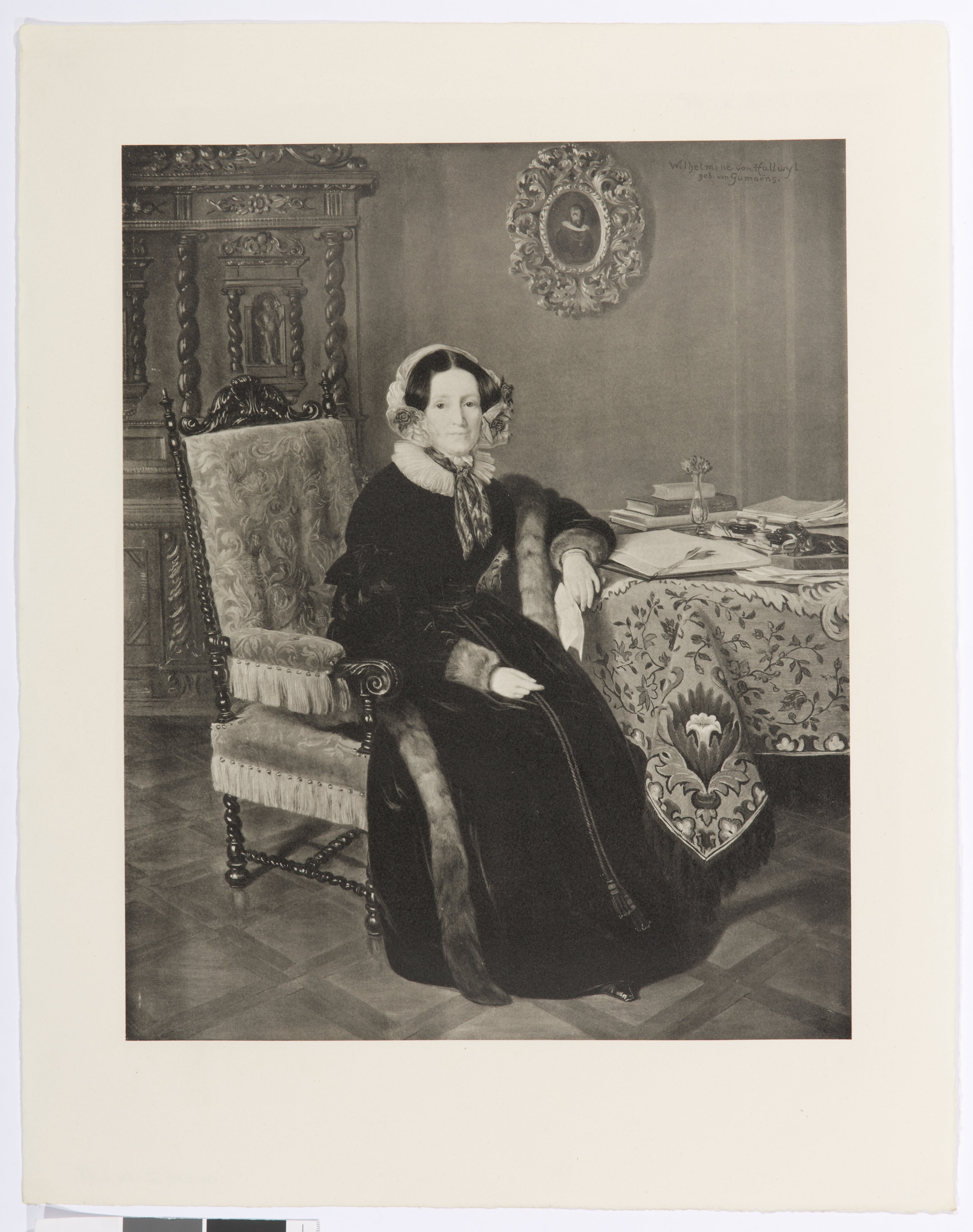 Ljustryck öfver familjeporträtt samt slott och egendomar, som tillhört Hallwylska släkten utförda för att hänga i Schloss Hallwil. Wilhelmina von Hallwyl född Gumoëng.