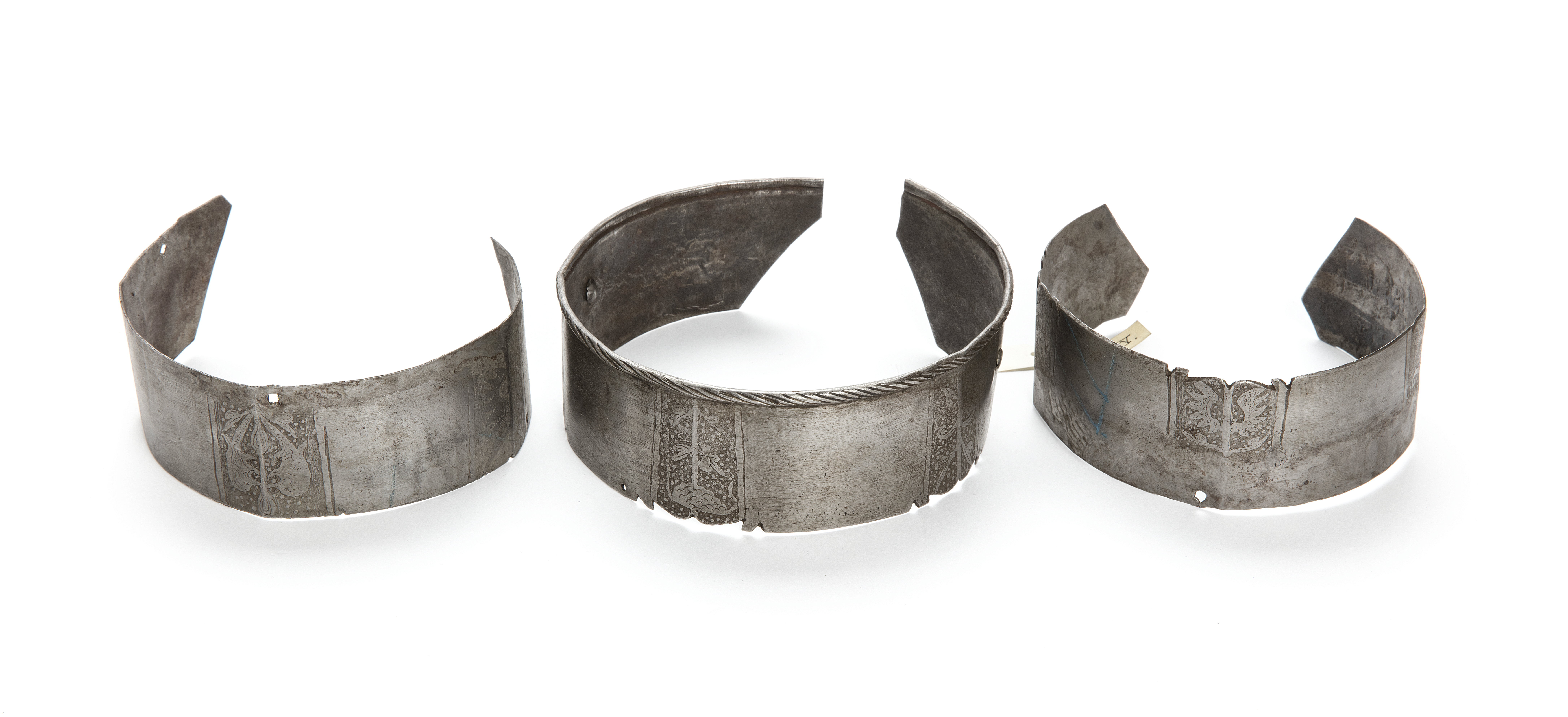 Tre stycken överarmslameller. Komplettering (1800-tal) till rustning med g.nr. 4535.