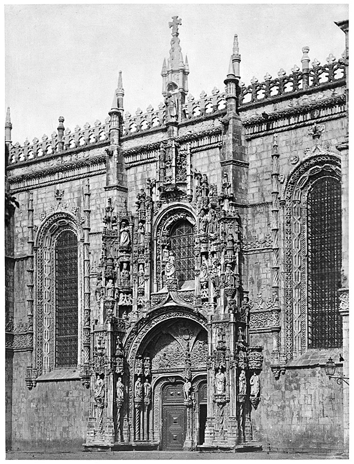 Igreja do Geronimo (Geronimos kyrka) i stadsdelen Belém i Lissabon. Foto från resa genom Spanien, Portugal och Marocko, 18 mars-5 juni 1895. Fotografierna LXVI:J.01.-169. är inköpta av Wilhelmina von Hallwyl, f. Kempe i Barcelona, Tarragona, Valencia, Córdoba, Sevilla, Granada, Málaga, Tanger, Ronda, Madrid, Toledo, Lissabon, Salamanca och Burgos. Med på resan var maken Walther von Hallwyl, modern Johanna Kempe, f. Wallis samt fröken Ida Uhse. Uppgifterna kommer från fröken Ida Uhses reseanteckningar.