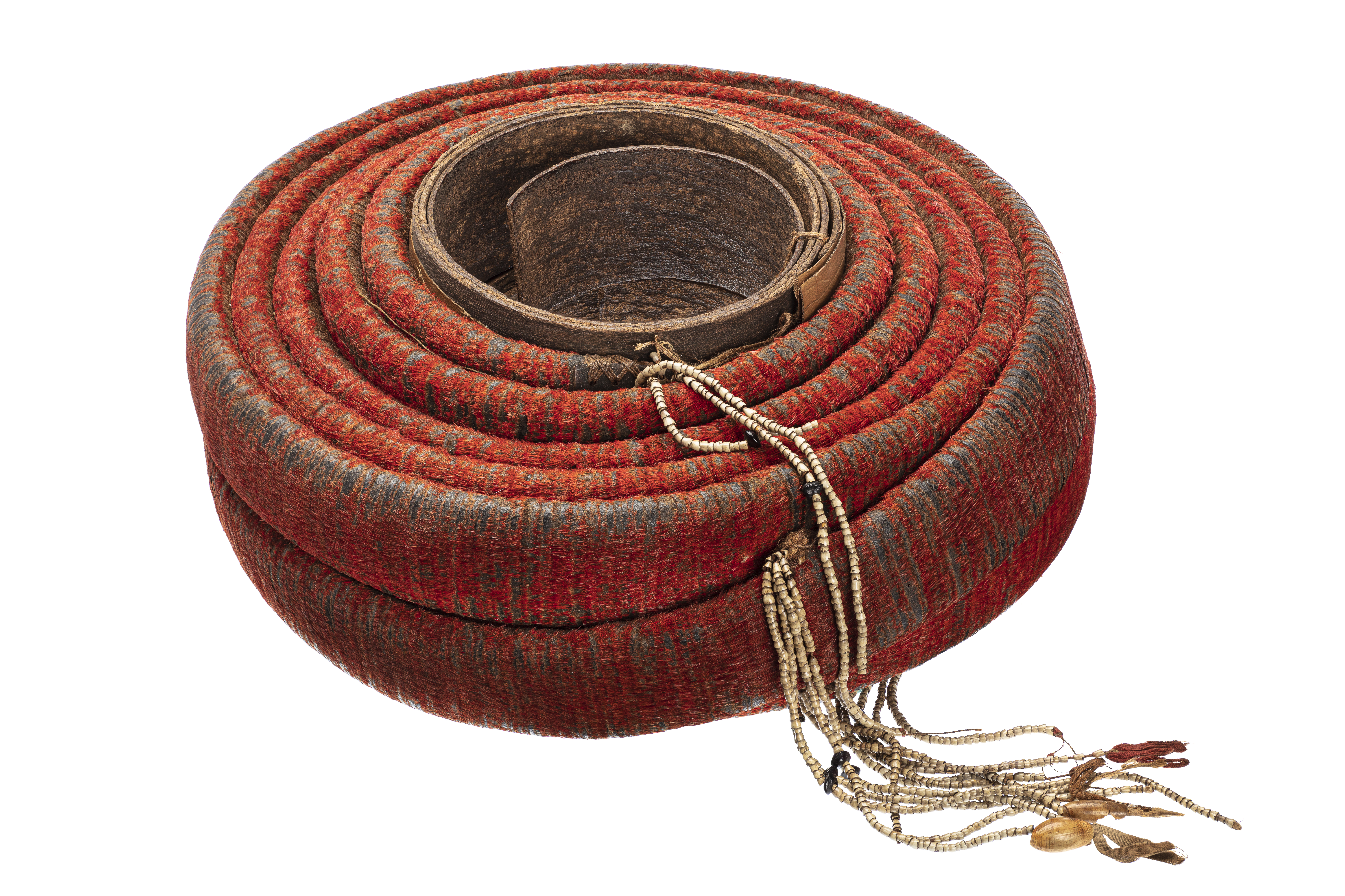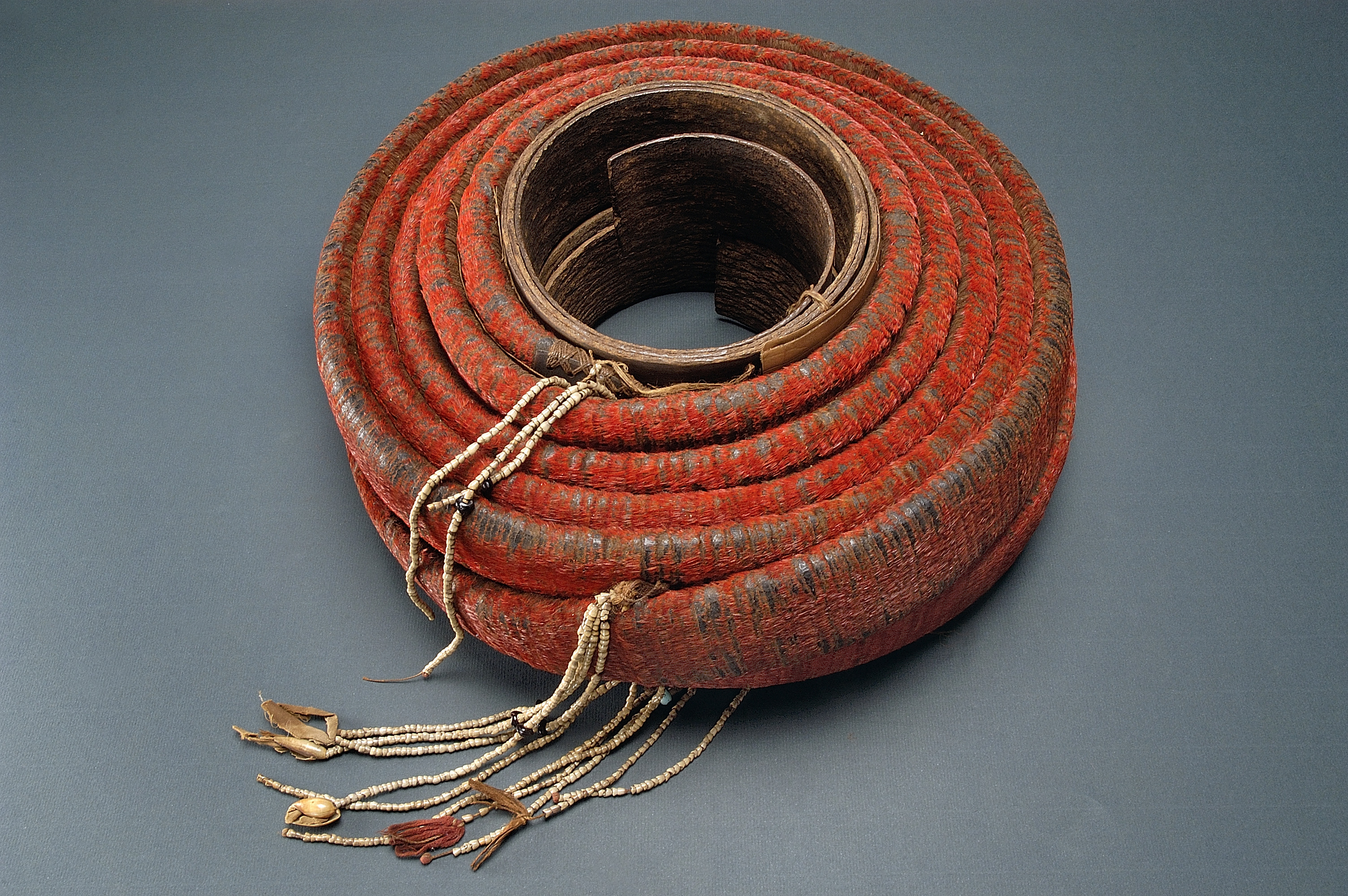Rulle gjord av tusentals små fjädrar fastklistrade på barkbitar