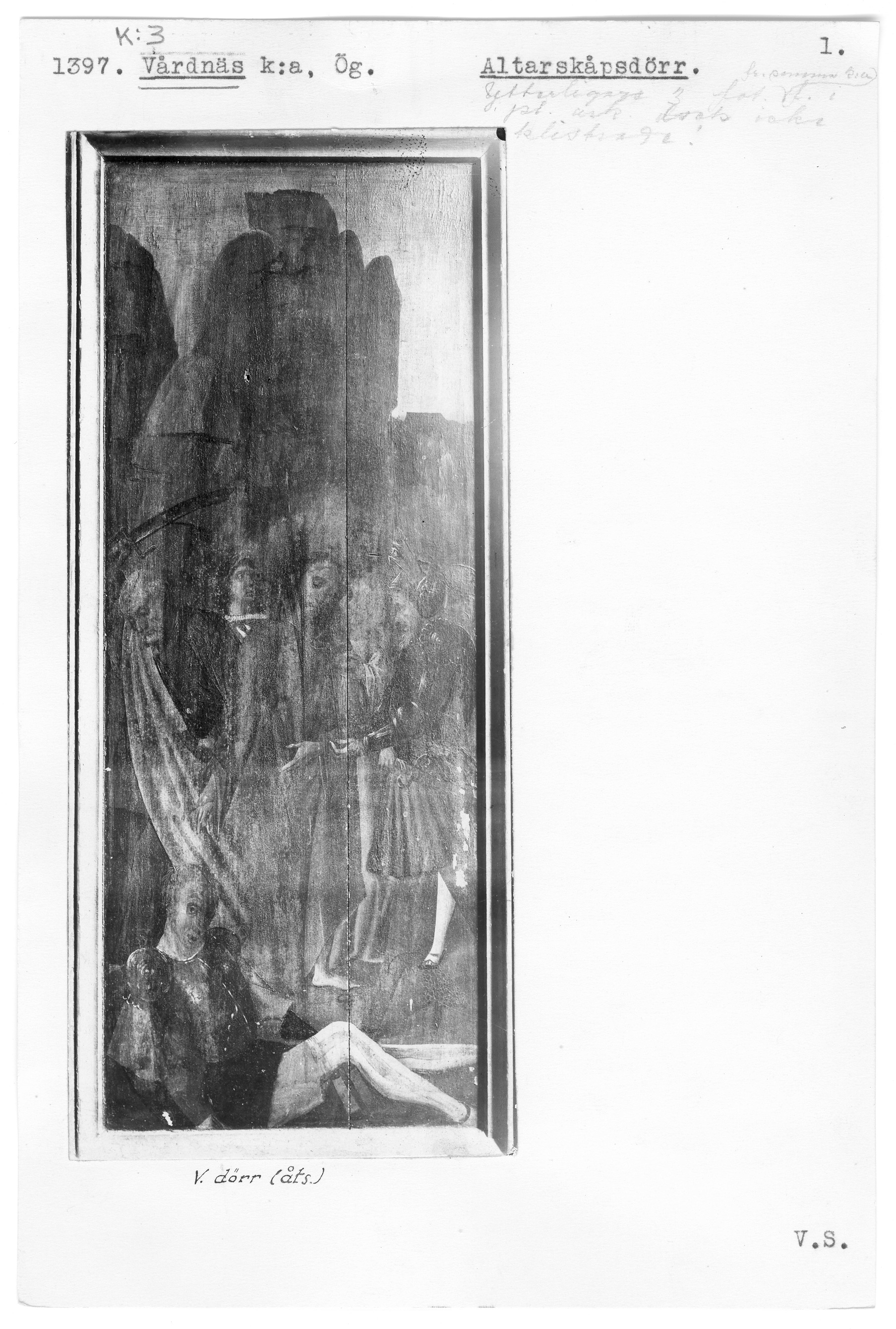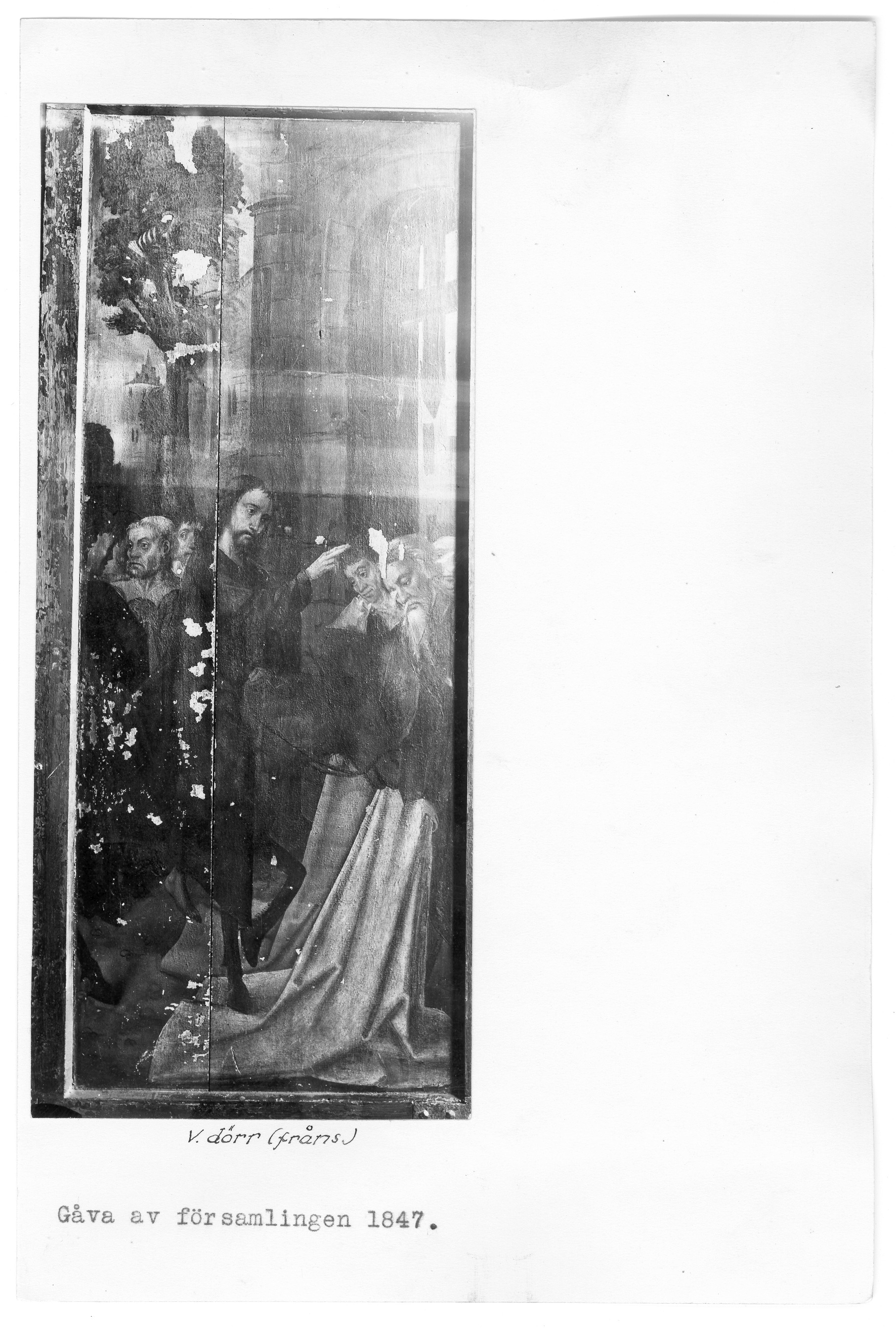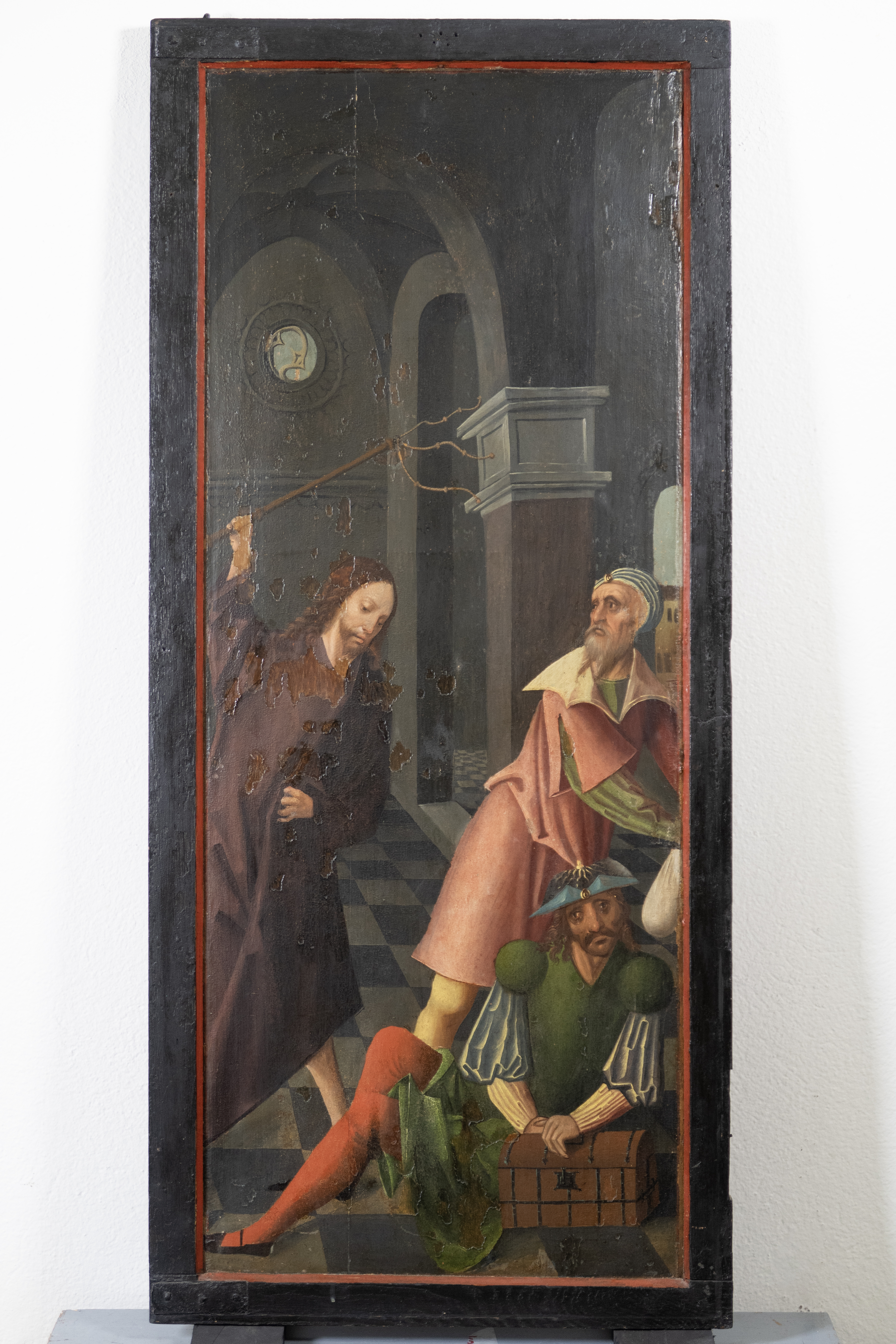 Kondition: skåp och skulptur förlorade, endast flyglarnas pannåmålningar bevarade. Färg: målningarna är något blekta och flagnade.