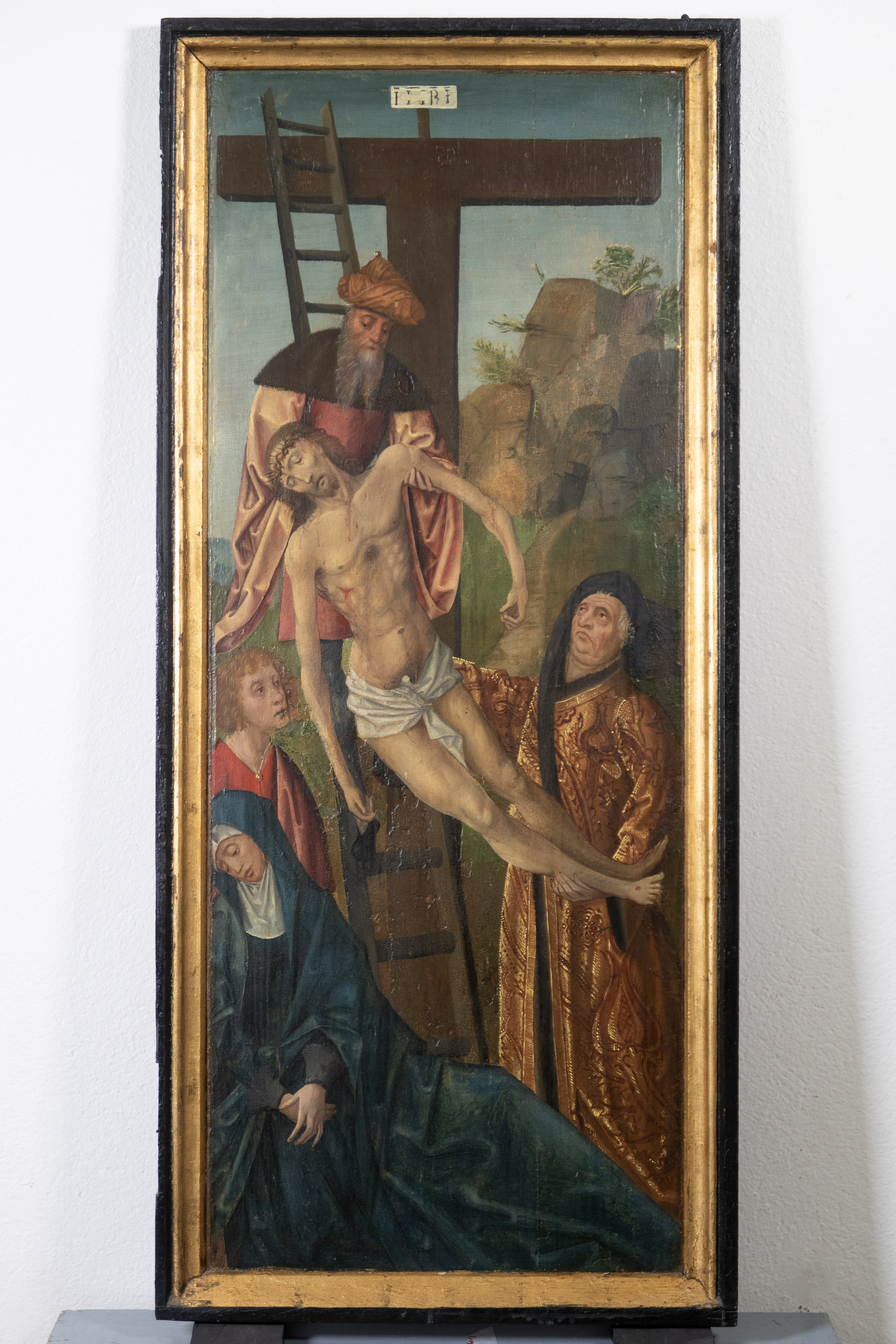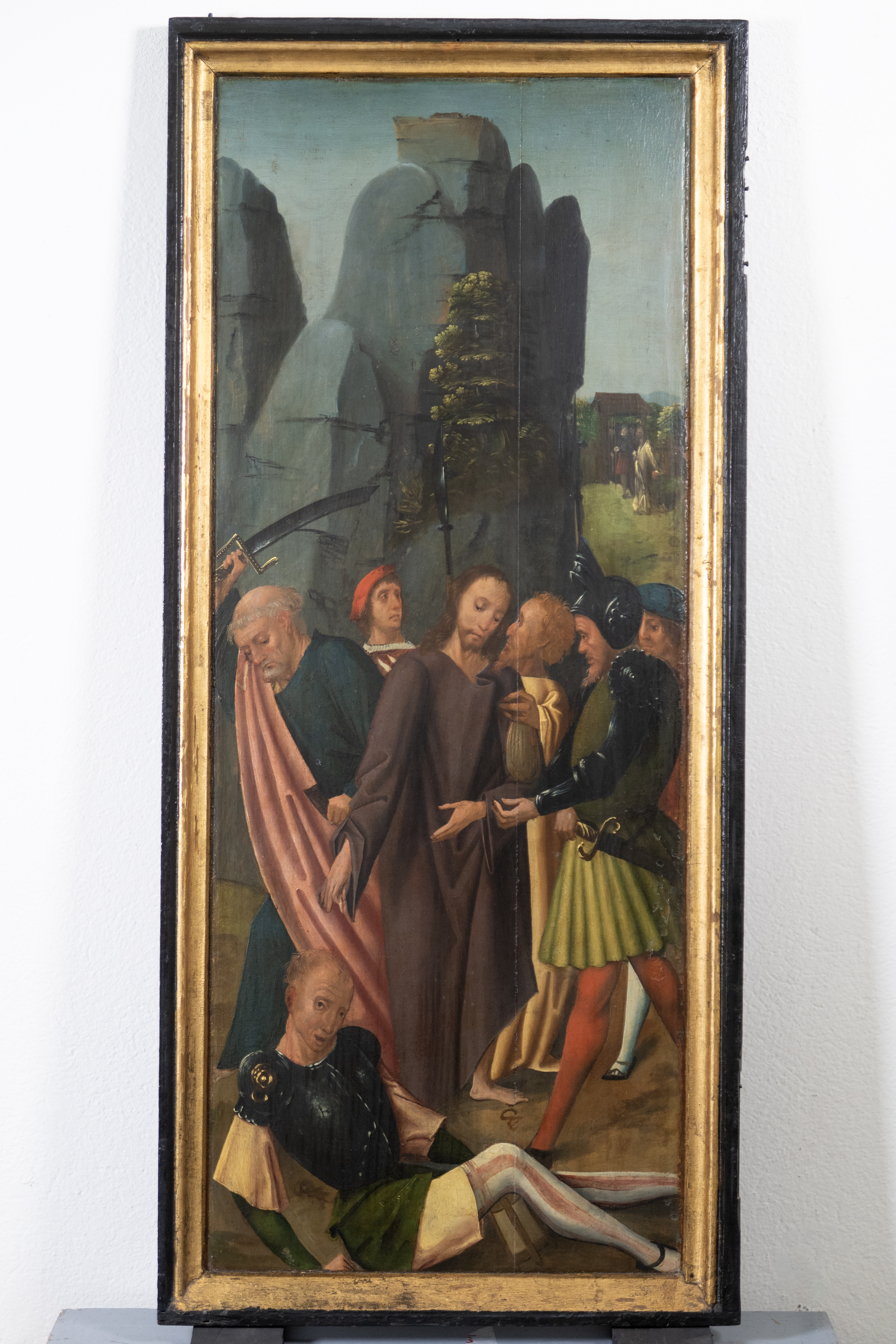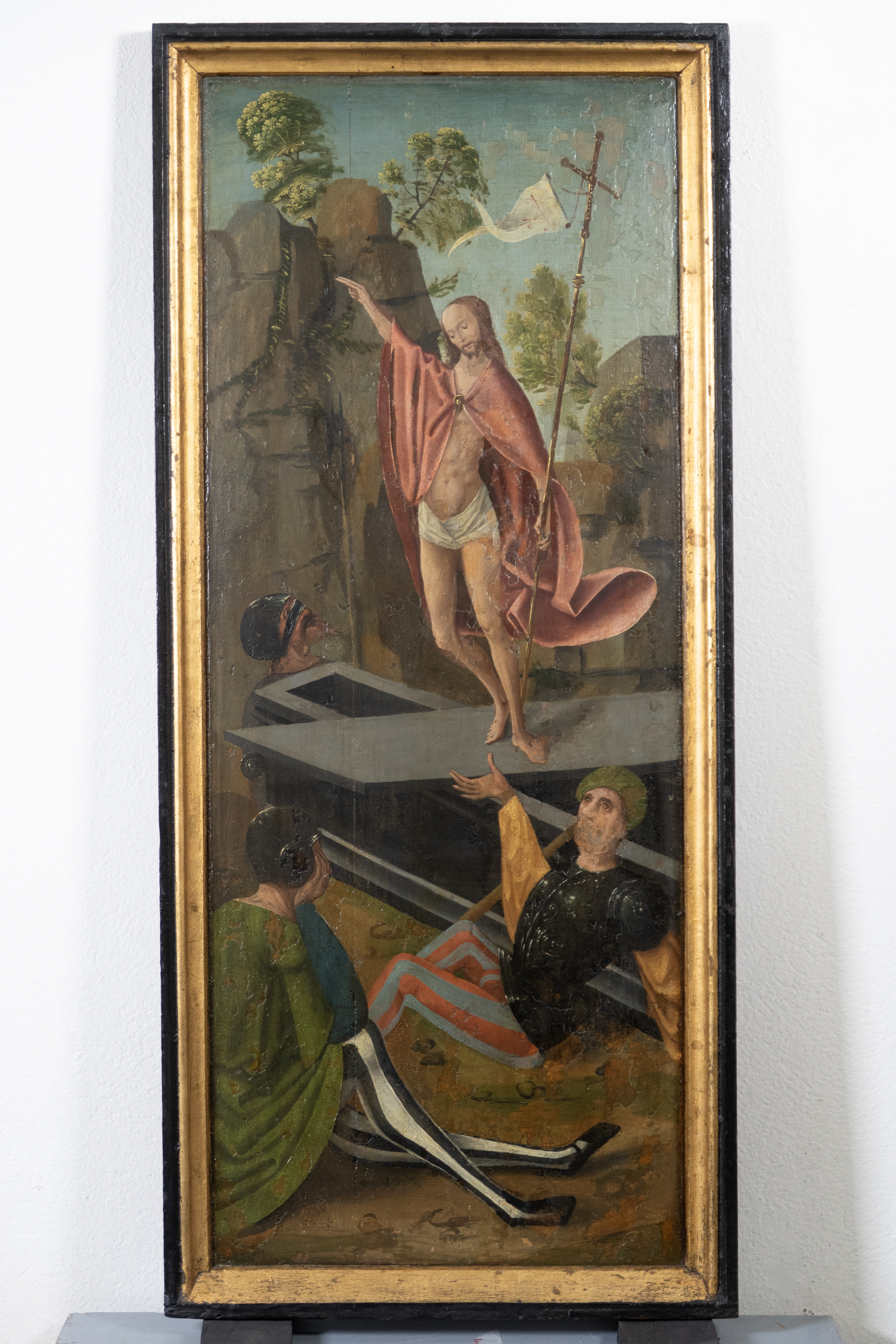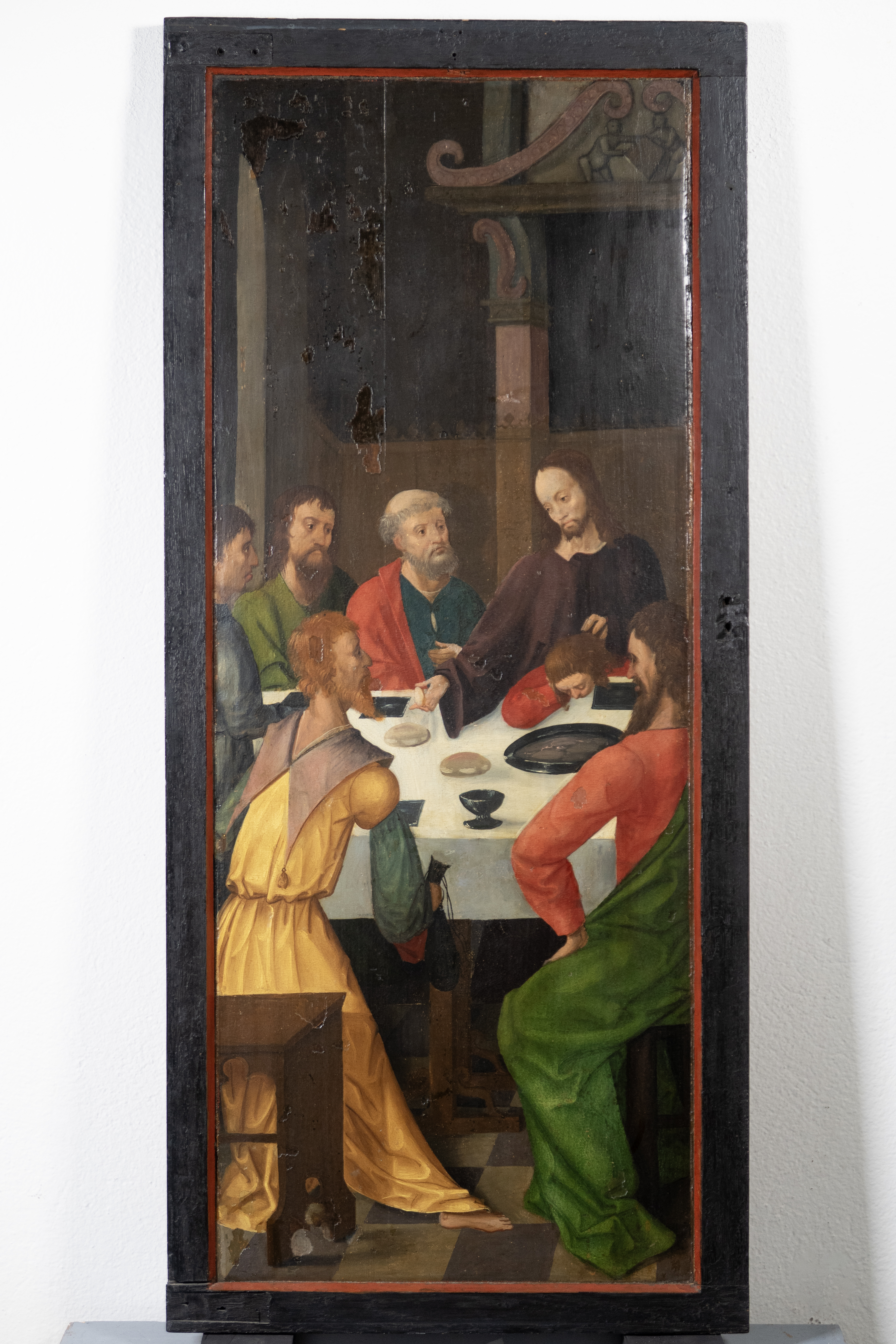 Kondition: skåp och skulptur förlorade, endast flyglarnas pannåmålningar bevarade. Färg: målningarna är något blekta och flagnade.