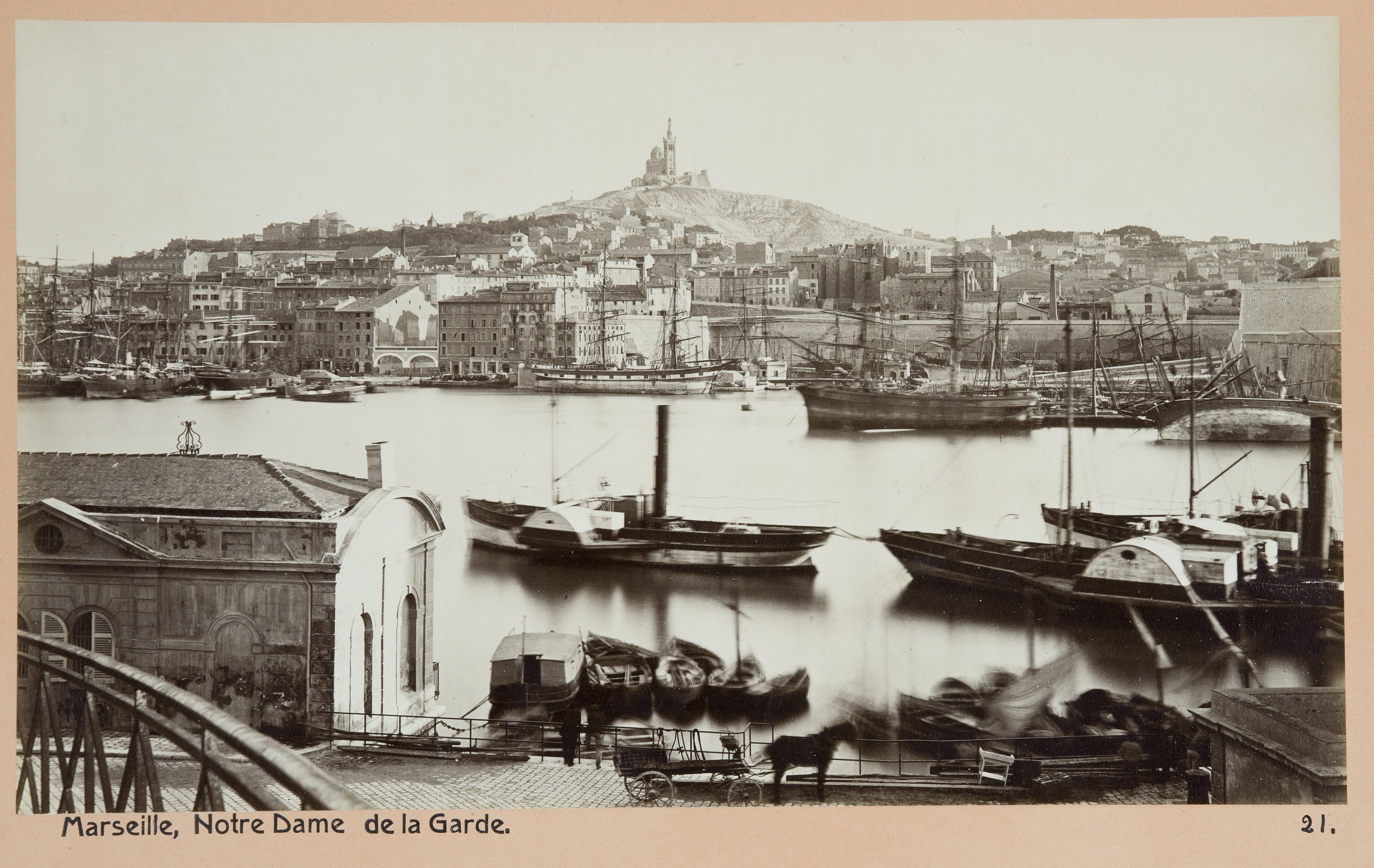 Notre Dame de la Garde, Marseille. Inköpta av Wilhelmina von Hallwyl, f. Kempe, i Turin, Genua, San Remo, Cannes, Marseilles, Nîmes, Nizza, Menton, Spezia, Pisa, Florens, Bologna, Venedig, Verona, Milano, Pallanza, Lugano, Bellagio och Bad Sulz vid hennes vistelse å nämnda orter tillsammans med sin make, Walther von Hallwyl, dottern Irma samt fröken Ida Uhse under deras resa genom Rivieran och norra Italien samt åter öfver Schweiz och Tyskland 20 September 1880 - 20 Juni 1881. Förestående uppgifter lämnade med ledning af fröken Ida Uhses Reseanteckningar.