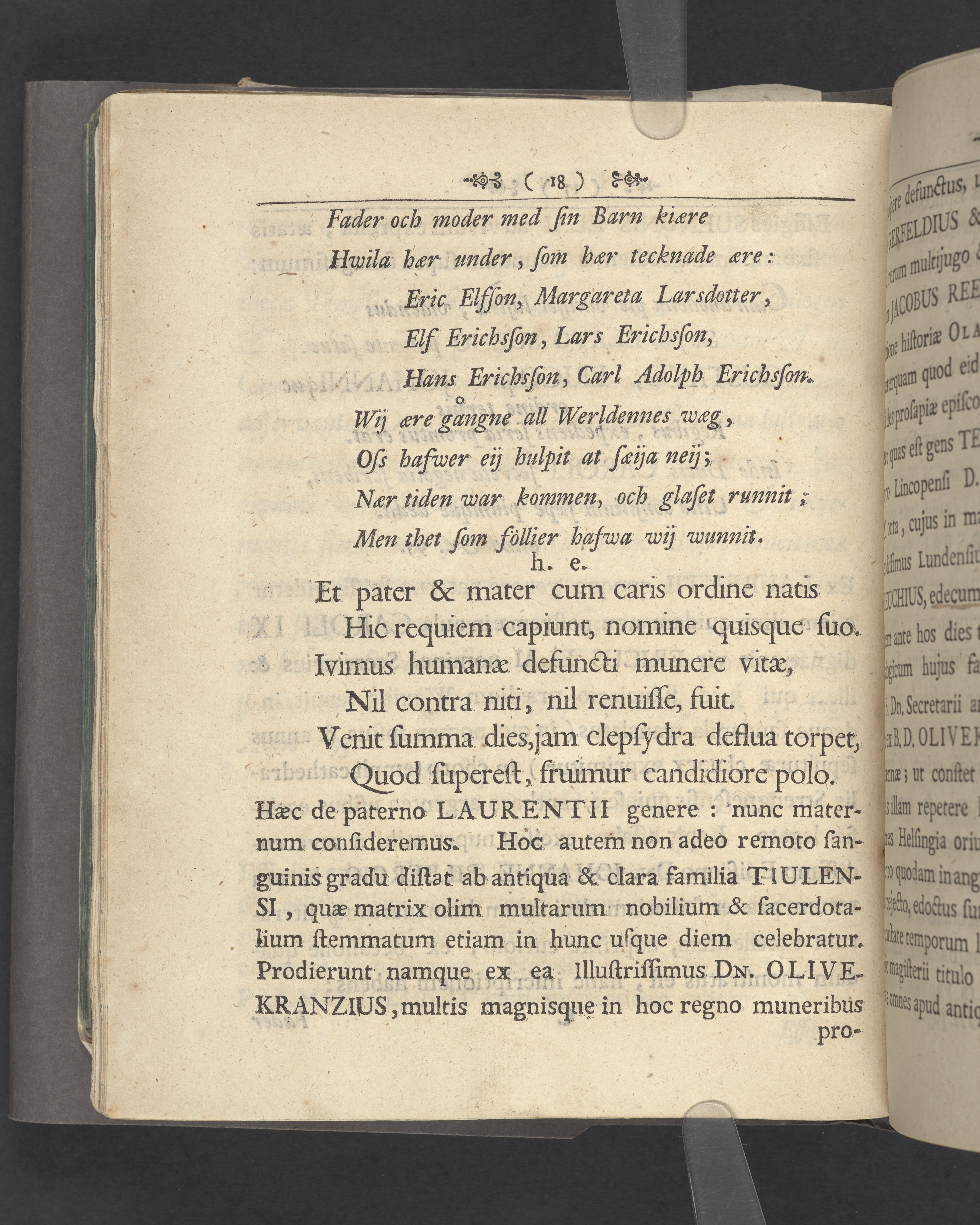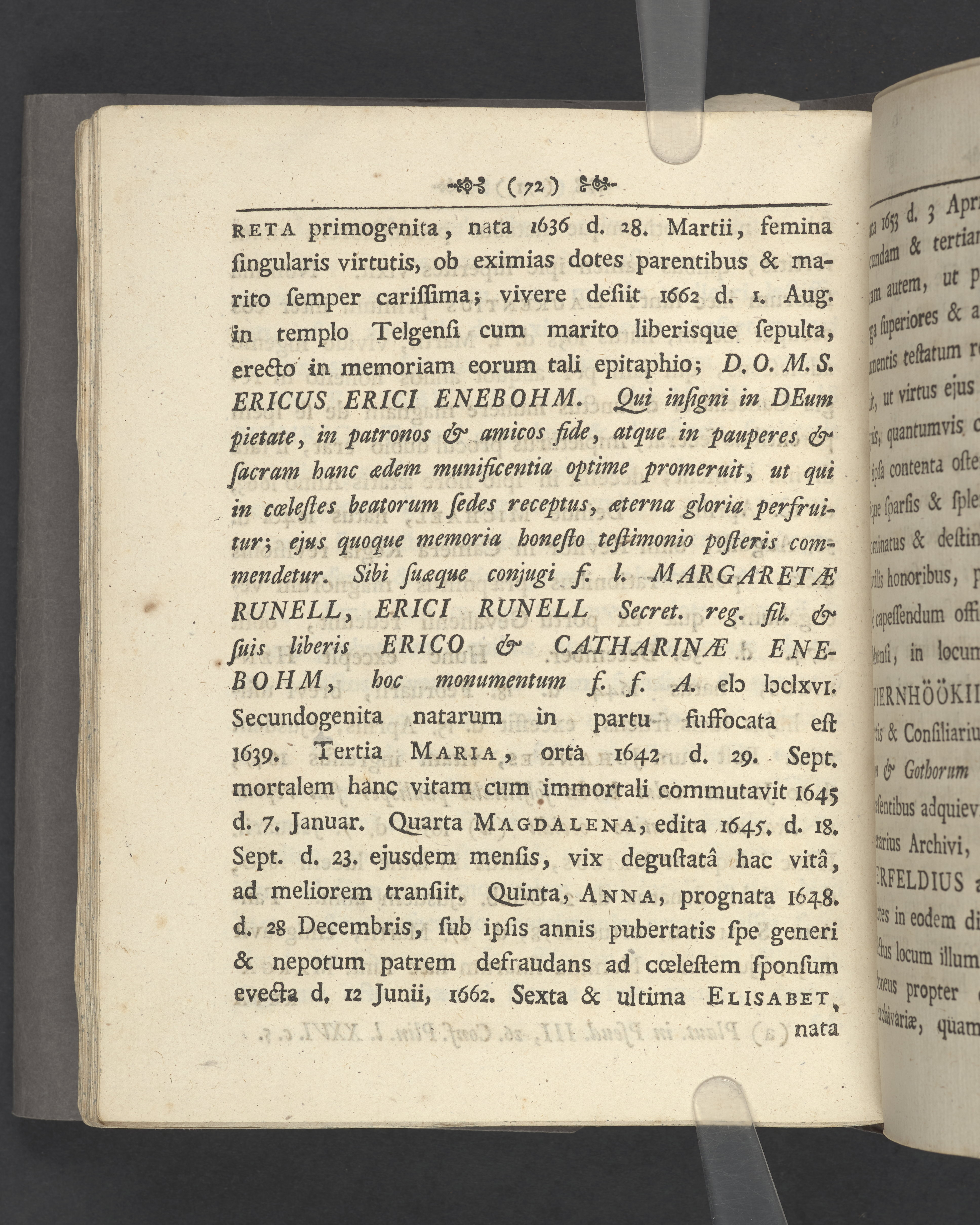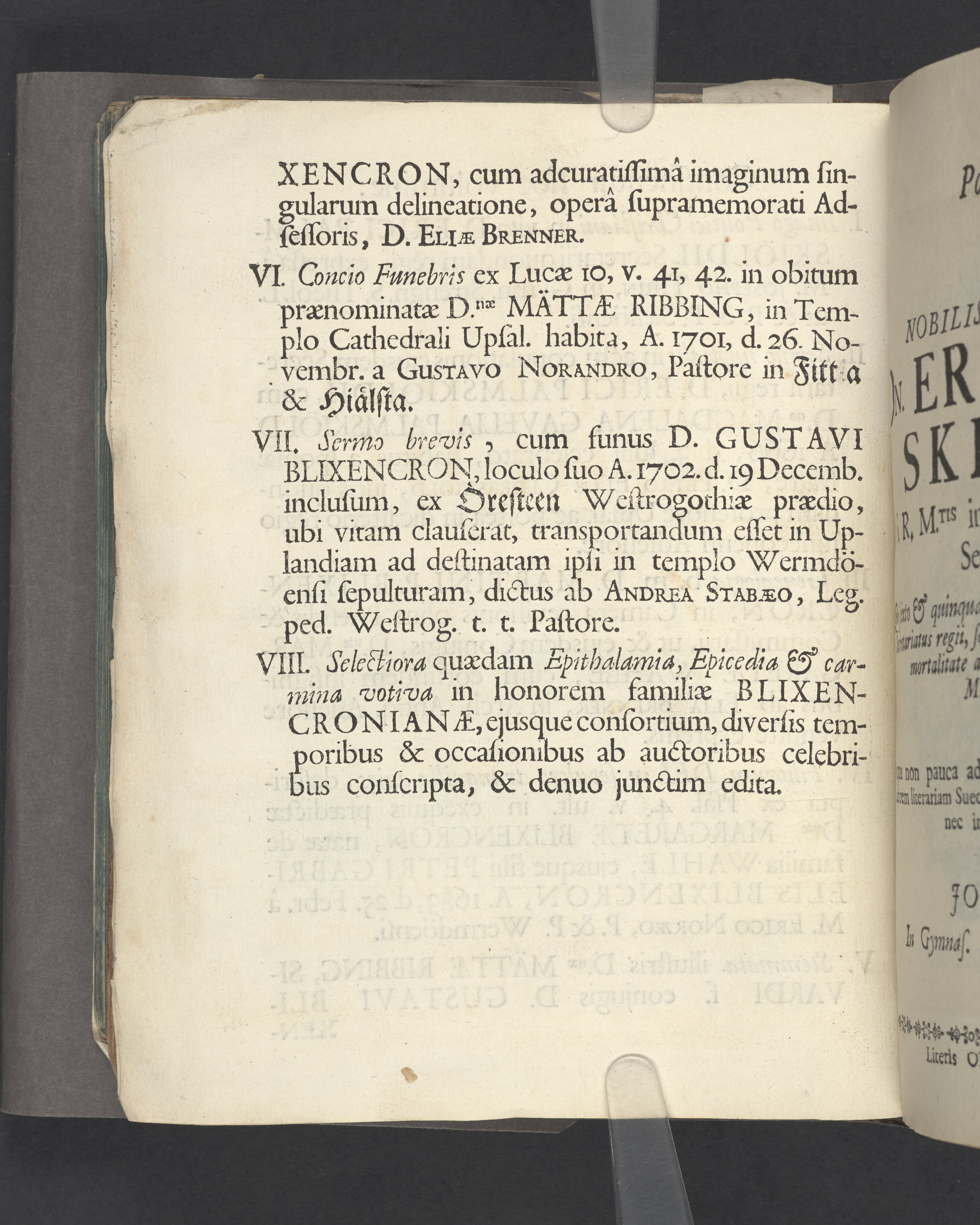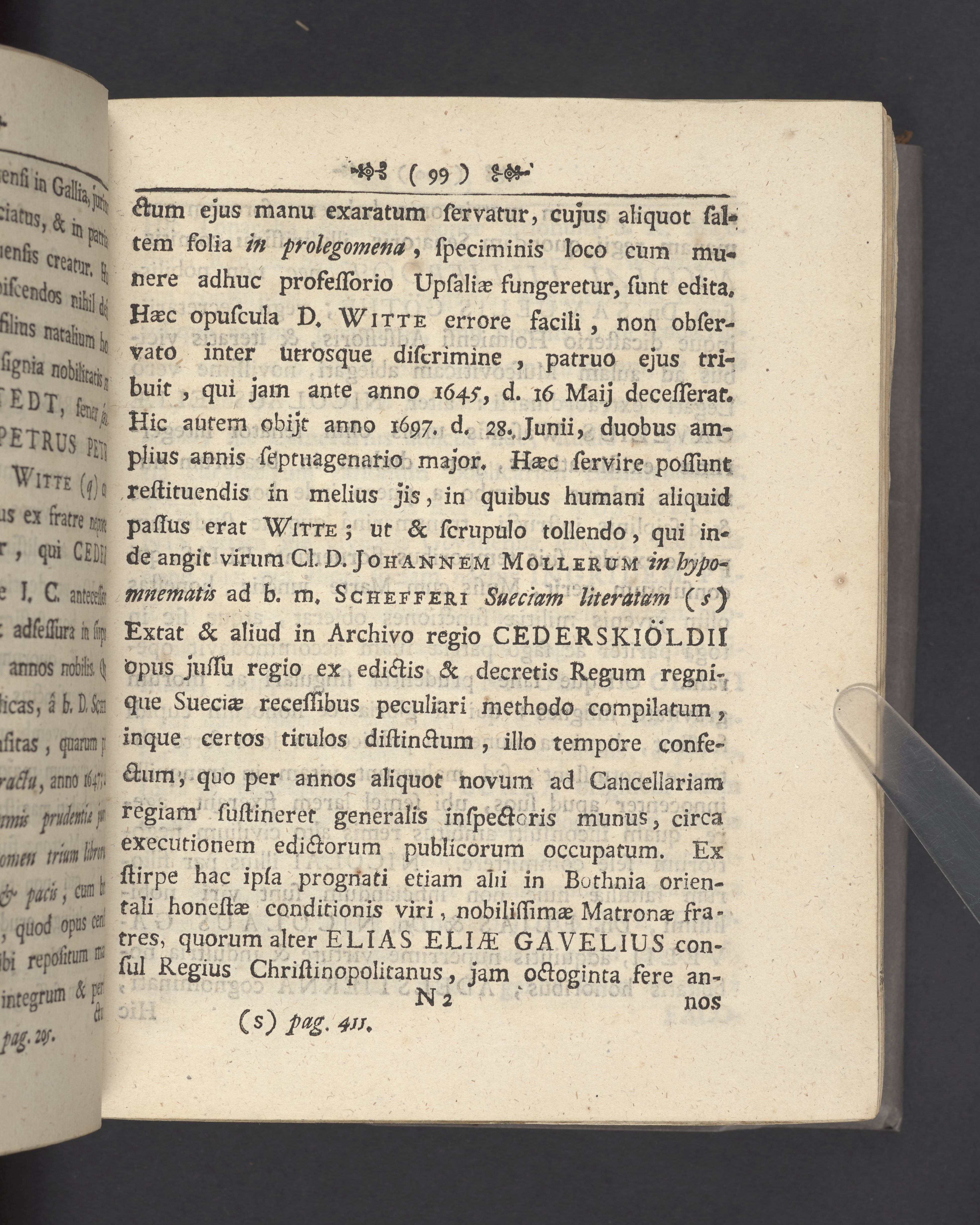 Monumenta quædam Palmskiöldiana nec non Blixencron-Ribbingiana, diversis antehac temporibus separatim edita, nunc vero juxta seriem, quam sequens indicat pagina, uno hoc volumine collecta curante ex debitâ in parentes avosque suos, suæque conjugis, pietate, eorundem filio vel genero Elia Palmskiöldh. S. R. M.tis ad archivum regium secretario.