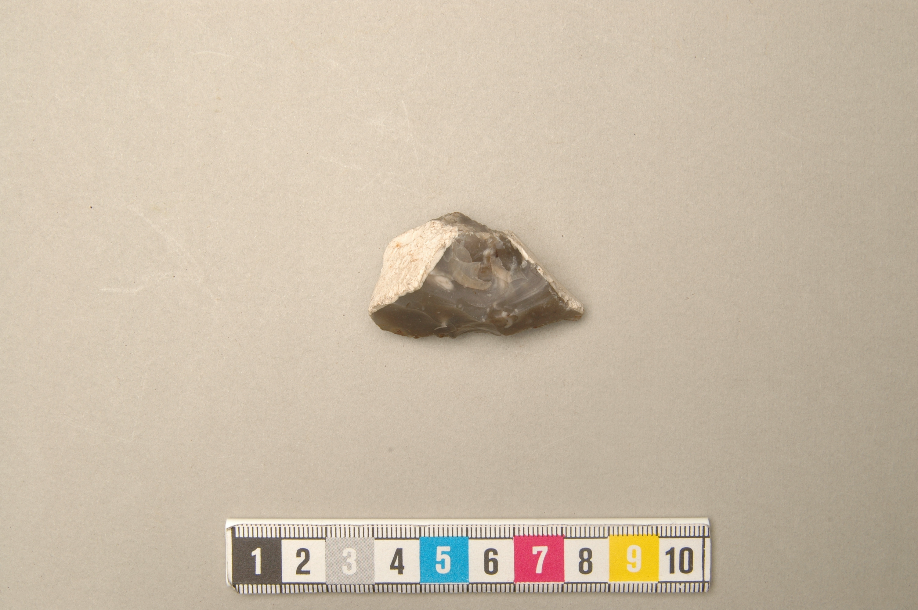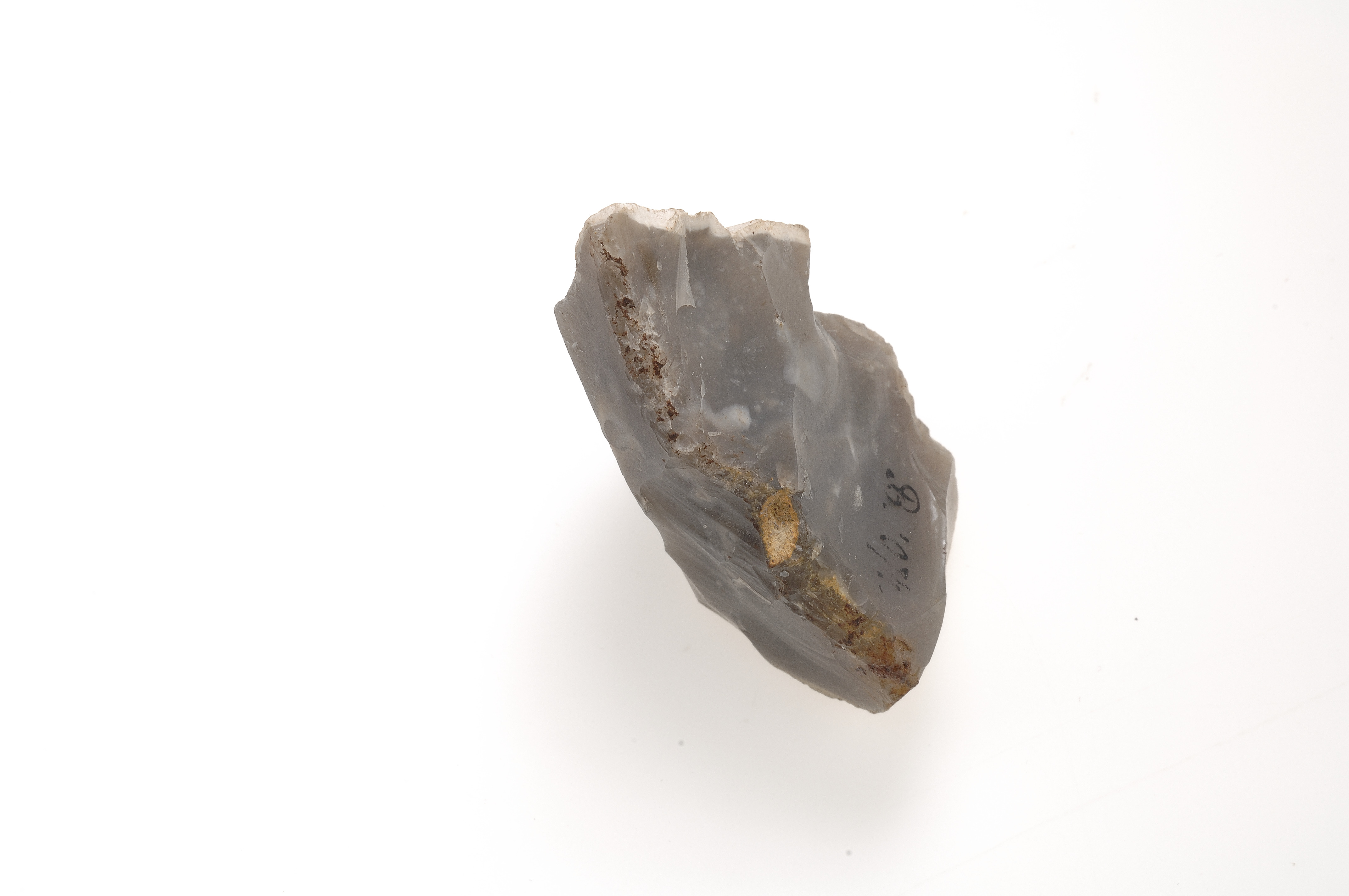 1 bit eldslagningsflinta med spår av järnkorrosion.