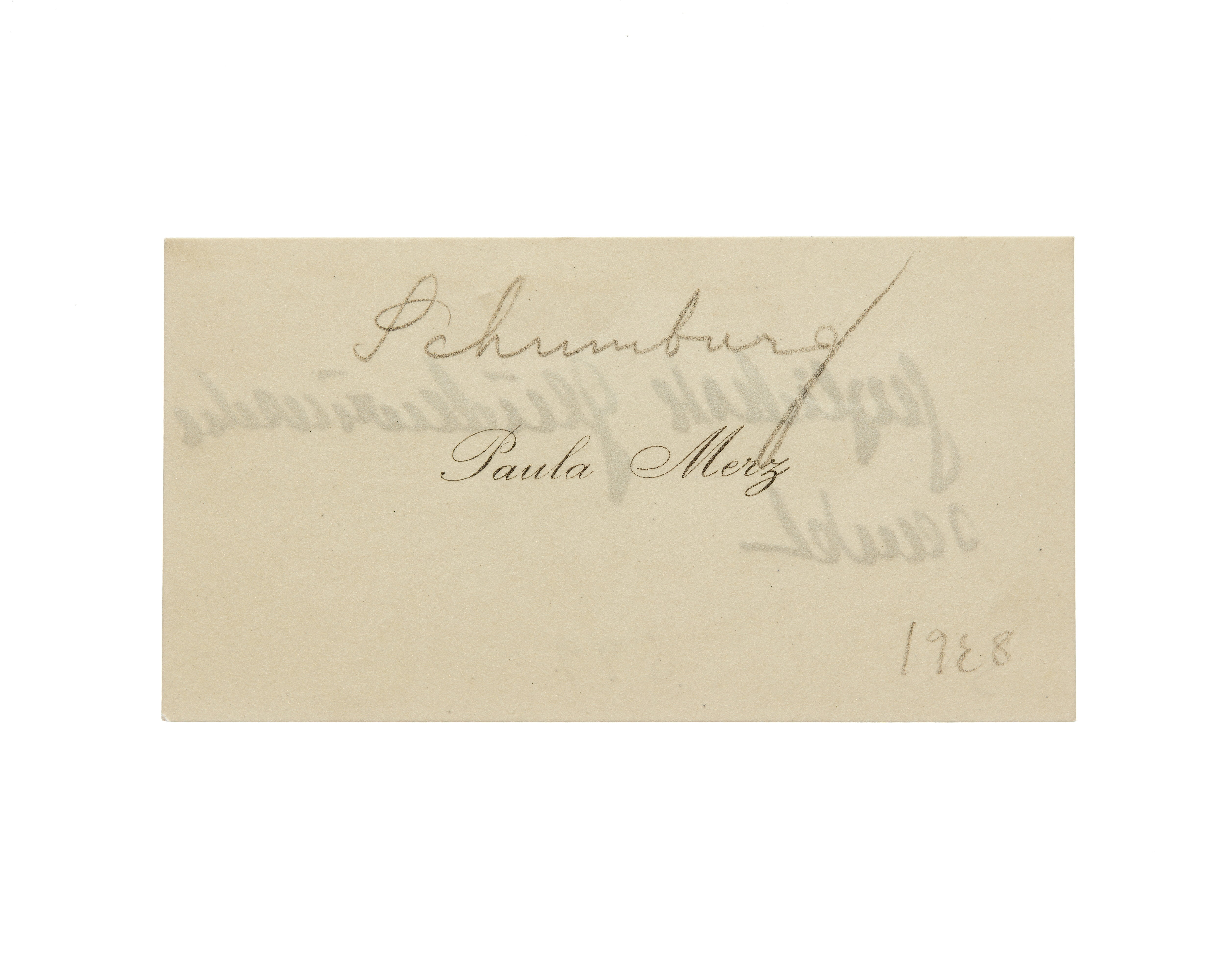 Tre visitkort från Paula Merz. Första kortet daterat 1926. Handskrift "....". Andra kortet daterat 1927. Handskrift "....". Tredje kortet daterat 1928. Handskrift "...".