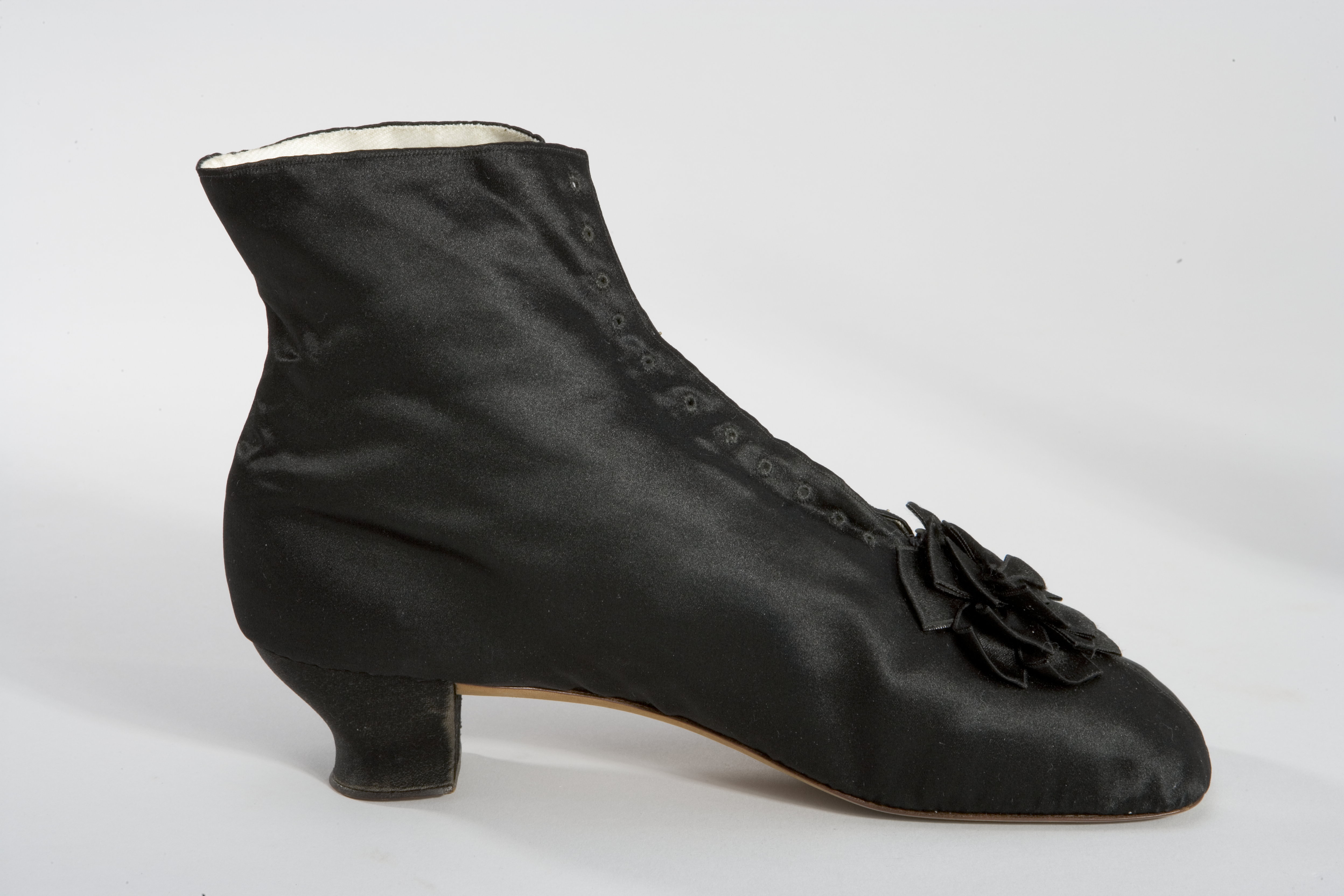 Snörkängan har rak läst, halvhög, något insvängd klack och med tvär, något rundad tå. Modellen skuren i två stycken som förenas mitt bak med enkel, något insvängd söm. Mitt fram är styckena förenade med dubbla sömmar. Hela kängan fodrad med benvitt, kypervävt bomull. Hälen förstärkt med ljusbrunt kalvskinn. Innersulan av vitt kalvskinn är fodrad med beiget yllefilt. Kängan har mitt fram ett sprund som snörs ihop med 13 tränsade hål på ömse sidor av sprundet. Under sprundet finns en plös av svart sidenatlas som är fastkastad på höger sida. Kängan är dekorerad framtill med en platt rosett av svart sidenband, bredd 20 mm, i tre lager. Vändsydd yttersula gjord av ljusbrunt kalvskinn och med ett litet pinnhål i tåpartiet. Träklacken klädd med svart sidenatlas och med en stiftlapp av läder stiftad med 7 träpligg. Kängans längd motsvarar idag ca 36,5. På 1850-talet började det bli modernt med knäpp-, resår och snörkängor.