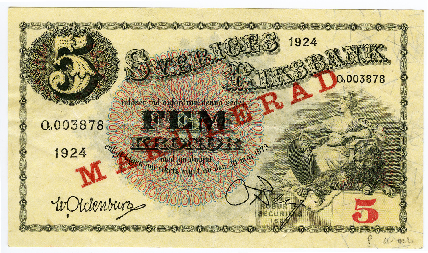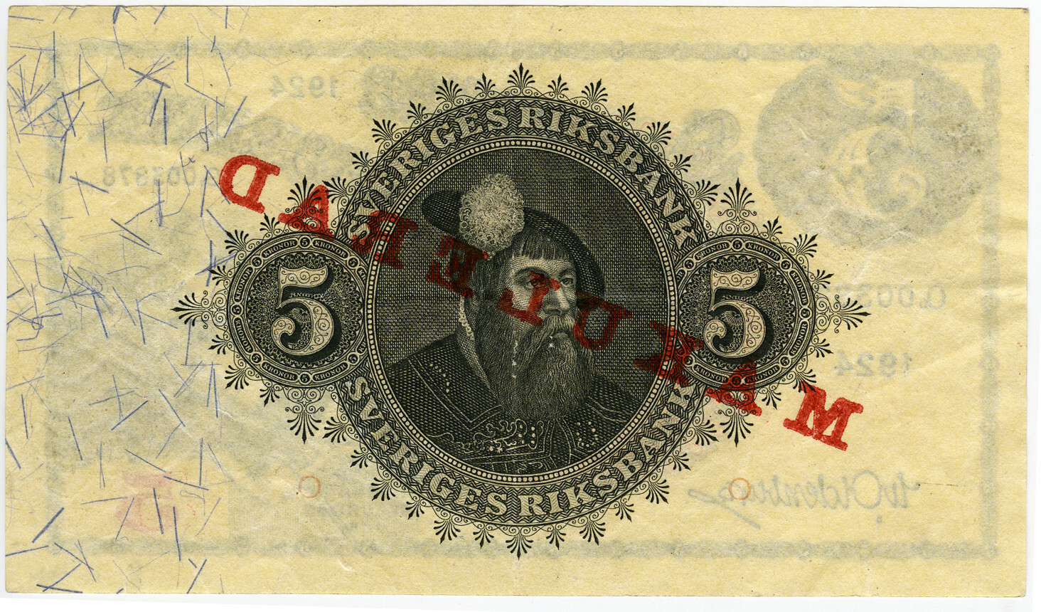 Upphov: Sveriges riksbank. Media: Statens historiska museer. Ekonomiska museet - Kungliga myntkabinettet/SHM, (PDM) Upphovsrätten till detta verk har gått ut och är därmed fritt att använda på alla sätt. Ange gärna upphovsperson om denne är känd.