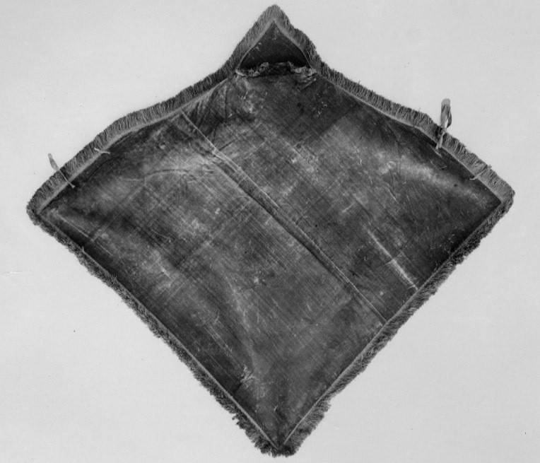 - Halskappa af rödt sammet, utan broderi, med silkesfrans.