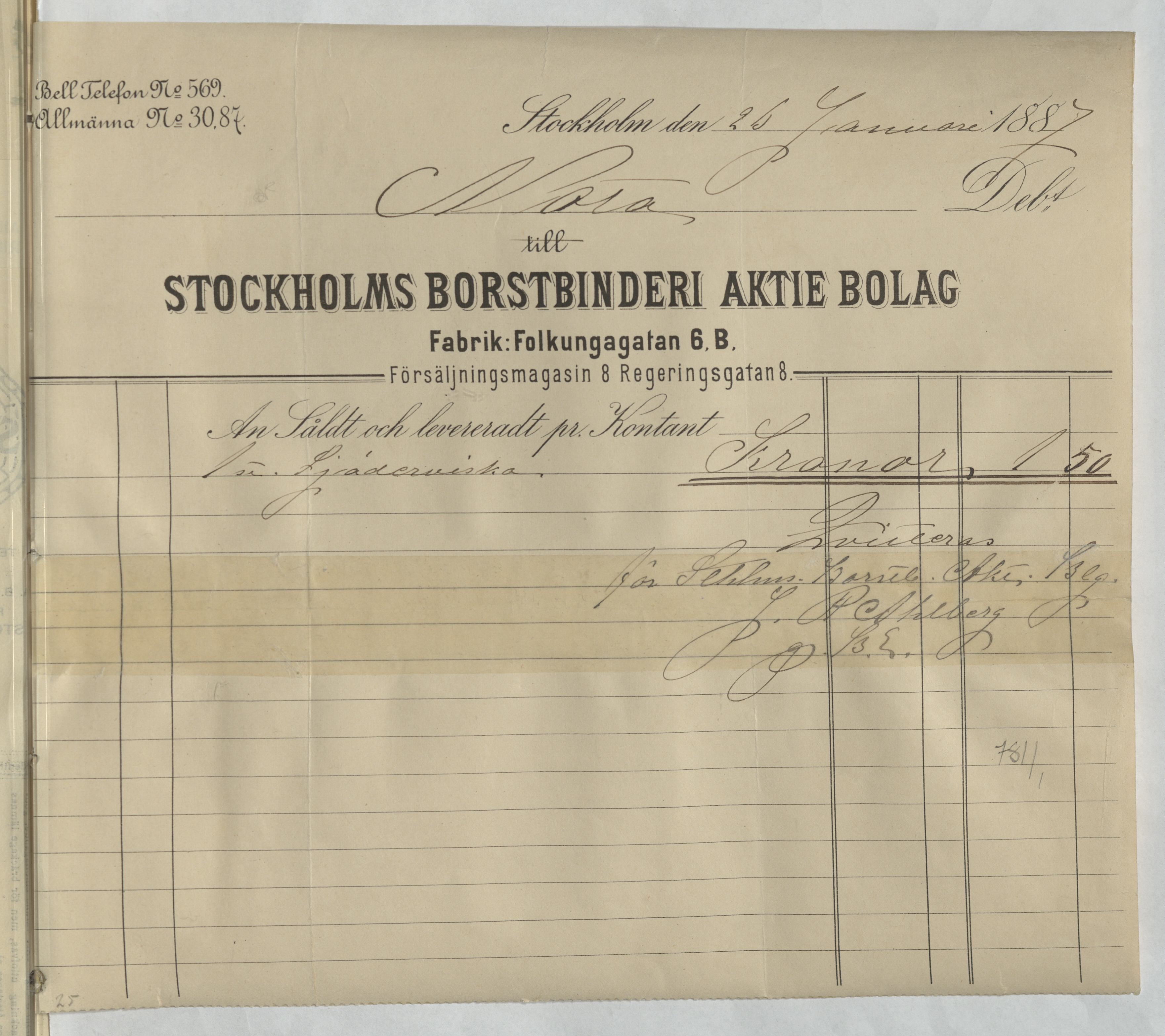 Kvitto från Stockholms Borsbinderi Aktiebolag